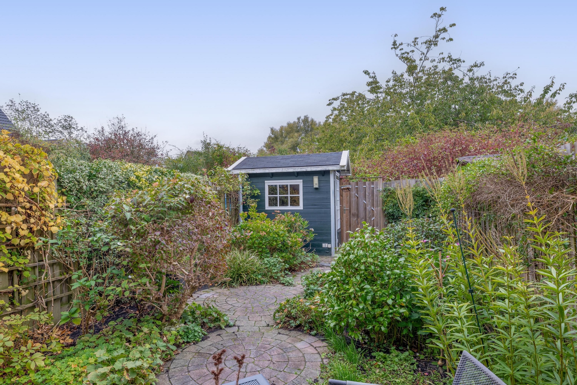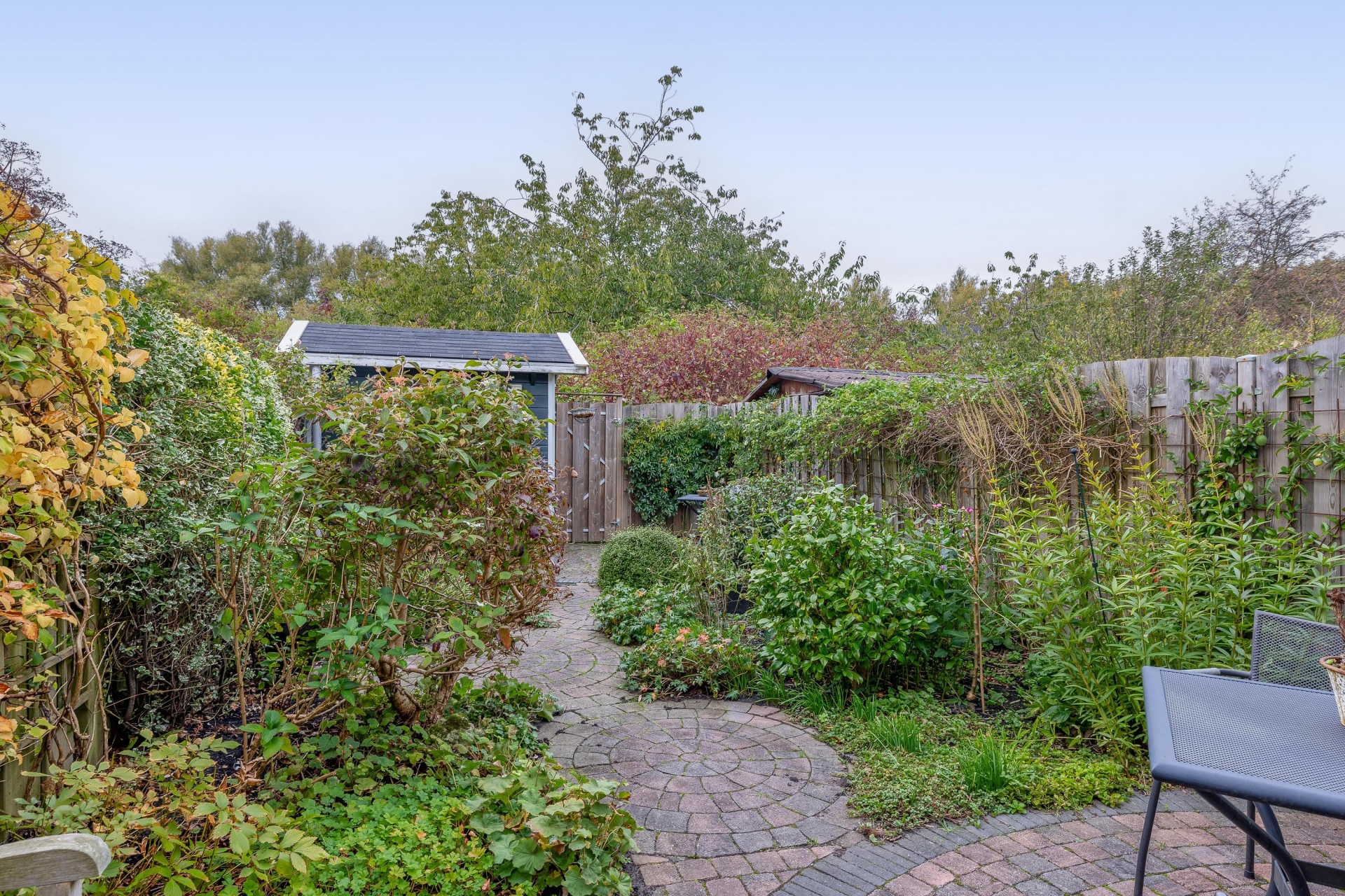 Een van de grote pluspunten van deze woning is de achtertuin. Deze ligt op het westen, wat betekent dat je hier vooral in de middag en avond heerlijk van de zon kunt genieten. De tuin is groen aangelegd met veel privacy door de volgroeide hagen en struiken. Door de ligging en indeling is het een fijne plek om te ontspannen, te tuinieren of gezellig buiten te zitten. Achterin de tuin staat een houten berging en er is een achterom aanwezig.
