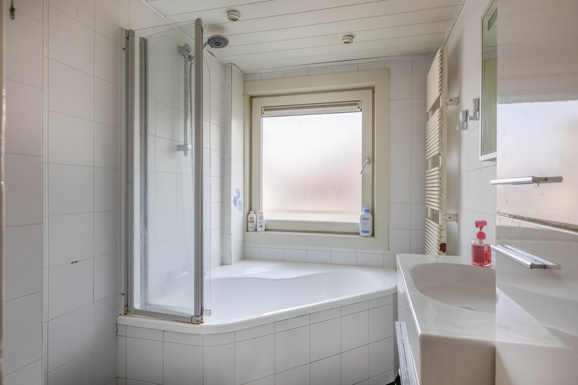 De badkamer is functioneel en biedt de basis, maar geeft ook de mogelijkheid om deze in de toekomst naar eigen wens te vernieuwen.