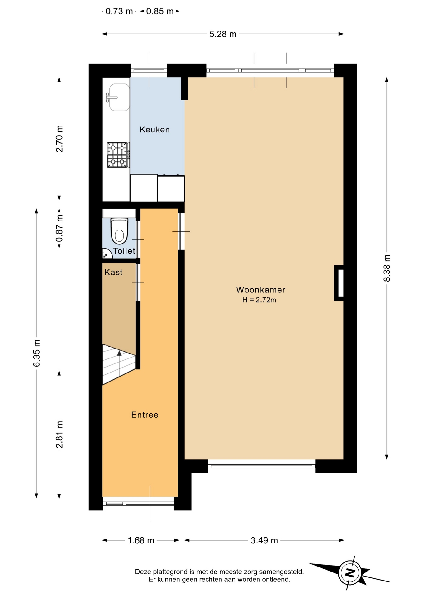 “Deze informatie is door ons met de nodige zorgvuldigheid samengesteld. Onzerzijds wordt echter geen enkele aansprakelijkheid aanvaard voor enige onvolledigheid, onjuistheid of anderszins, dan wel de gevolgen daarvan. Alle opgegeven maten en oppervlakten zijn indicatief.”