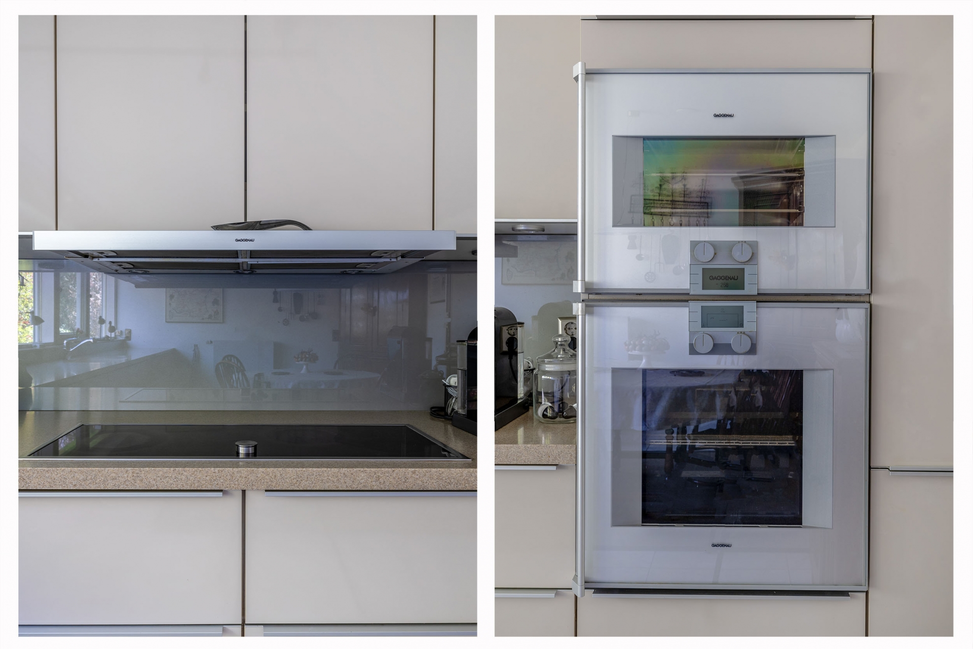 De woonkeuken sluit perfect aan bij de leefruimte en is modern en strak uitgevoerd met luxe Gaggenau apparatuur. Hier heb je alle ruimte om uitgebreid te koken en tegelijkertijd in contact te blijven met familie of gasten.