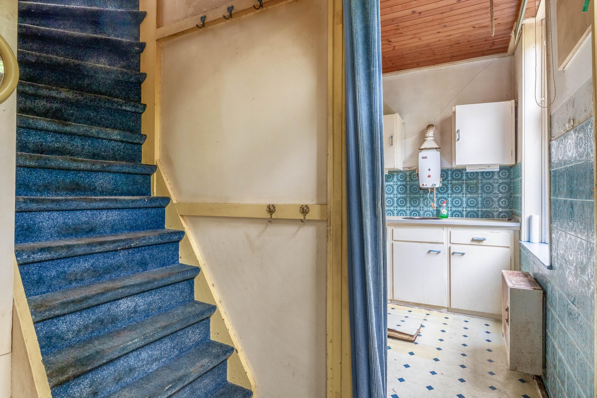 Wat direct opvalt, is de besloten ligging. De voortuin is omzoomd met groen waardoor de voordeur een beetje verscholen ligt – dat geeft meteen een knusse, bijna cottage-achtige sfeer. Aan de achterzijde ligt de tuin op het westen, met volop middag- en avondzon. Ideaal voor een drankje na het werk of een zomerse barbecue (na wat opknapwerk, natuurlijk). De tuin biedt mogelijkheden om bijvoorbeeld een veranda te bouwen, een schuurtje te plaatsen of gewoon lekker te tuinieren. Je kijkt bovendien vrij weg, dus privacy is zeker een pluspunt hier.