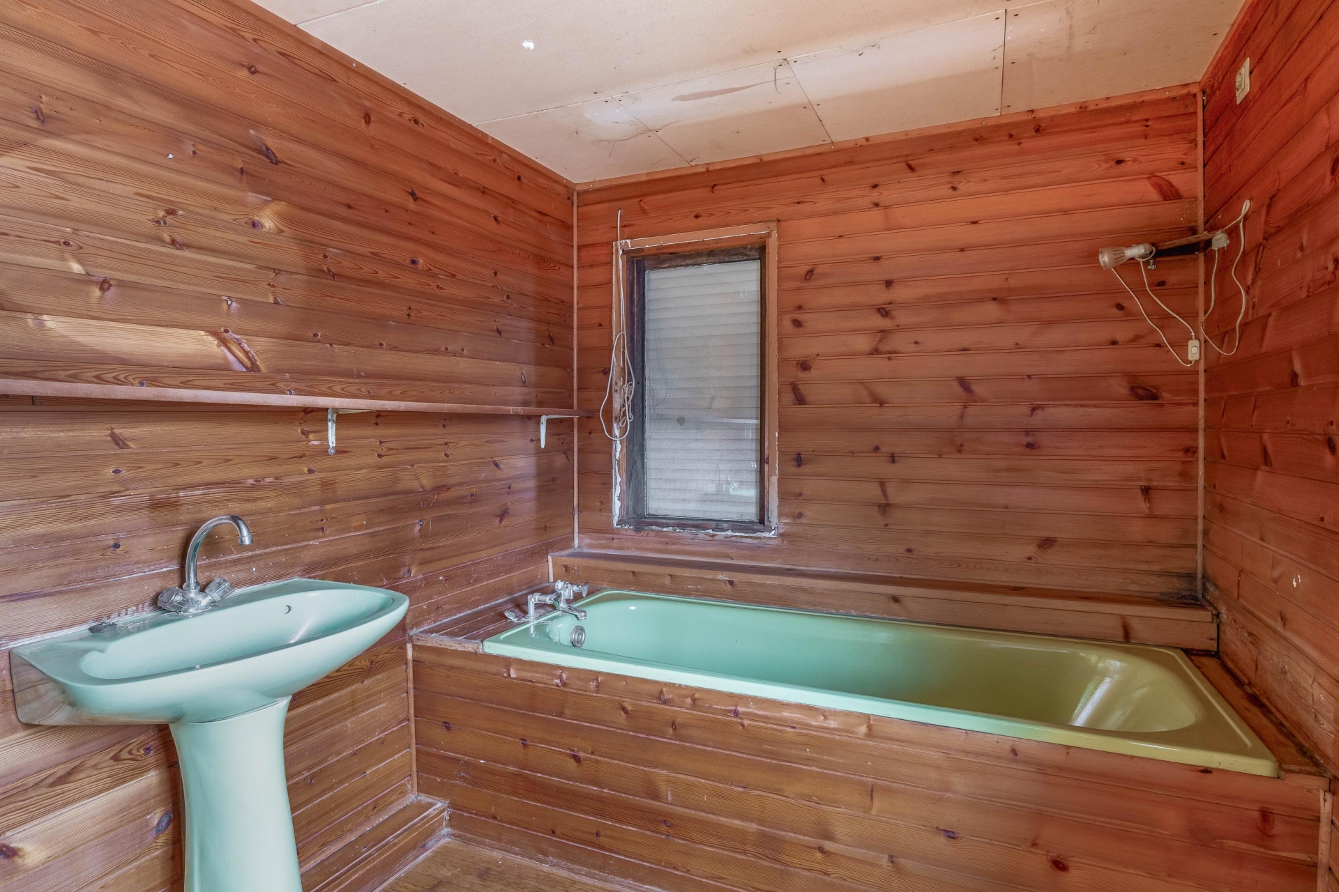 De huidige indeling bestaat uit een eenvoudige keuken met toegang naar toilet/badkamer en woonkamer met grote vaste kast op de begane grond. Boven vind je één grote slaapkamer en een badkamer met ligbad en wastafel. Ook is er een kelder aanwezig (bereikbaar vanuit de keuken) waar nu de wasmachine staat.