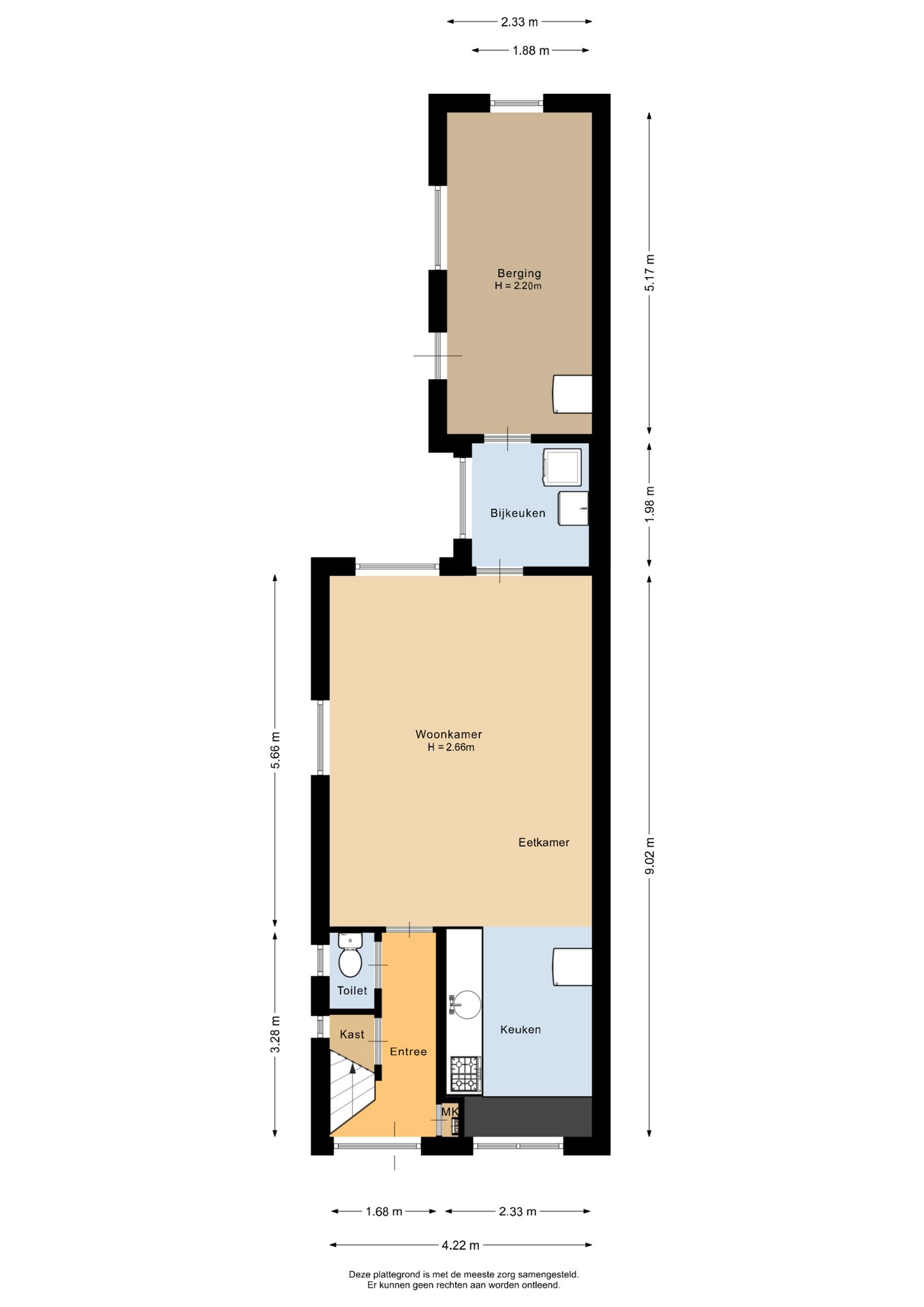 “Deze informatie is door ons met de nodige zorgvuldigheid samengesteld. Onzerzijds wordt echter geen enkele aansprakelijkheid aanvaard voor enige onvolledigheid, onjuistheid of anderszins, dan wel de gevolgen daarvan. Alle opgegeven maten en oppervlakten zijn indicatief.”