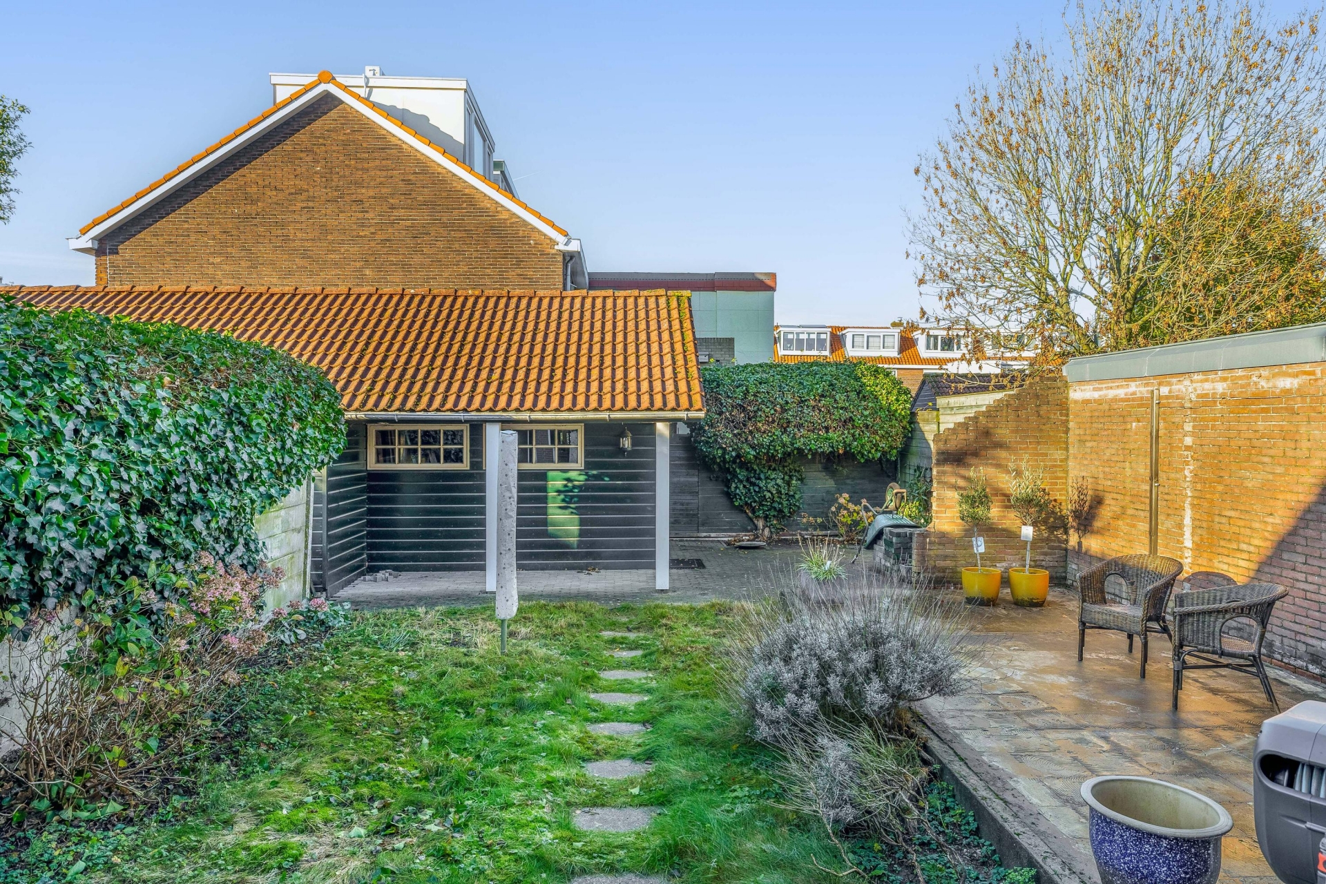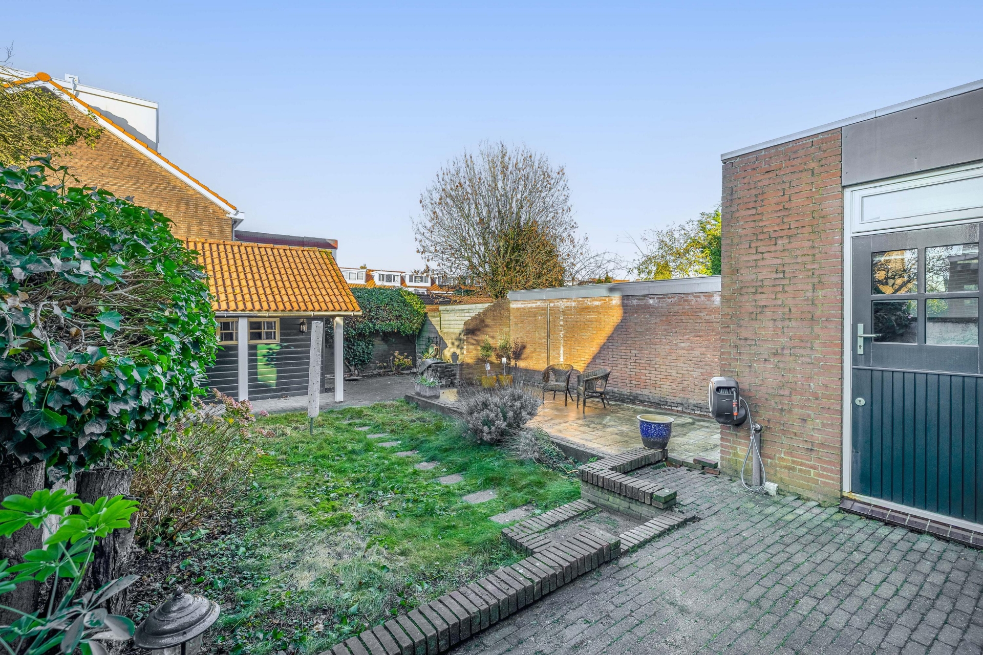 De diepe achtertuin op het noordwesten is een echte plus. Door de ligging profiteer je in de middag en avond van zon – perfect voor een zomerse barbecue of ontspannen borrelmoment na het werk. De tuin is verzorgd aangelegd met een groen gazon, terrastegels, borders én een royale houten berging van ca. 12 m² met overkapping.