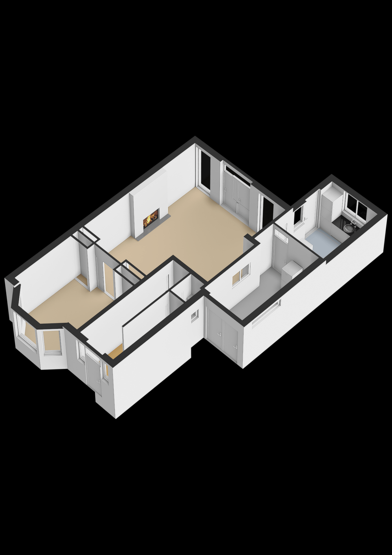 De begane grond is voorzien van vloerverwarming in de woonkamer (achterste gedeelte) en keuken. De uitbouw is voorzien van grote raampartijen en staat in open verbinding met de tuin. Dankzij de slimme indeling is er ruimte genoeg voor een royale zithoek met haard én een ruime eethoek in de voorkamer. De separate keuken bevindt zich aan de achterzijde met een keukenblok in u-opstelling