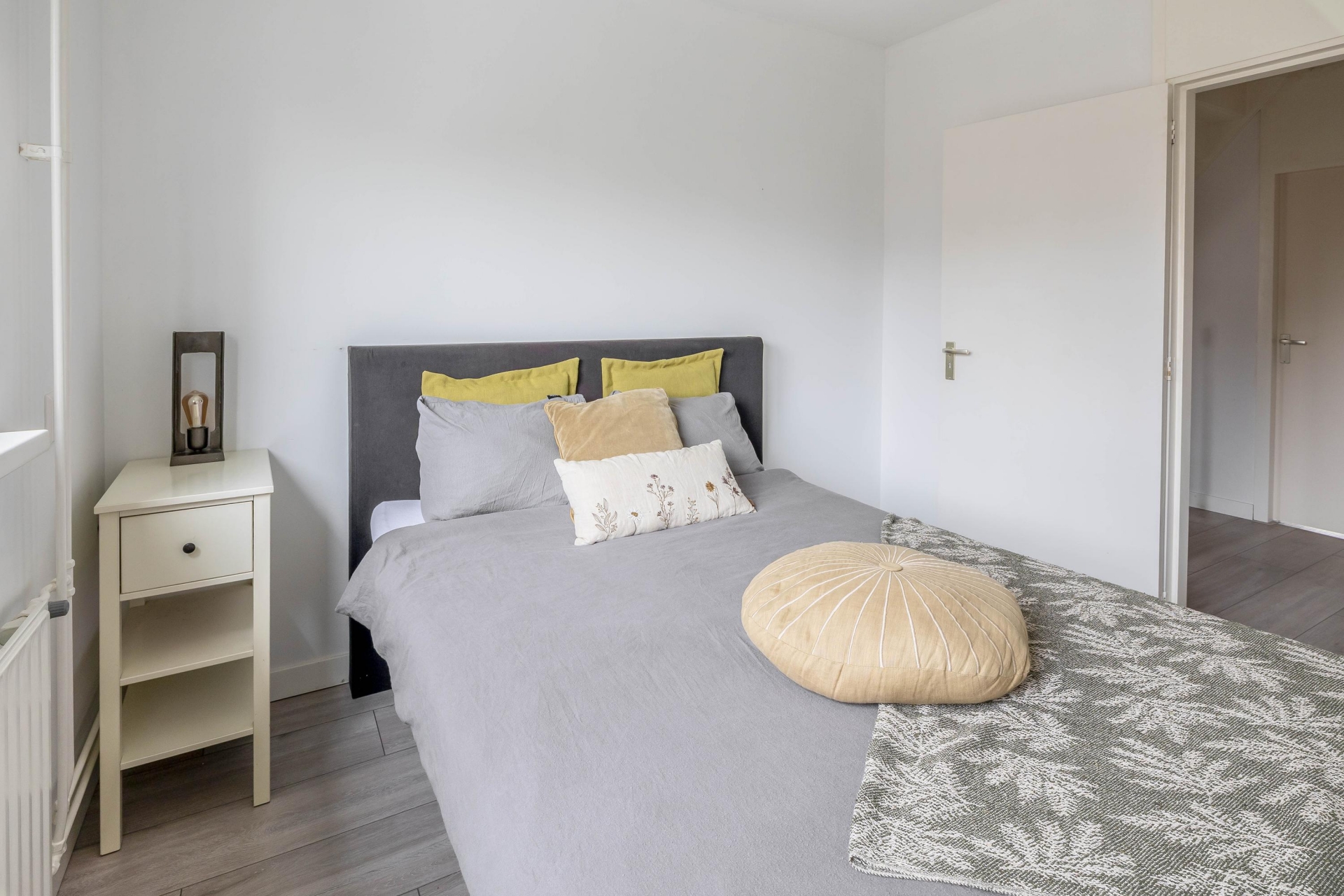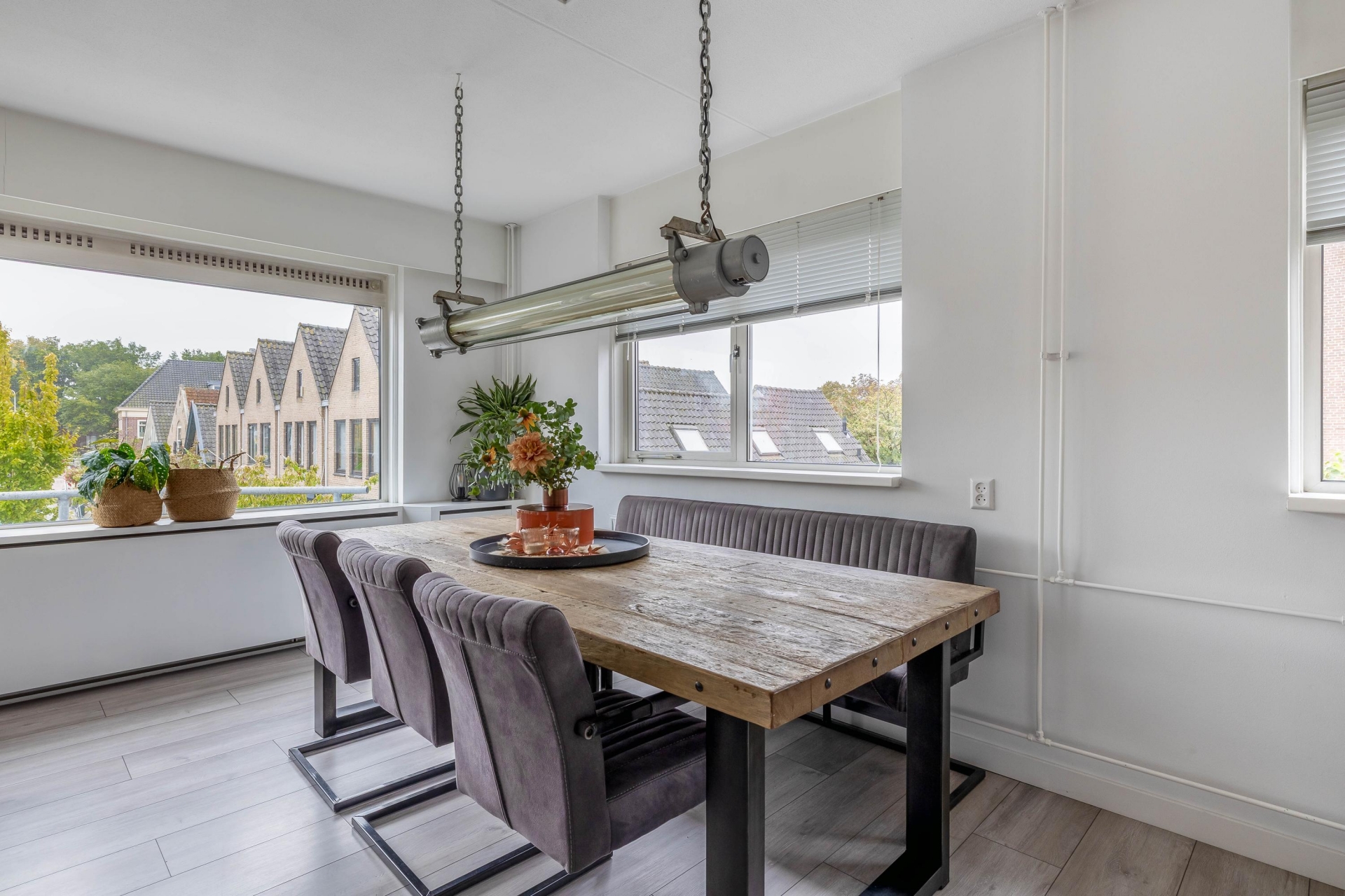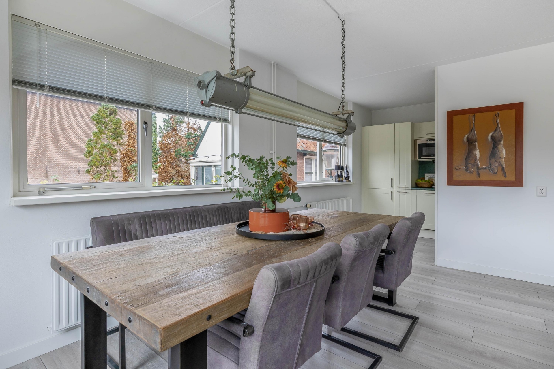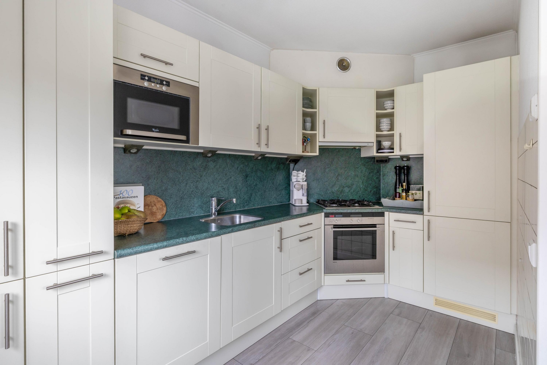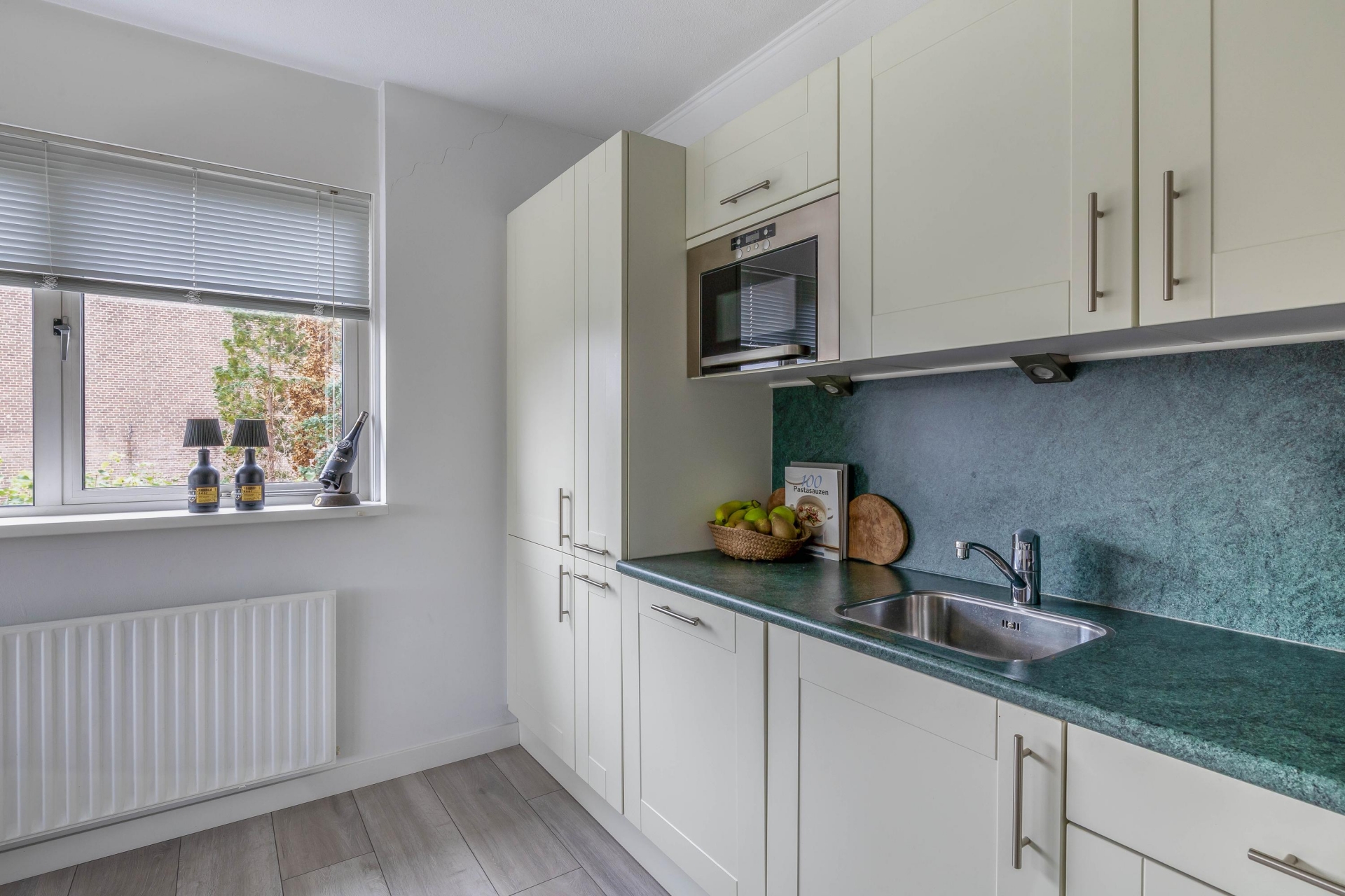 Zodra je de woonkamer binnenstapt, valt het je direct op: de enorme hoeveelheid daglicht. Dankzij de grote raampartijen aan meerdere zijden komt het licht werkelijk van alle kanten binnen. De open indeling zorgt voor een fijne flow tussen de zithoek, eetruimte en keuken. Er is genoeg plek voor een royale eettafel – ideaal voor gezellige etentjes of uitgebreid thuiswerken. De moderne vloer, de rustige afwerking en het groene uitzicht dragen bij aan een ontspannen sfeer. En met het balkon op het zuiden zit je hier 's middags en 's avonds heerlijk in de zon.