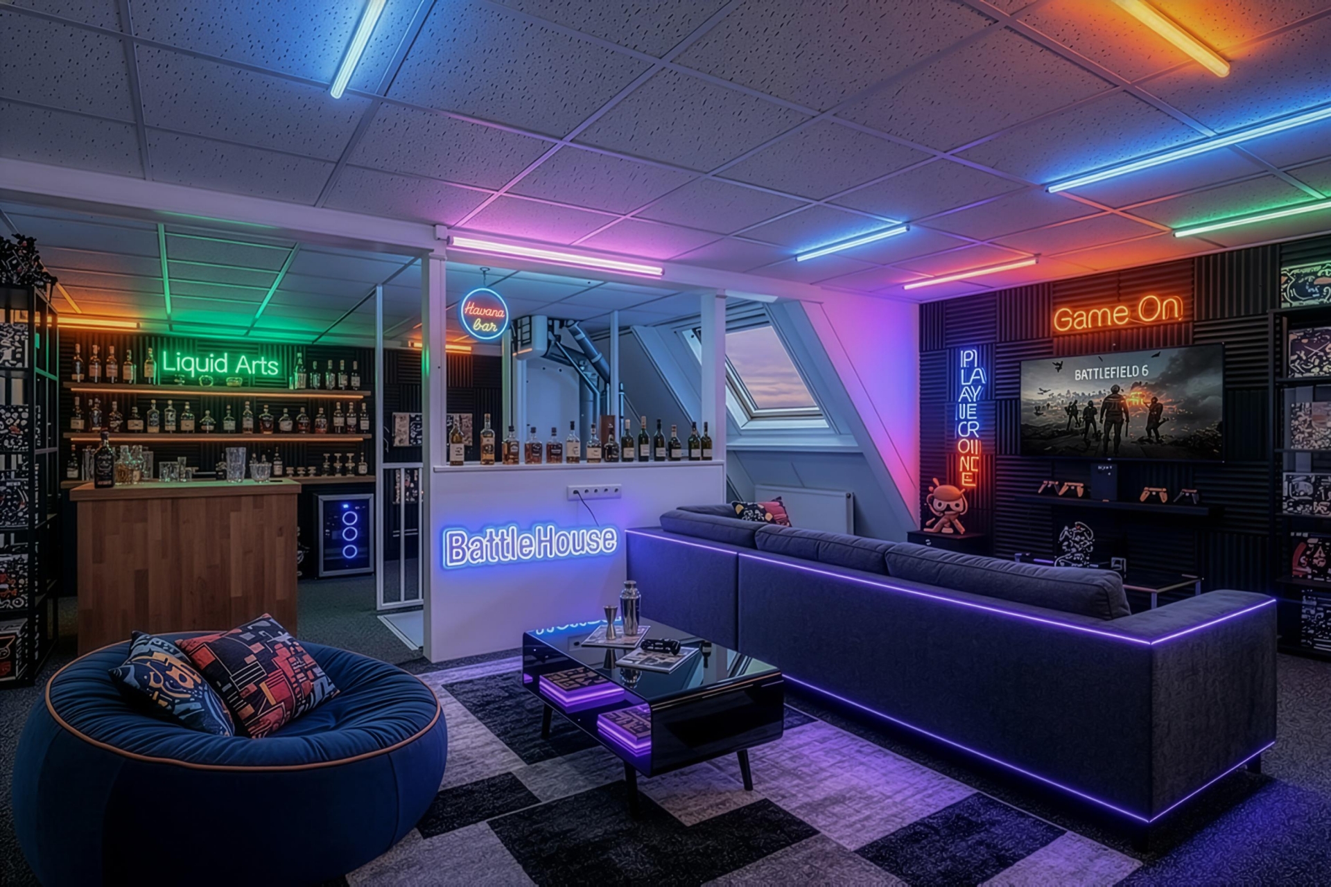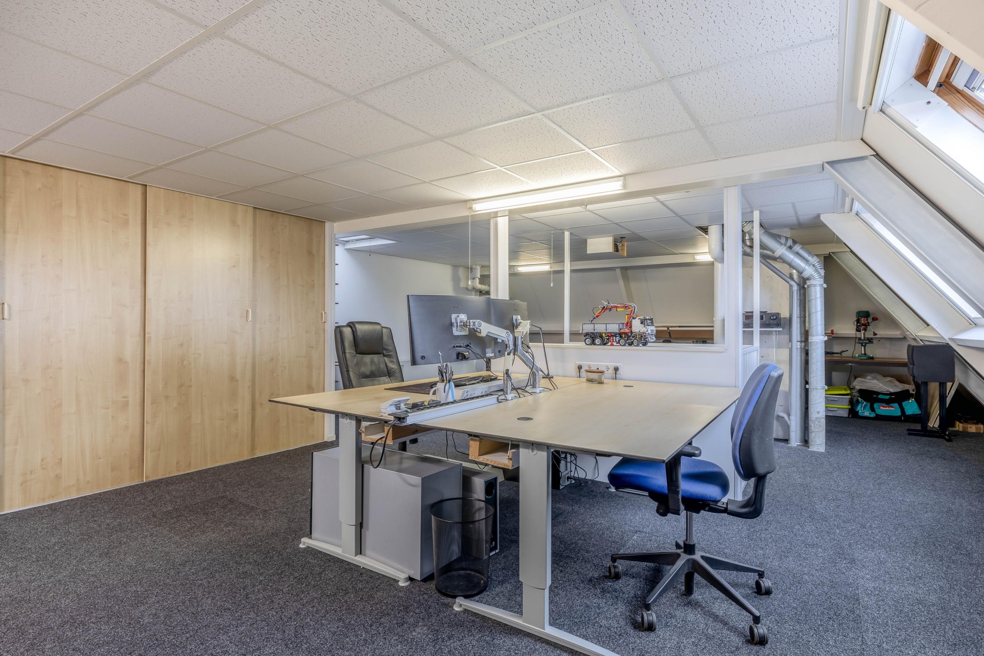 De bovenverdieping is nu ingericht als werkruimte met meerdere opstellingen en dakramen voor natuurlijk licht. Ideaal voor wie een kantoor aan huis nodig heeft of zelfstandig ondernemer is. Maar deze ruimte is net zo goed geschikt als extra slaapkamer, hobbyruimte of speelkamer voor de kinderen. Juist omdat de ruimte zo open en licht is, zijn de mogelijkheden eindeloos. Denk bijvoorbeeld aan het splitsen in twee kamers, een logeerkamer én een thuiskantoor, of zelfs een studio-achtige werkplek.