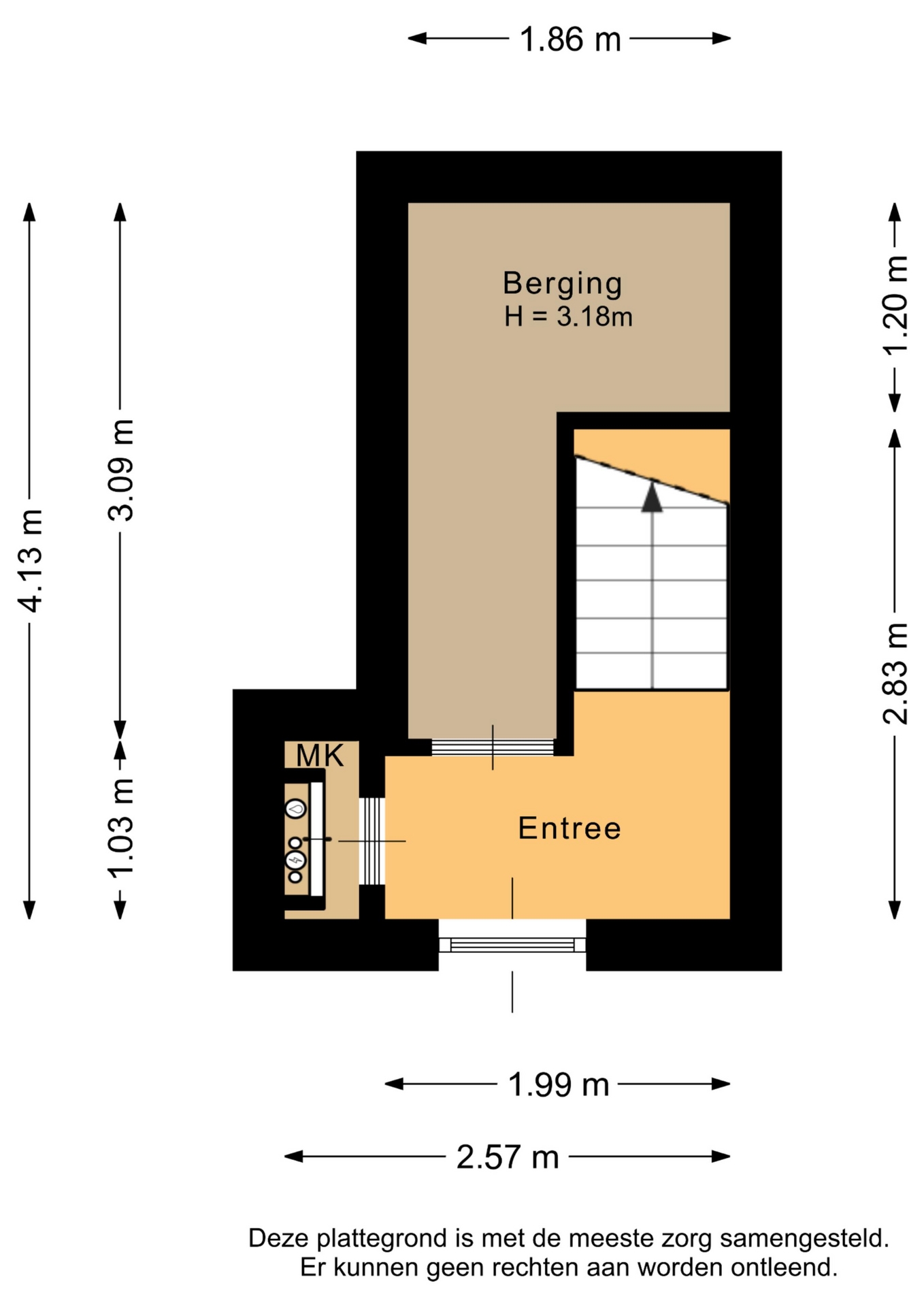 “Deze informatie is door ons met de nodige zorgvuldigheid samengesteld. Onzerzijds wordt echter geen enkele aansprakelijkheid aanvaard voor enige onvolledigheid, onjuistheid of anderszins, dan wel de gevolgen daarvan. Alle opgegeven maten en oppervlakten zijn indicatief.”