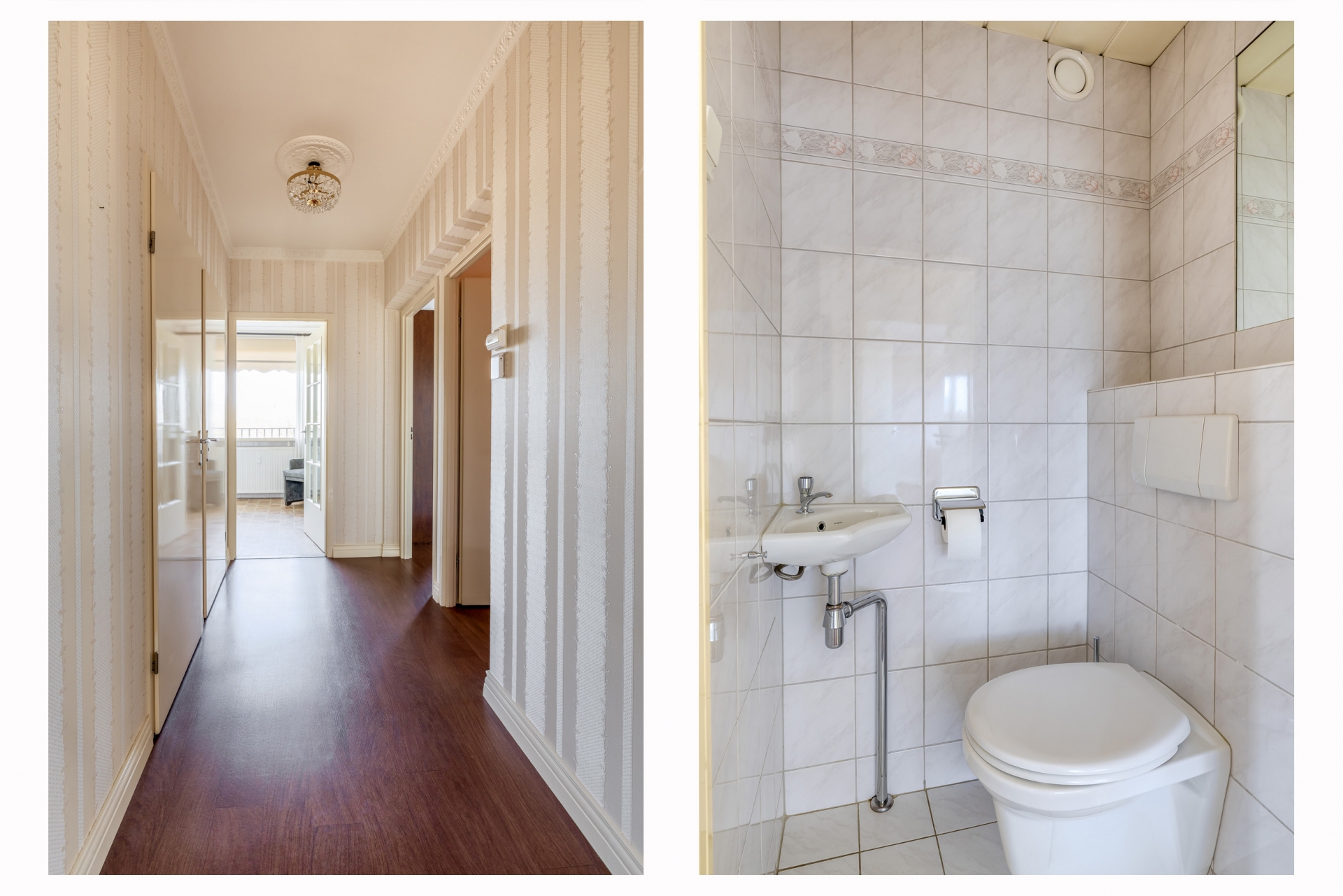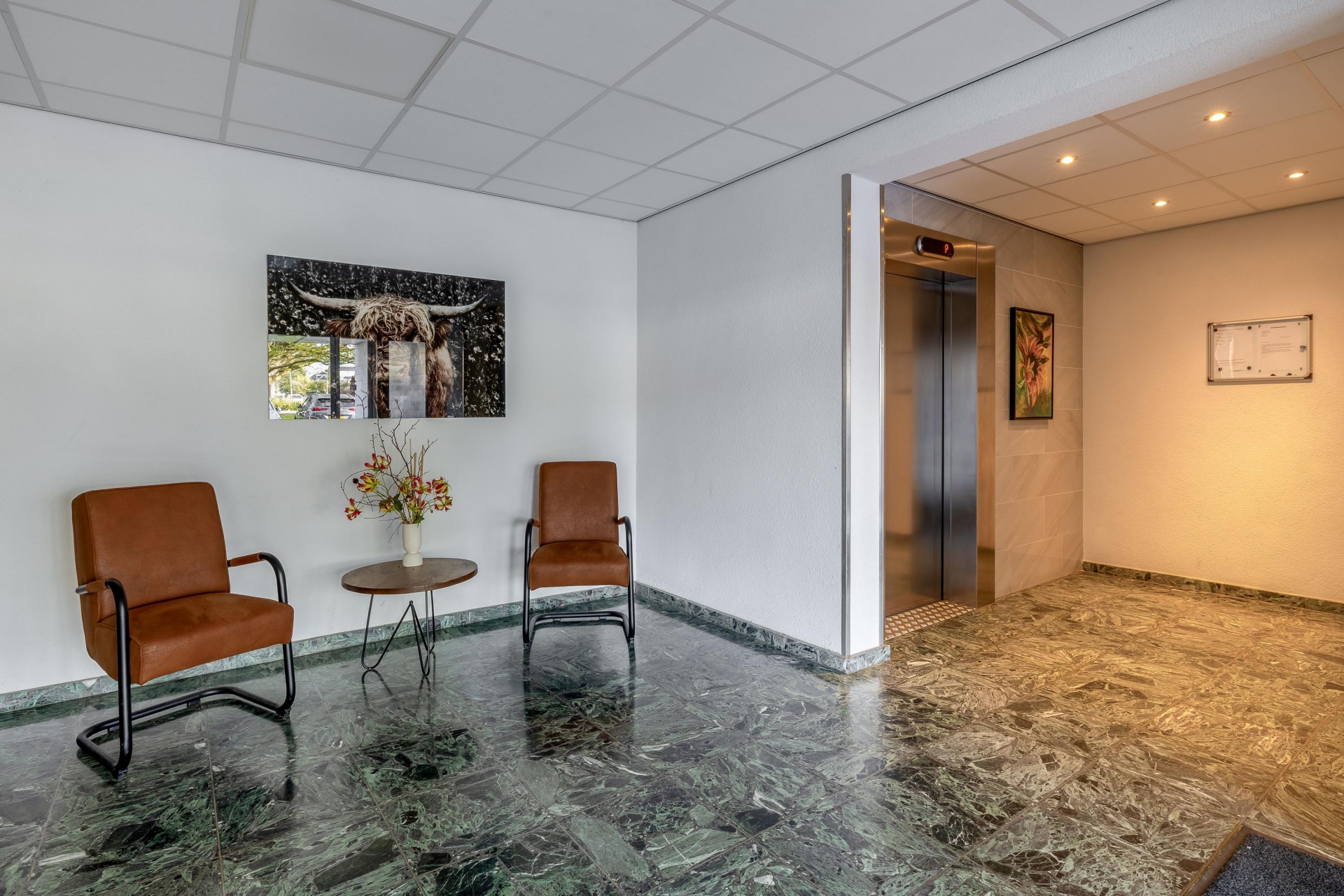 Het complex is netjes onderhouden en voorzien van een afgesloten entree met bellentableau en lift. Ook is er toegang tot de bergingen. Eenmaal boven kom je binnen in een hal die toegang geeft tot het appartement.