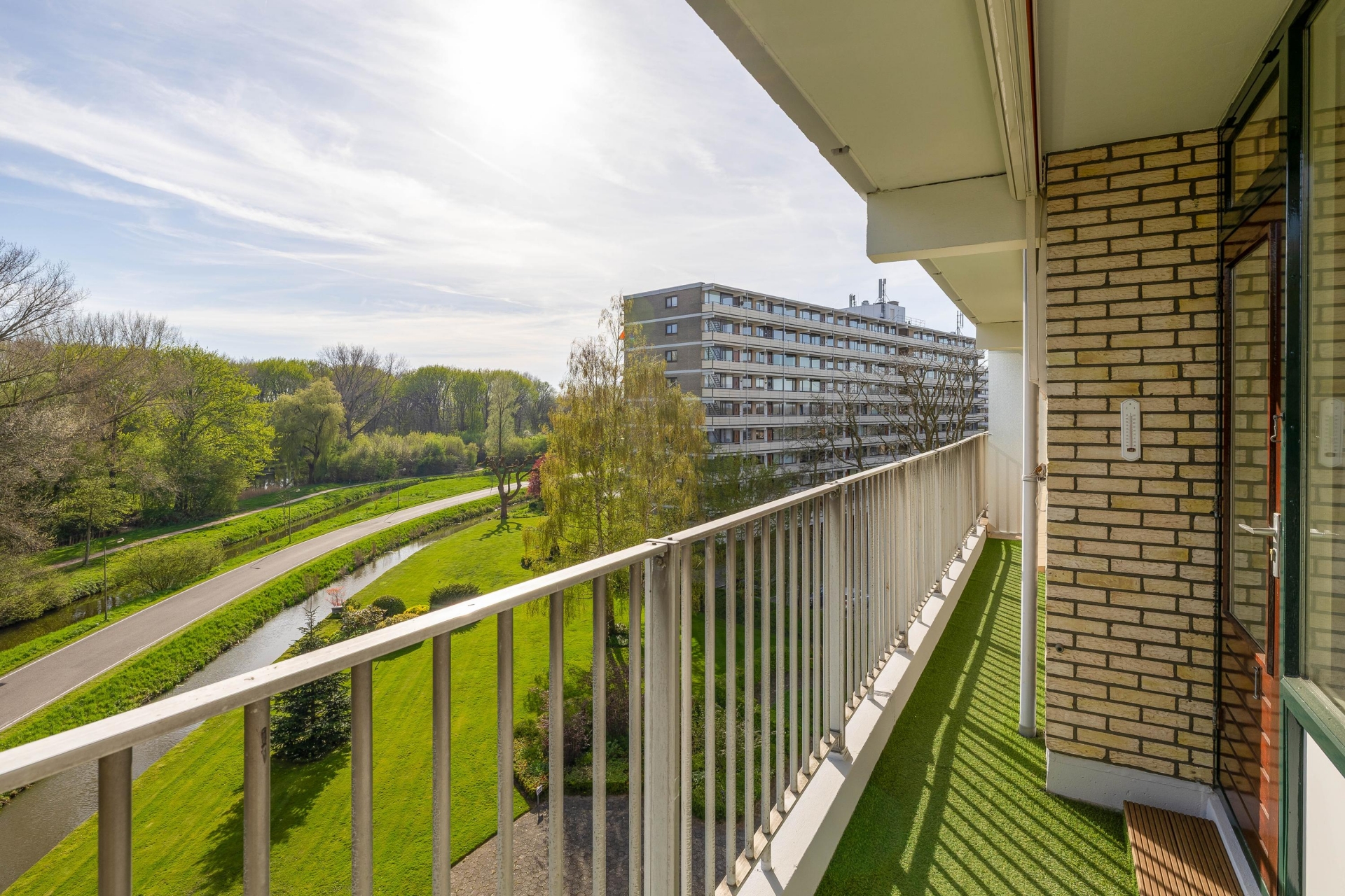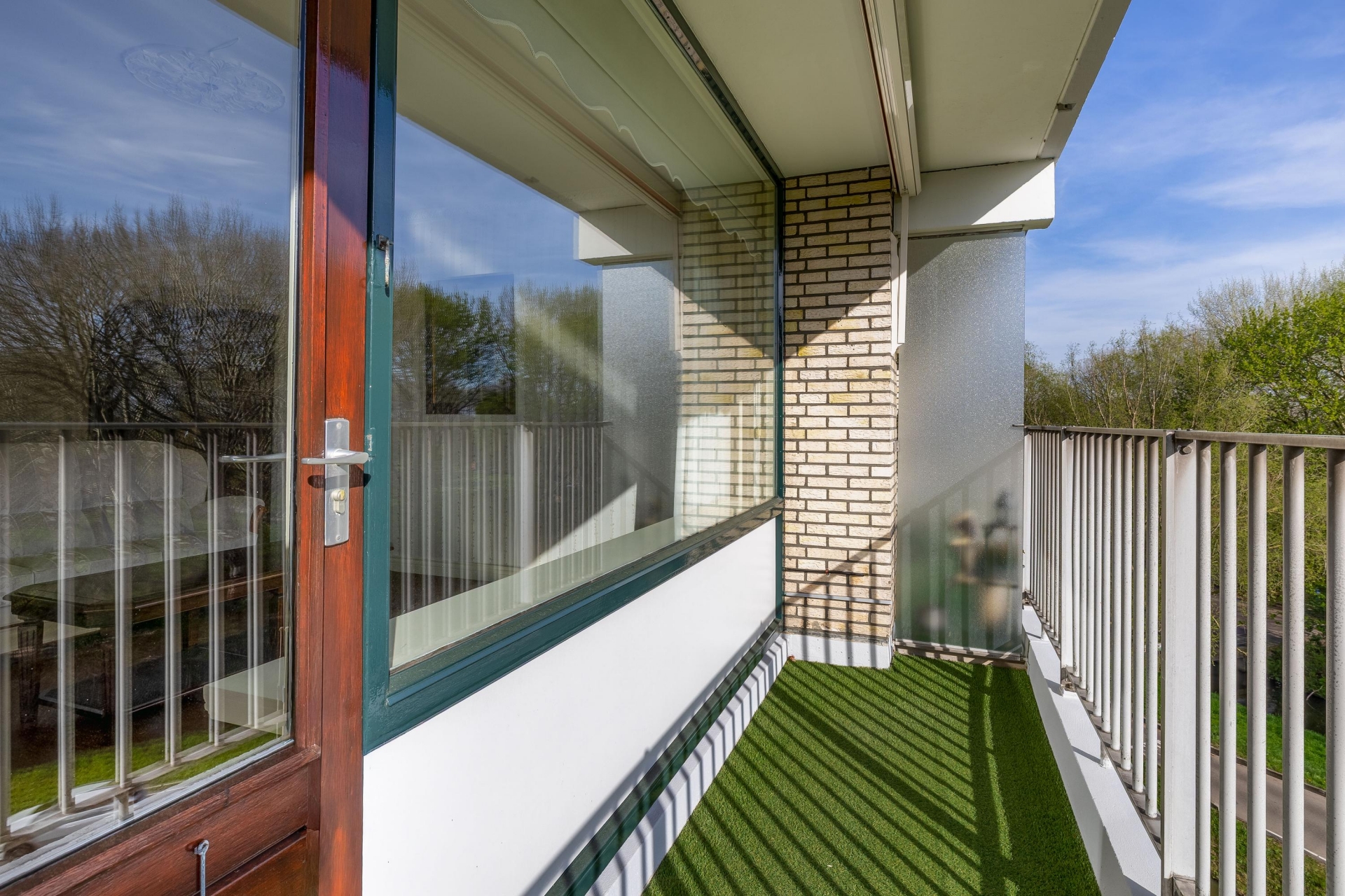 Vanuit de woonkamer stap je zo het balkon op het zuiden op, waar je heerlijk buiten kunt zitten met een vrij uitzicht over de omgeving.