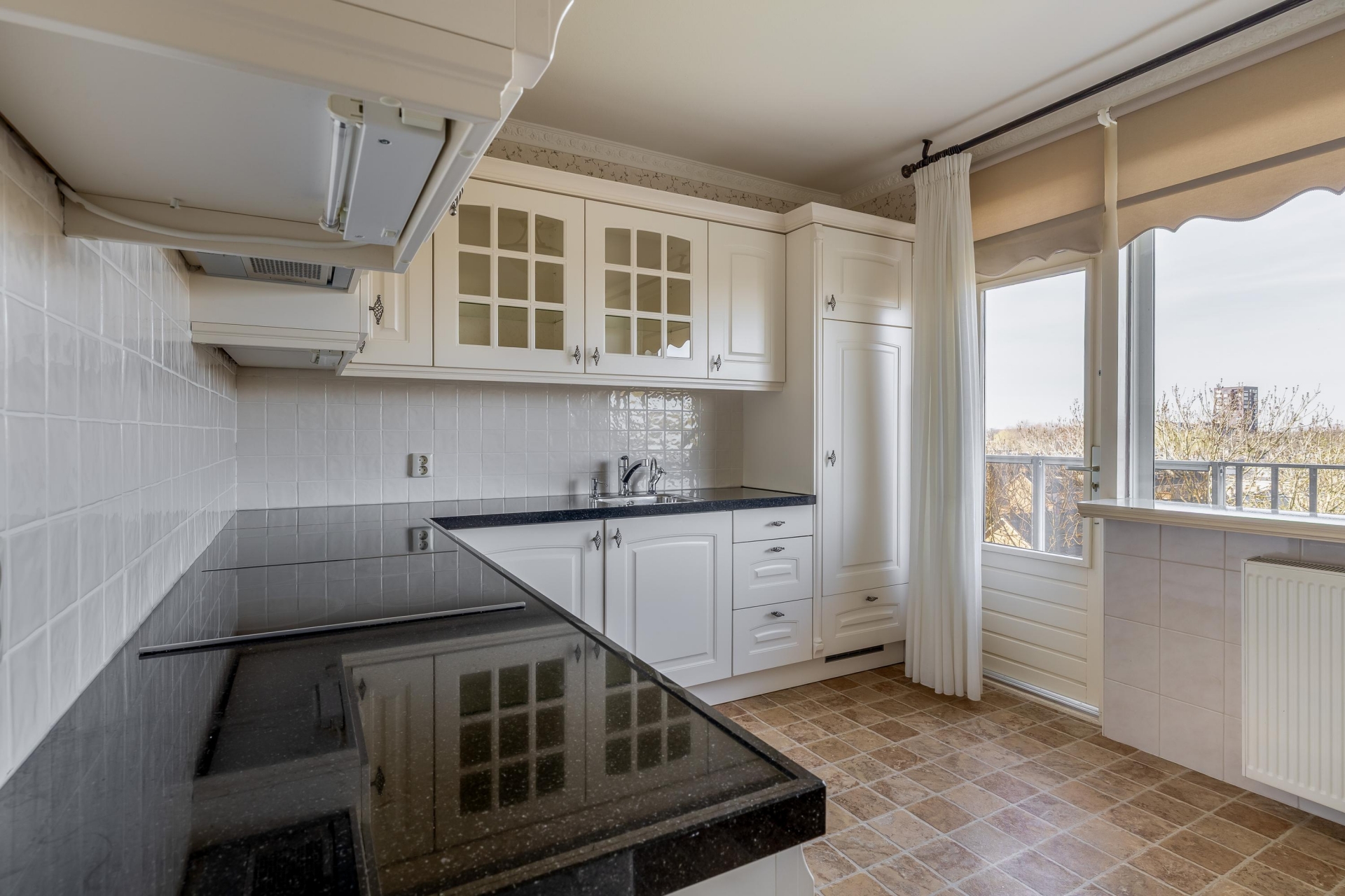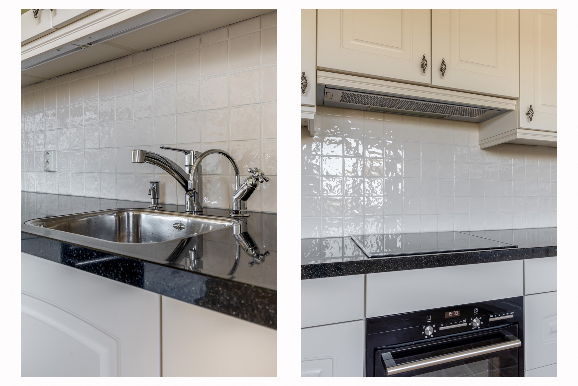 Aan de linkerkant van het appartement bevindt zich de keuken, deze is voorzien van diverse inbouwapparatuur, waaronder een combi-oven, inductiekookplaat, afzuiging, koelkast met vriesvak en een Quooker. Een functionele ruimte waar je prima uit de voeten kunt.