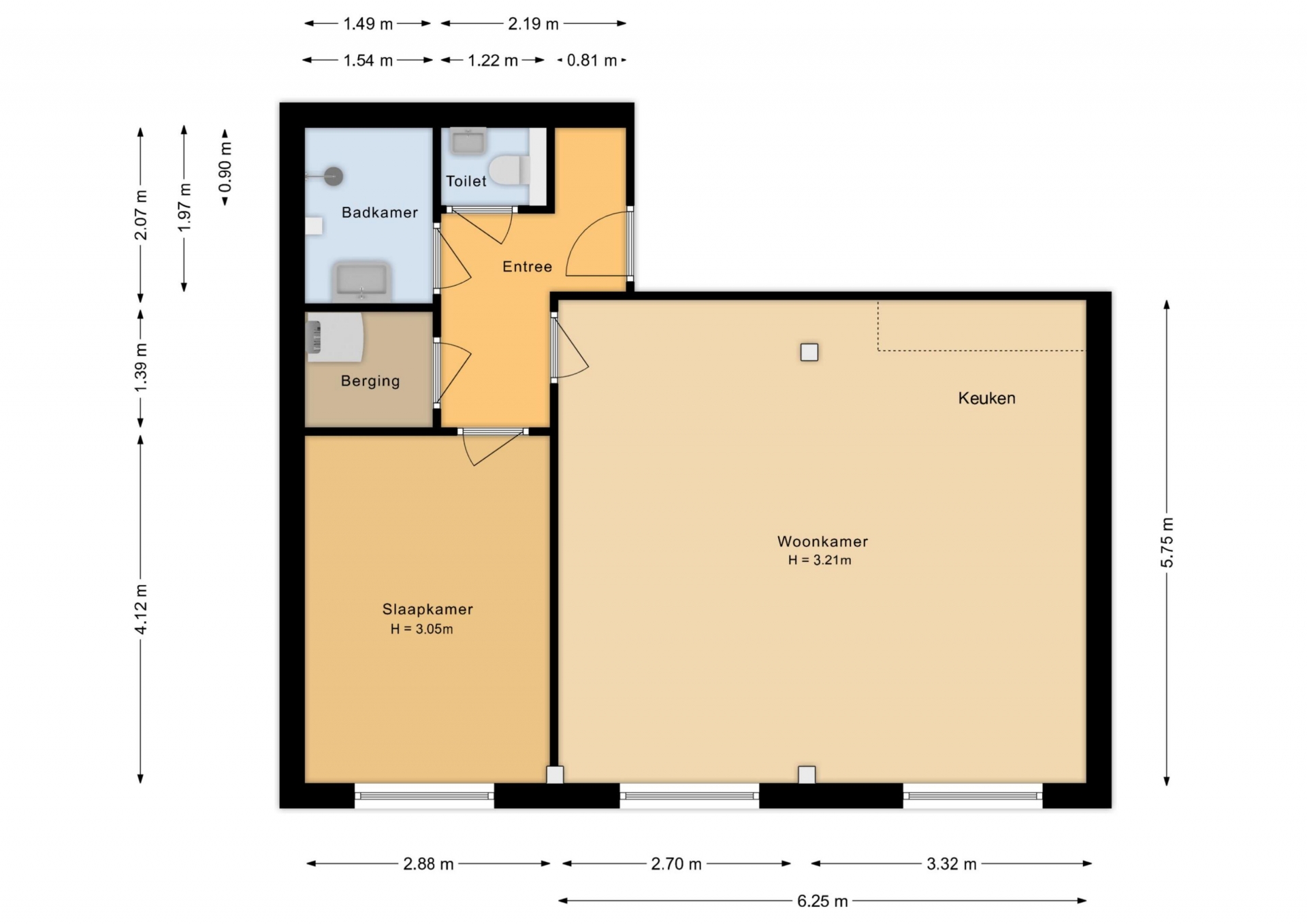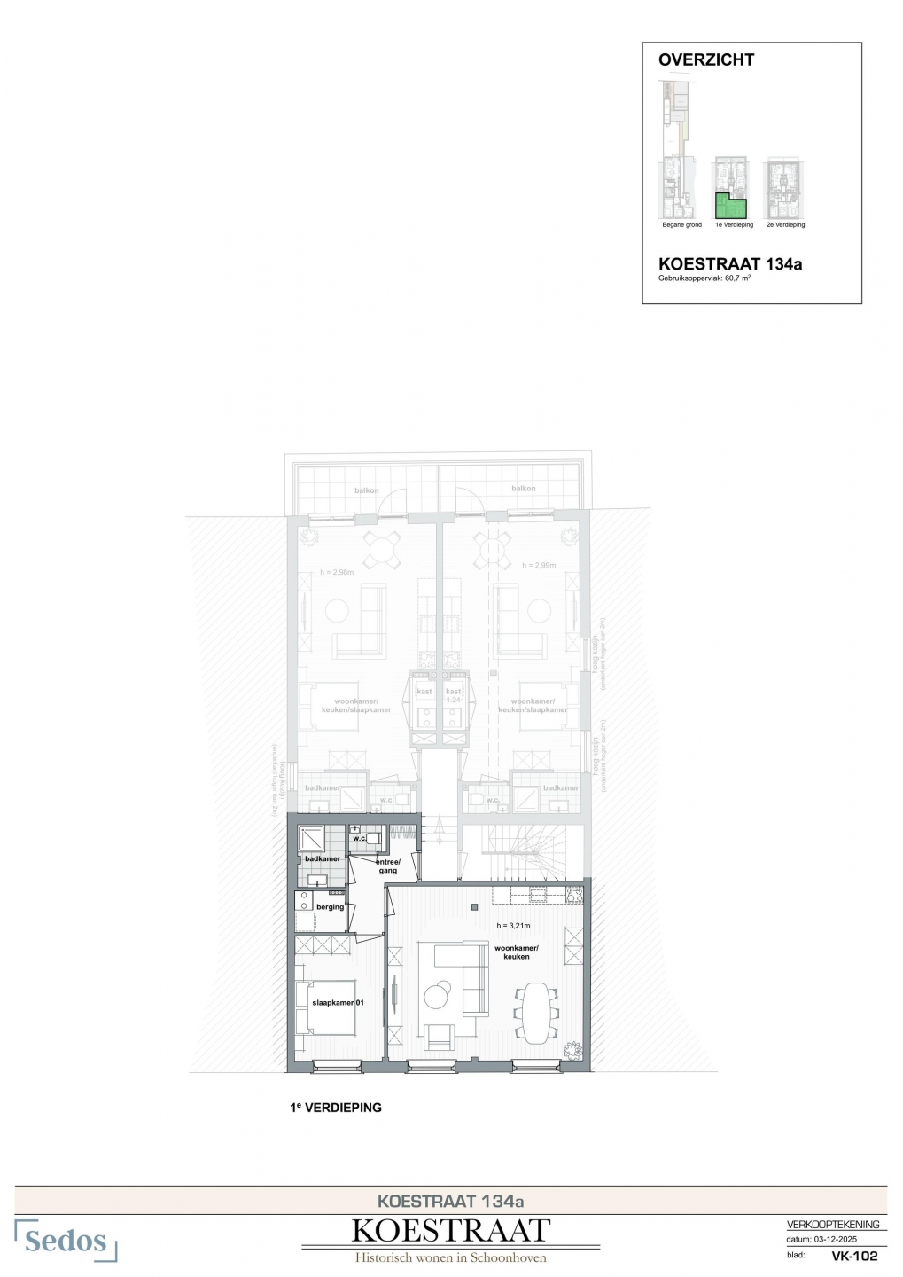 - Gebruiksoppervlakte 61m2