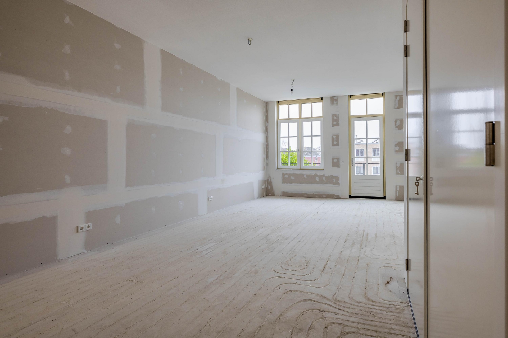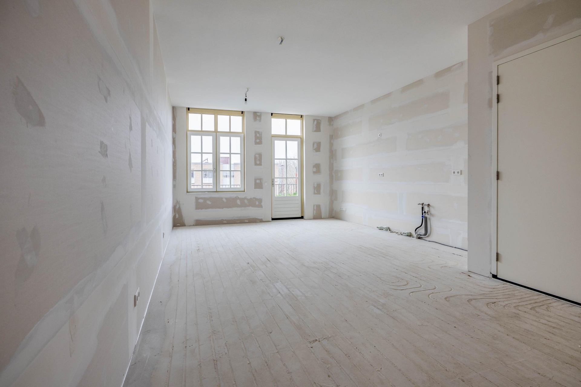De basis is al helemaal op orde: wanden zijn behangklaar afgewerkt, de badkamer is modern en compleet uitgevoerd, en de keukenruimte is voorzien van aansluitpunten voor jouw eigen keukeninrichting. Dit geeft je de vrijheid om de afwerking en indeling naar je eigen wensen te bepalen.