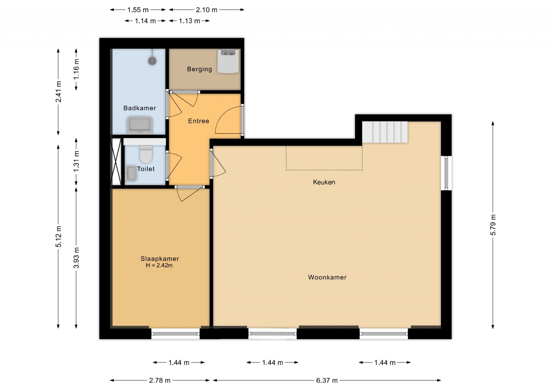 De woonruimte is licht, strak afgewerkt en helemaal klaar om jouw eigen stijl aan te geven. De wanden zijn behangklaar, de keuken is nog vrij in te richten (aansluitingen zijn aanwezig) en de fraaie entresol zorgt voor een extra dimensie in de ruimte, perfect als werkplek, hobbyruimte of logeerplek. De houten balken en de hoge vide geven echt karakter aan het appartement!