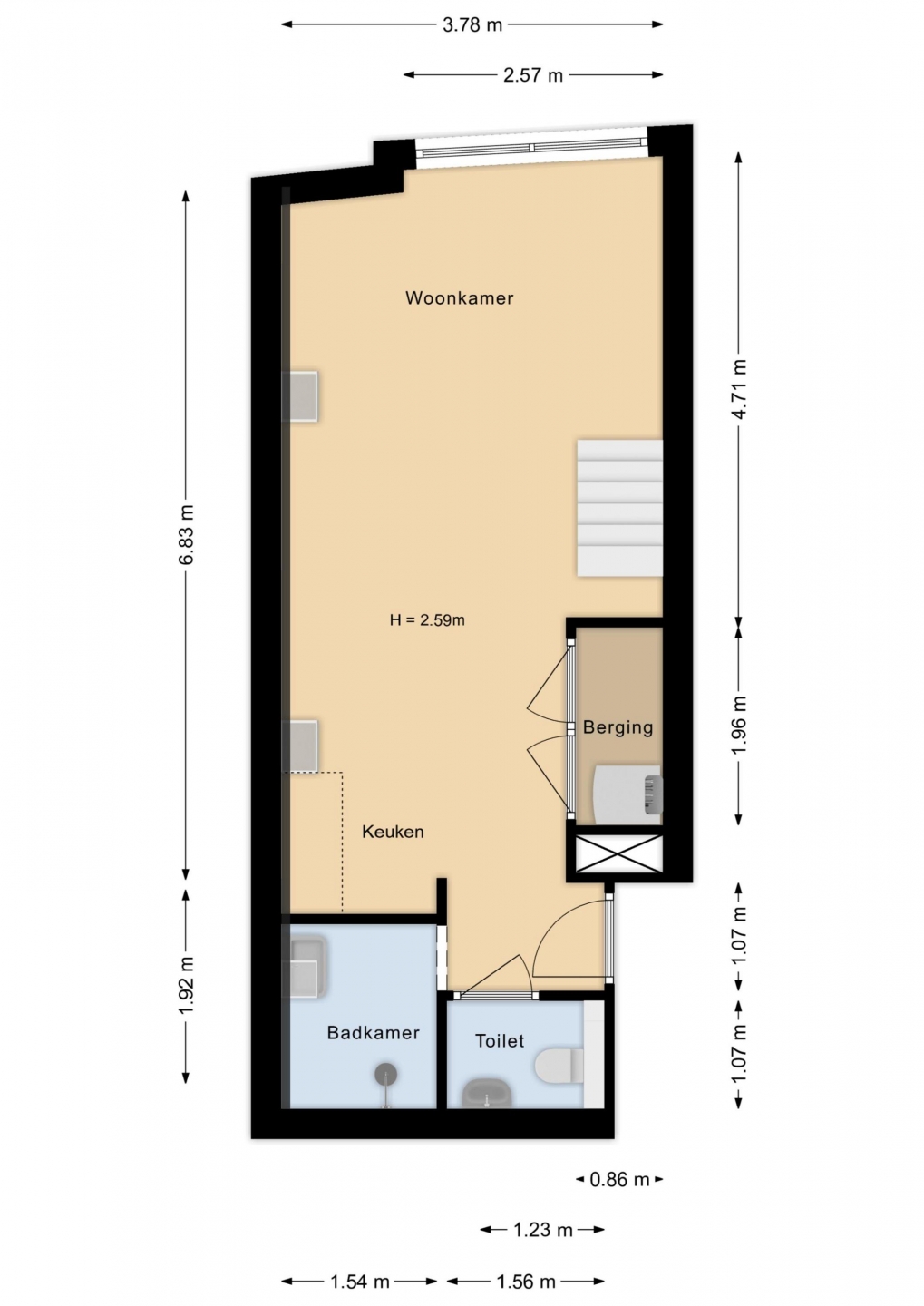 - Keuken nog zelf te plaatsen (aansluitingen aanwezig)
