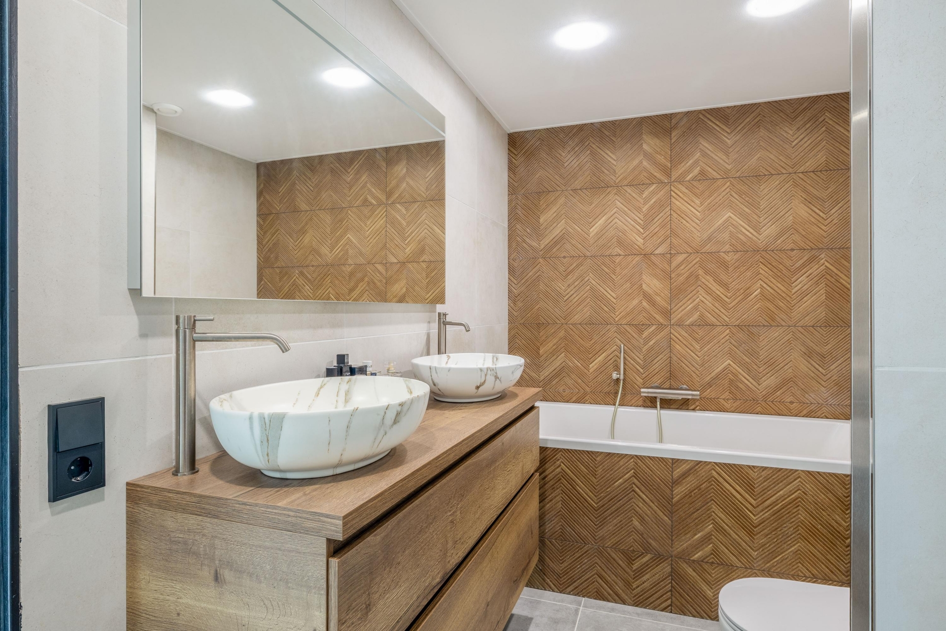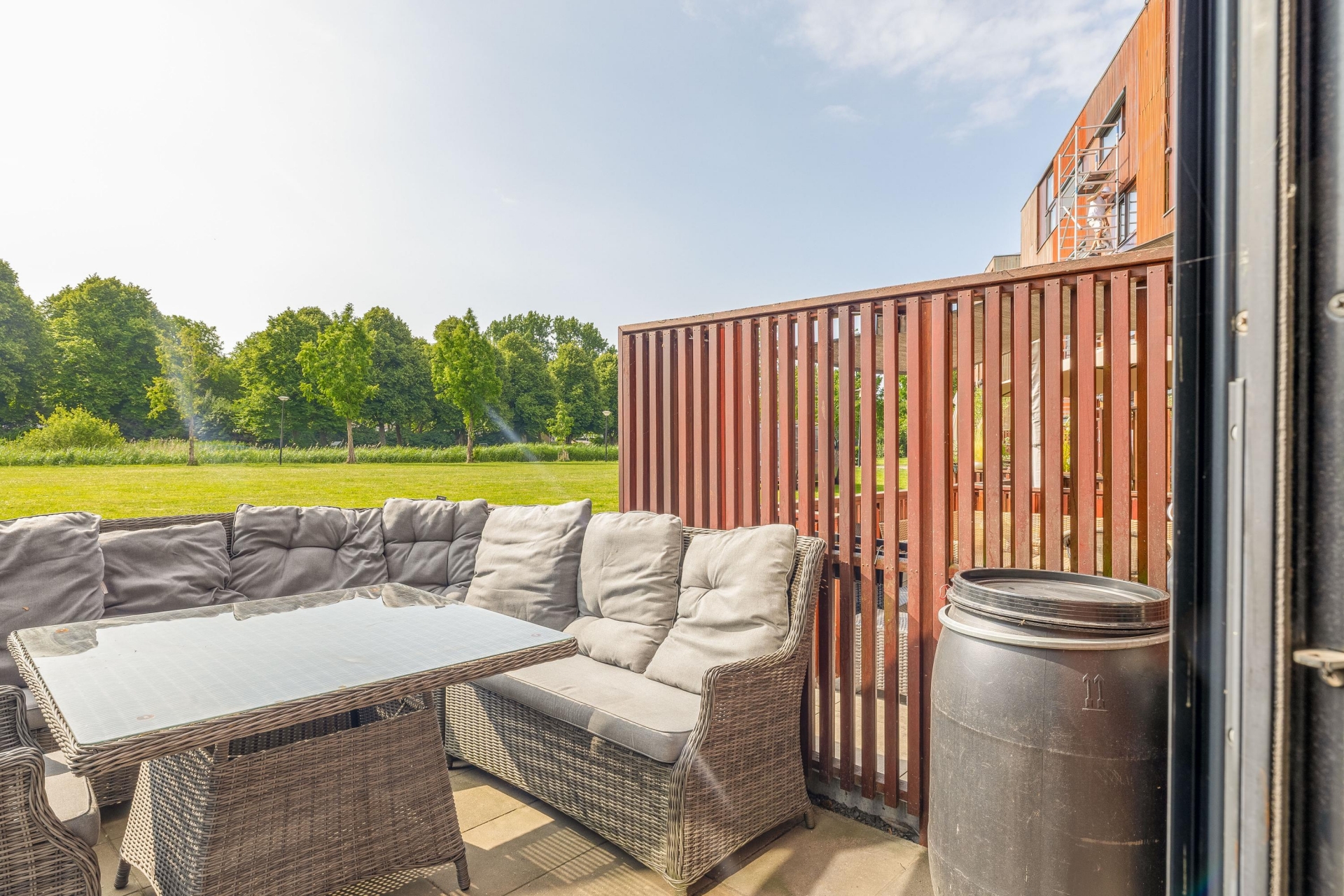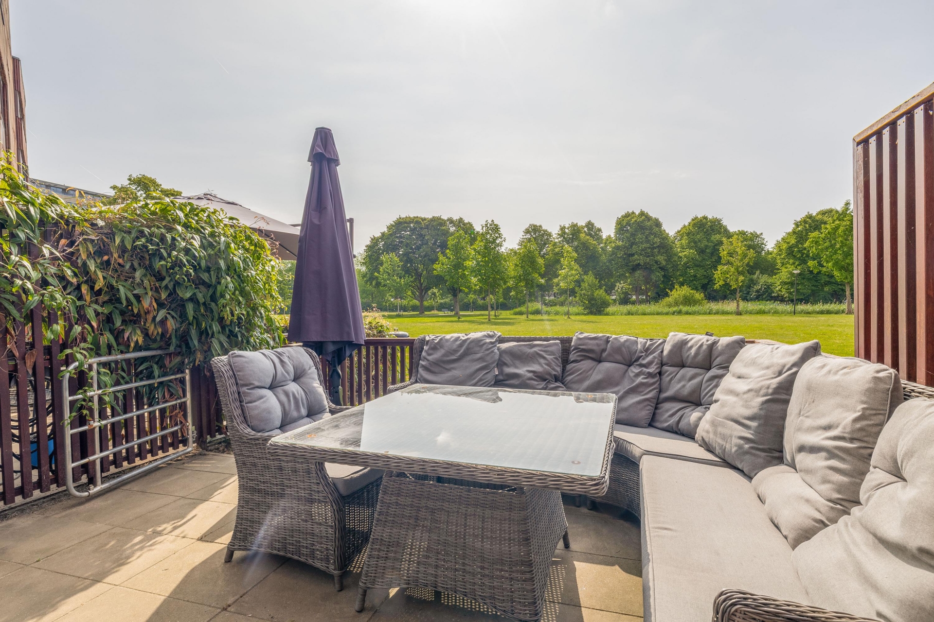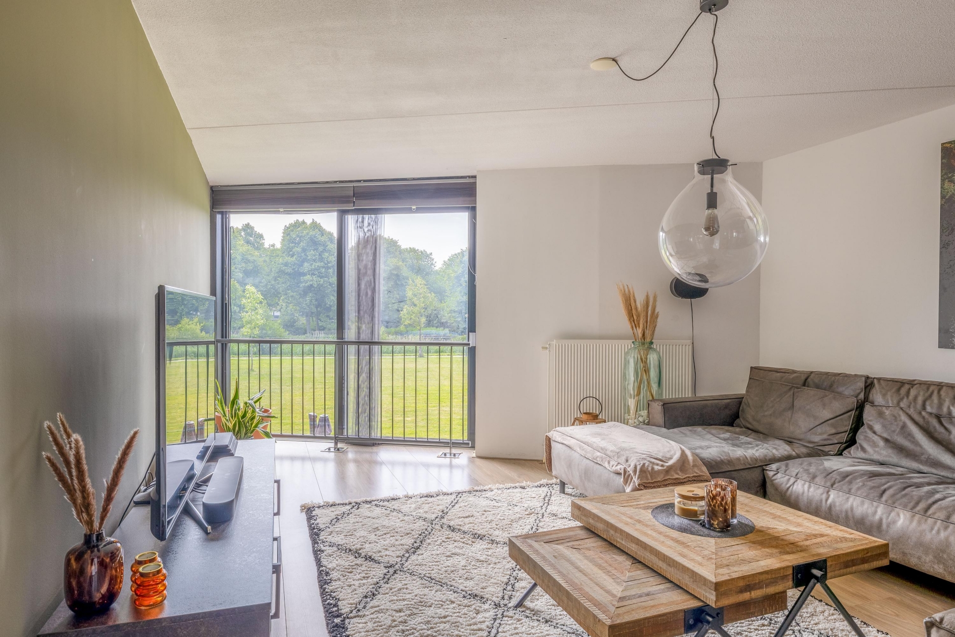 Op de eerste verdieping bevindt zich de doorzon woonkamer van maar liefst 44 m². Dankzij de glazen pui aan de voorzijde en de schuifpui aan de achterzijde (Frans balkon) komt het daglicht hier van twee kanten binnen. De woonkamer biedt volop ruimte voor een royale zithoek en een grote eettafel. Hier woon je letterlijk boven het groen, met een prachtig uitzicht over het park.