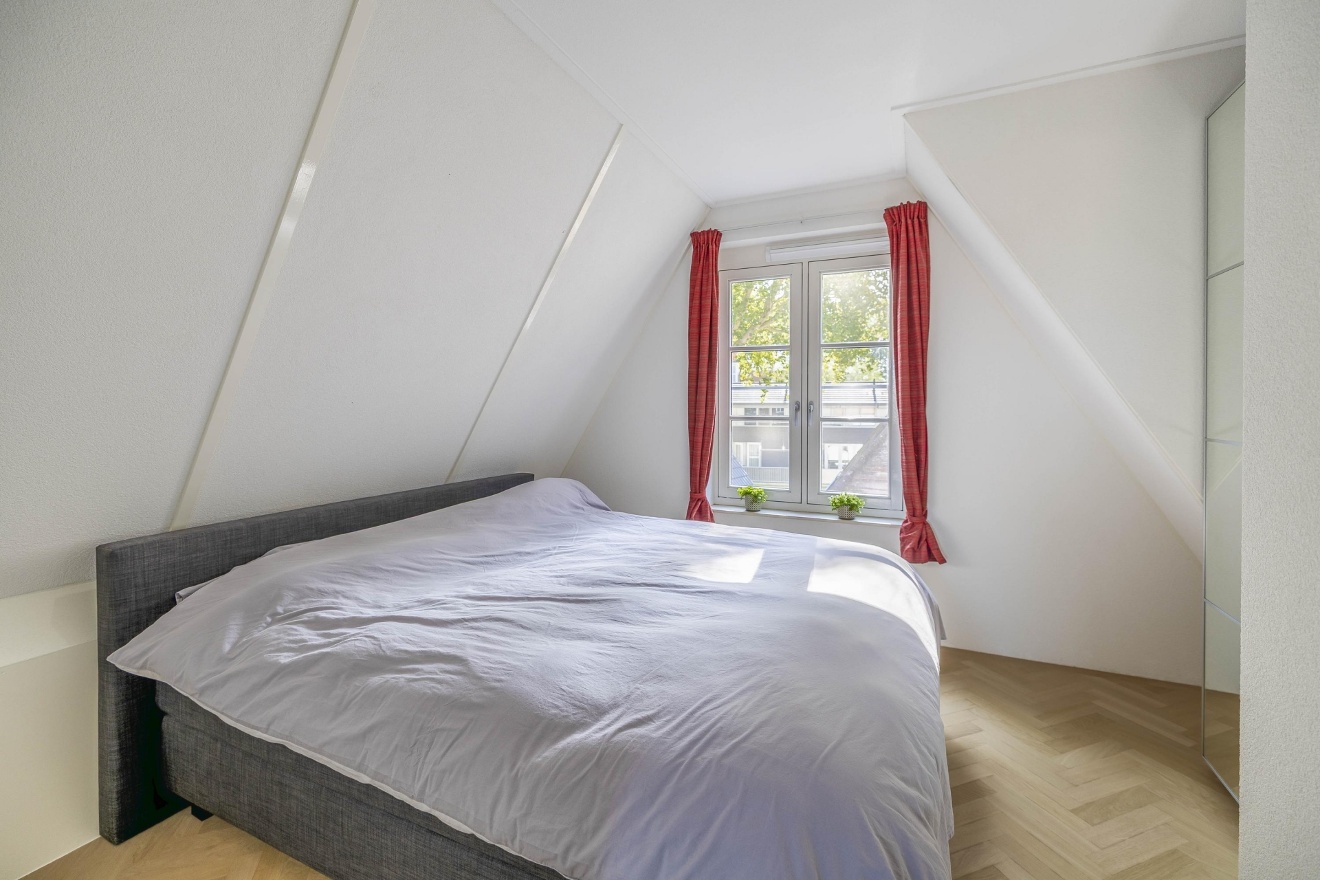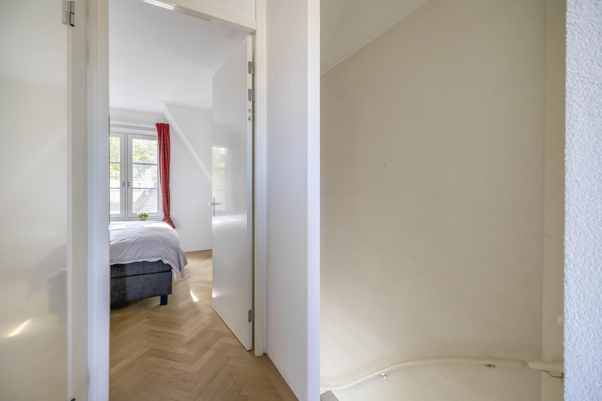 Op de 2e verdieping tref je aan de voor en achterzijde van de woning nog 2 goed bemeten slaapkamers allen in uitstekende staat en ook met dezelfde eiken parket visgraat vloer. De moderne badkamer is praktisch ingedeeld met een inloopdouche, breed wastafelmeubel en toilet, alles in frisse en tijdloze stijl.