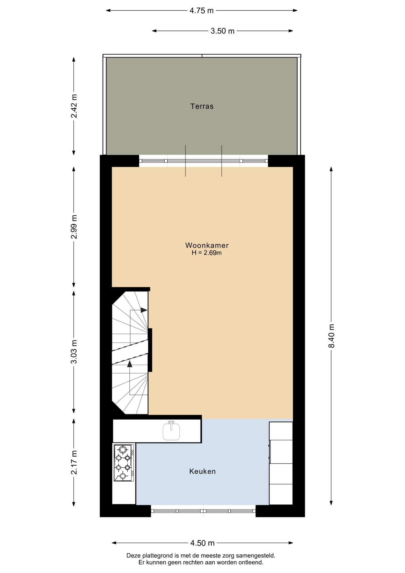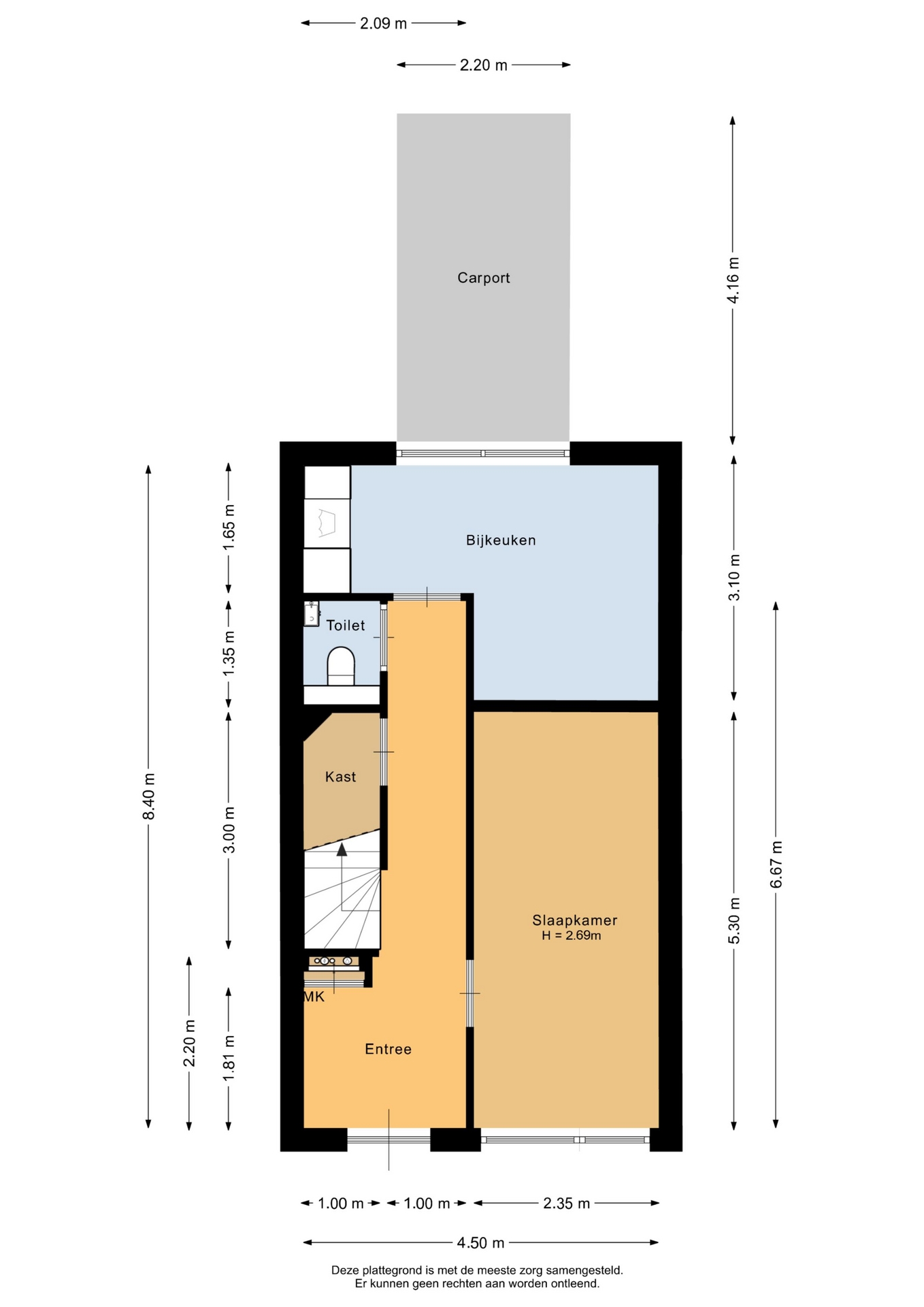 “Deze informatie is door ons met de nodige zorgvuldigheid samengesteld. Onzerzijds wordt echter geen enkele aansprakelijkheid aanvaard voor enige onvolledigheid, onjuistheid of anderszins, dan wel de gevolgen daarvan. Alle opgegeven maten en oppervlakten zijn indicatief.”