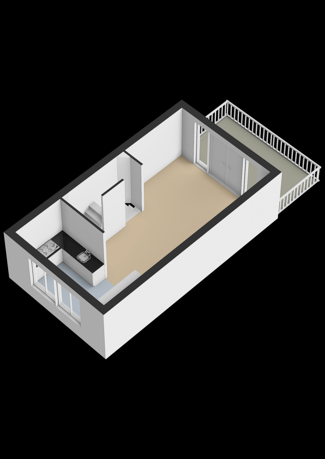 SLAAPKAMER EN BIJKEUKEN/BERGING BENEDEN