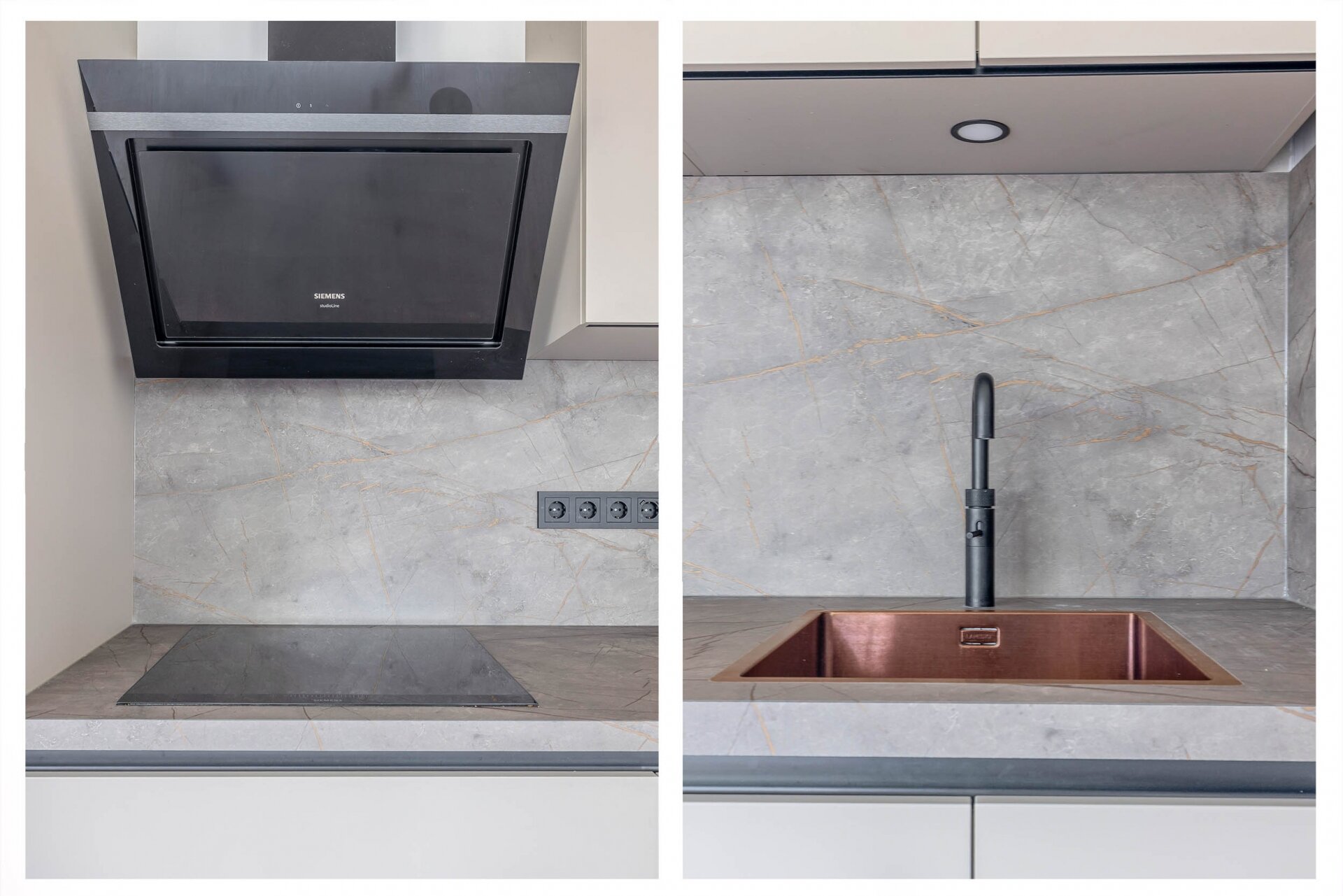Vanuit de entree heeft u toegang tot alle vertrekken in het appartement. Direct aan uw rechterhand vindt u de toiletruimte welke is voorzien van een hangend closet en fonteintje. Vanuit hier loopt u door naar de bijzonder ruime woonkamer welke is voorzien vloerverwarming, een keurige pvc vloer en grote raampartijen met een heerlijke lichtinval. Tevens vindt u in deze heerlijke ruimte de moderne, open keuken welke is uitgevoerd met een beige kleurstelling en beschikt over diverse inbouwapparatuur te weten; Quooker kraan, vaatwasser, combi oven, RvS spoelbak, inductie kookplaat, afzuigschouw en koel/vries combinatie. Vanuit de woonkamer loop u door naar een tweede hal waar zich de toegang bevindt tot een handige berging met daarin de warmtepomp. Grenzend hieraan treft u de badkamer. Deze meer dan ruime badkamer is voorzien van een tweede toilet, douchecabine en wastafelmeubel. Tegenover deze badkamer treft u de een tweetal slaapkamers welke beschikken over keurige afmetingen en wederom grote rampartijen met veel lichtinval.