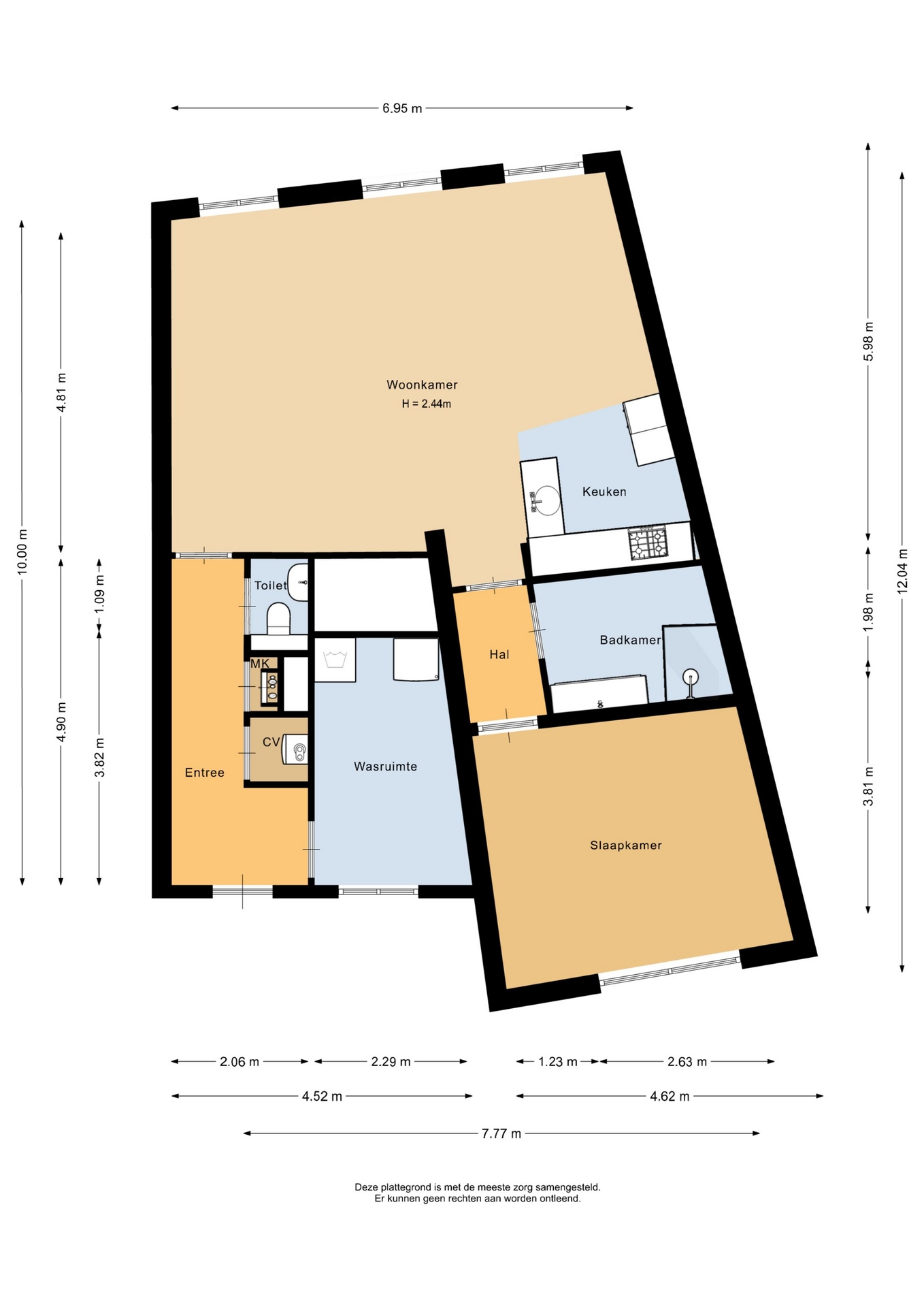 “Deze informatie is door ons met de nodige zorgvuldigheid samengesteld. Onzerzijds wordt echter geen enkele aansprakelijkheid aanvaard voor enige onvolledigheid, onjuistheid of anderszins, dan wel de gevolgen daarvan. Alle opgegeven maten en oppervlakten zijn indicatief.”
