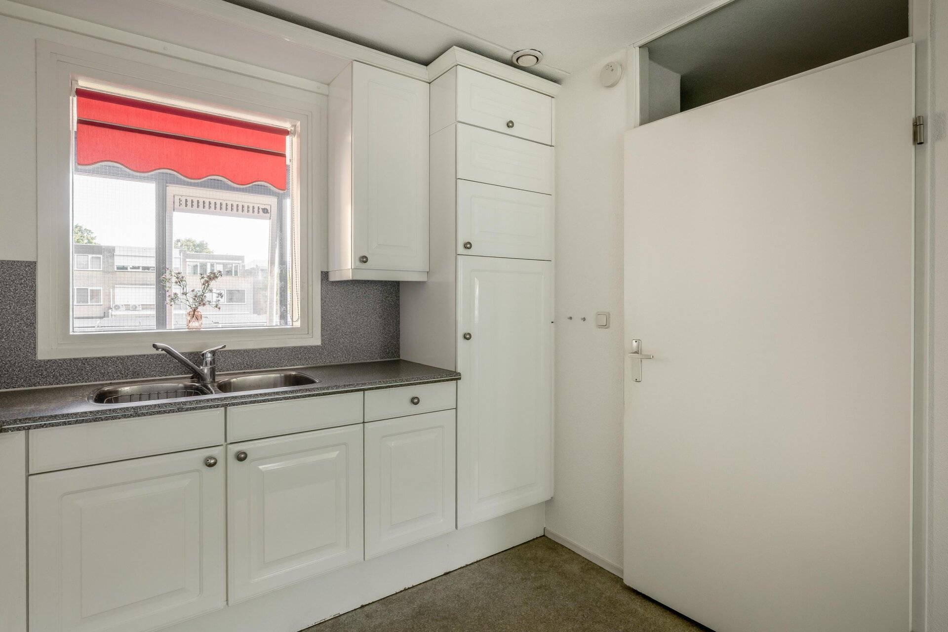 De halfopen keuken is netjes en functioneel met veel kastruimte. Vanuit de keuken is de bijkeuken te bereiken alwaar de aansluiting zich bevindt voor de wasmachine en droger en tevens de CV-installatie.