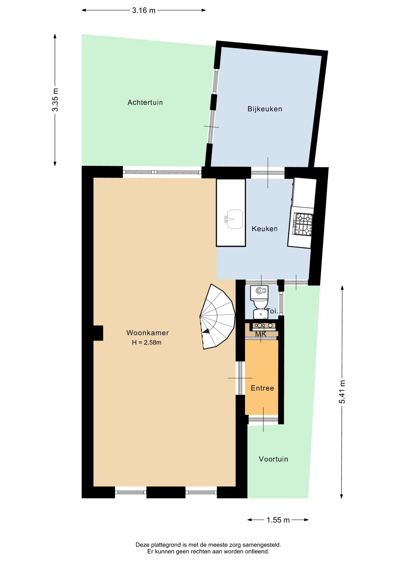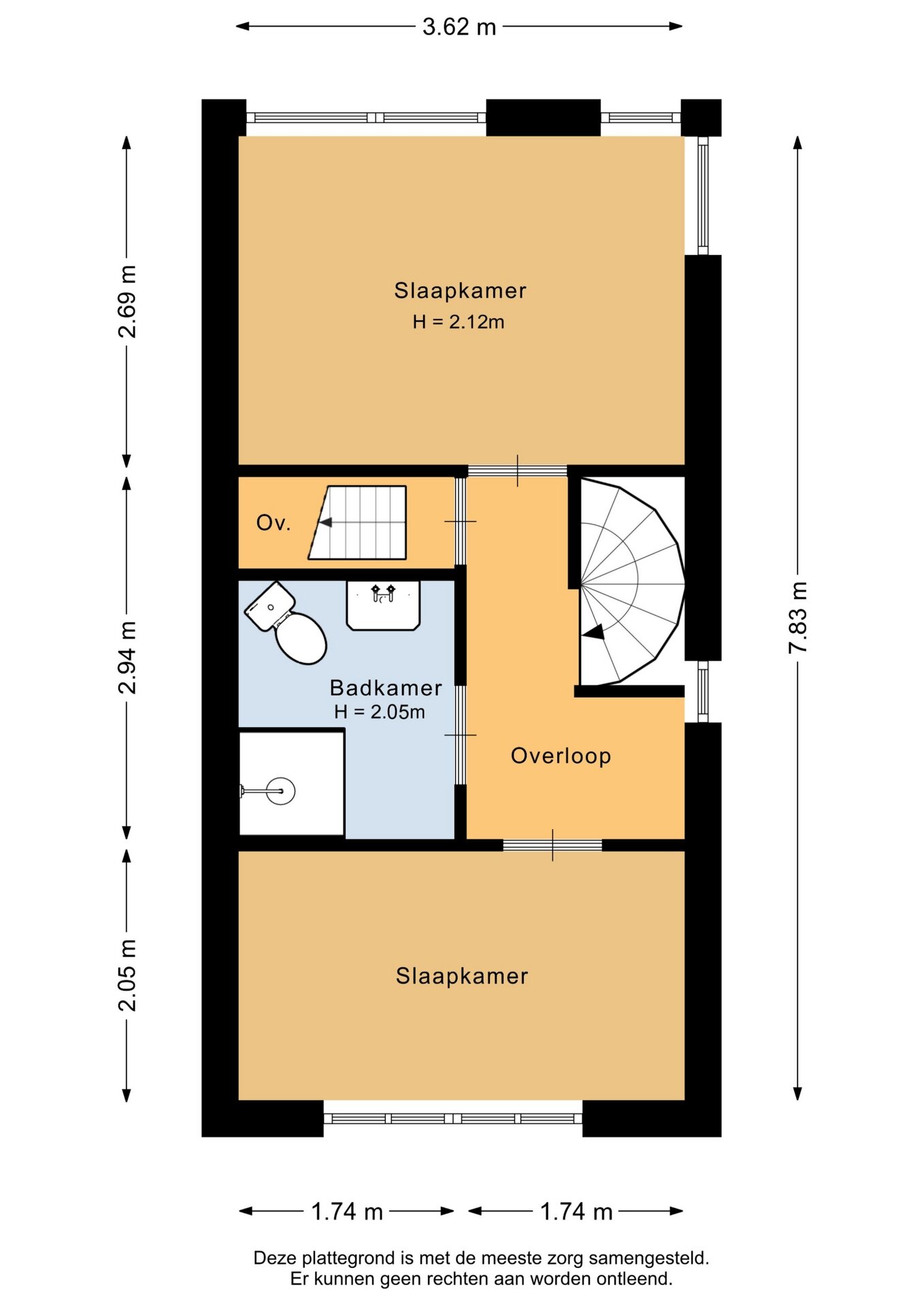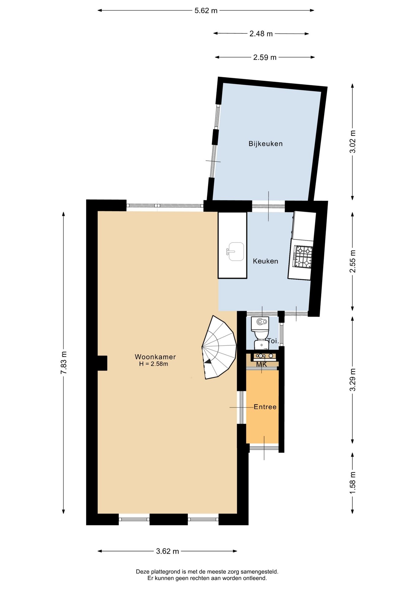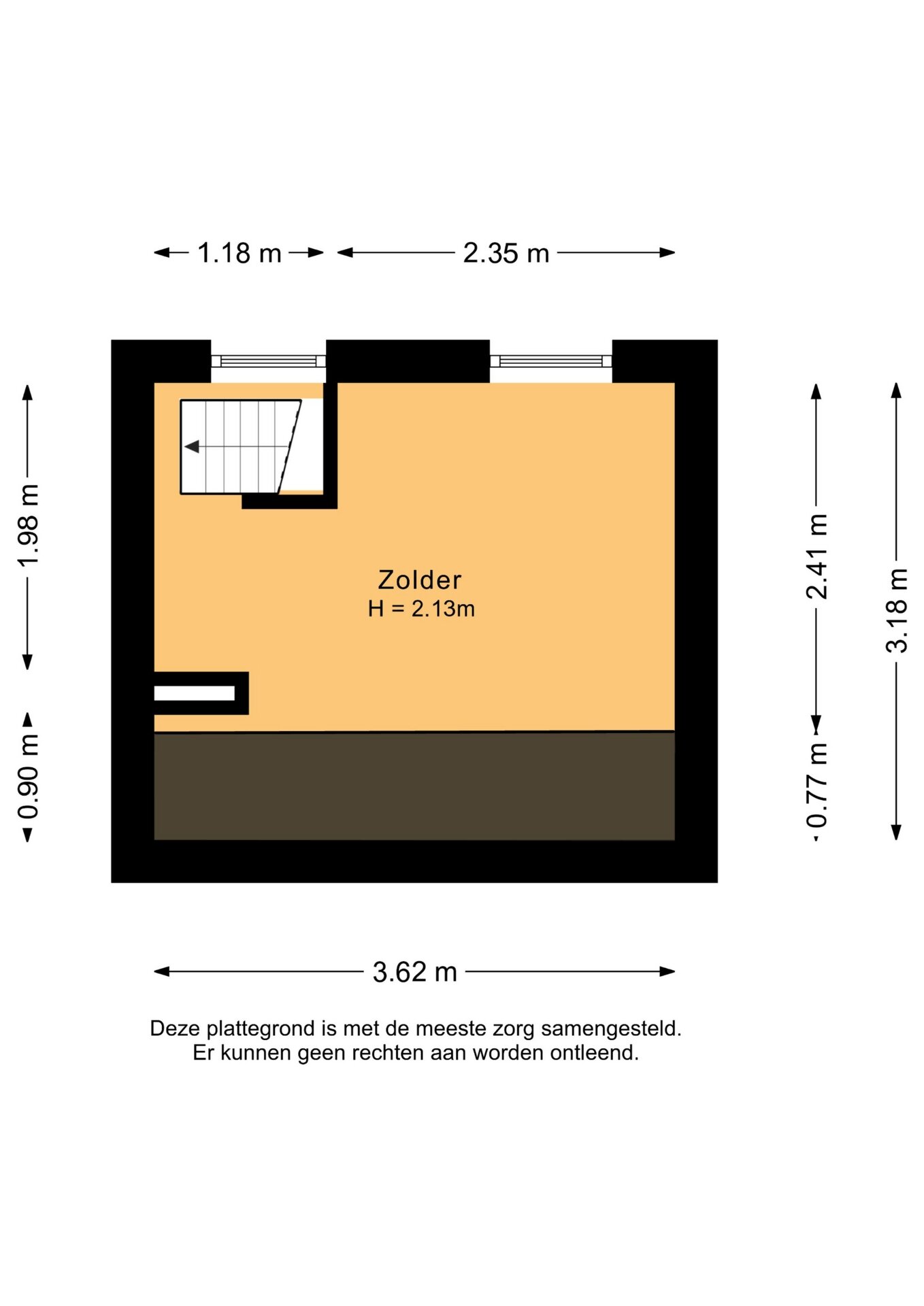 “Deze informatie is door ons met de nodige zorgvuldigheid samengesteld. Onzerzijds wordt echter geen enkele aansprakelijkheid aanvaard voor enige onvolledigheid, onjuistheid of anderszins, dan wel de gevolgen daarvan. Alle opgegeven maten en oppervlakten zijn indicatief.”
