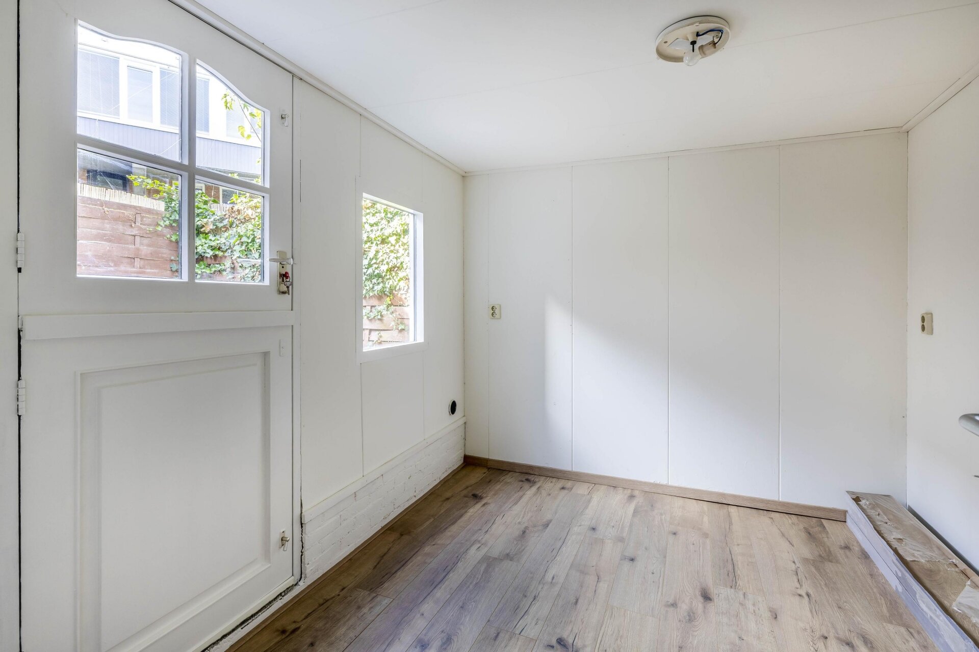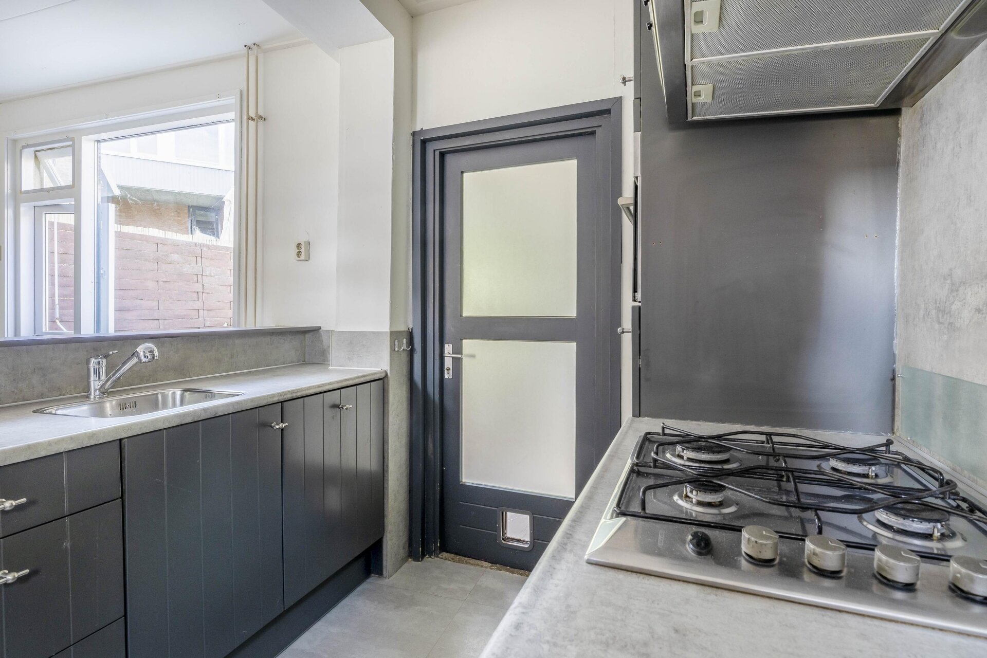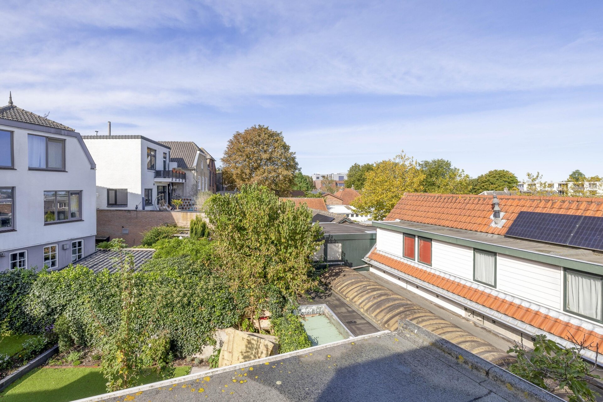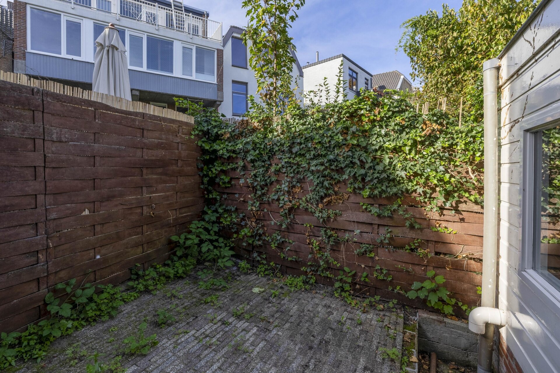 De buitenruimte is compact, maar praktisch. Een gezellig plaatsje op het westen waar je in de middag/avondzon een zitje kunt creëren – precies genoeg om toch even buiten te ontspannen.
