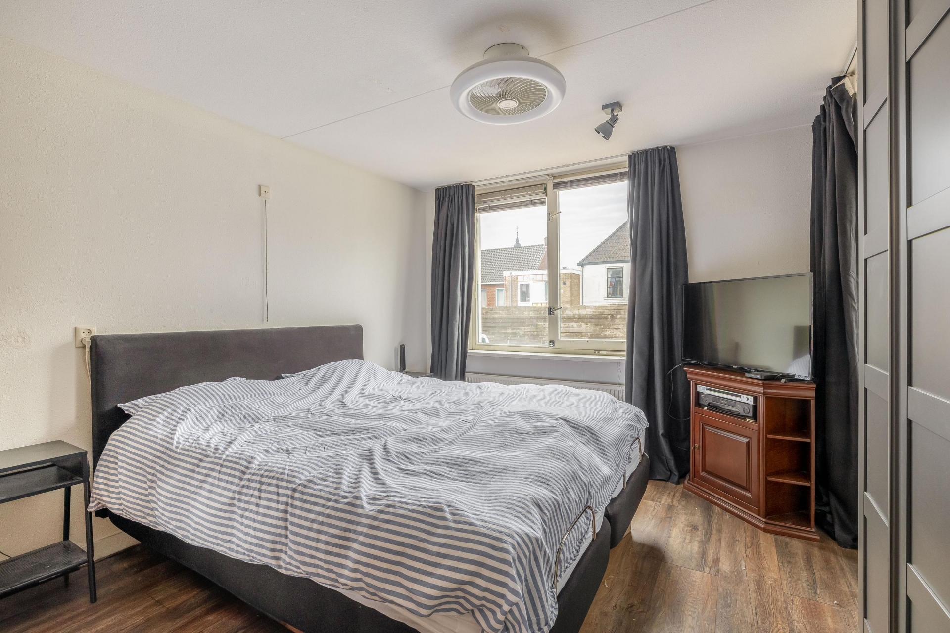 De slaapkamer is ruim opgezet en ligt aan de rustige zijde van het complex. Dankzij de afmetingen is er voldoende plek voor een groot bed, een royale kast en eventueel een extra zitje of werkplek.
