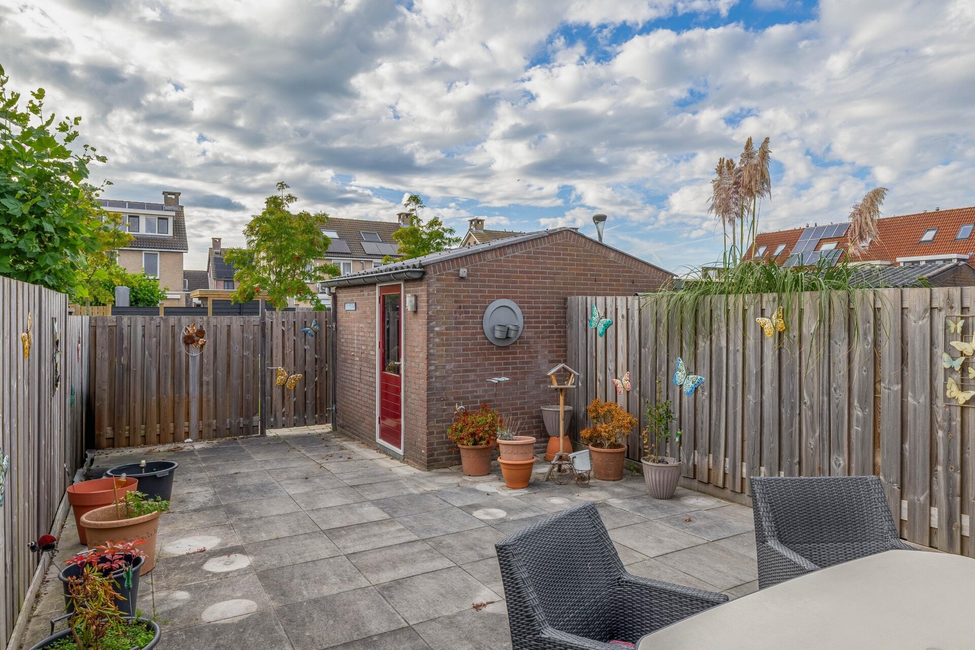 Een groot pluspunt van dit huis is de zonnige achtertuin. Dankzij de westelijke ligging geniet je hier volop van de middag- en avondzon. De tuin is onderhoudsvrij aangelegd met bestrating. Achter in de tuin staat een stenen berging voor fietsen en tuingereedschap, en via de handige achterom ben je zo weer op straatniveau. De tuin biedt voldoende ruimte voor een loungeset, een trampoline of een kleine moestuin – net wat bij jouw wensen past.