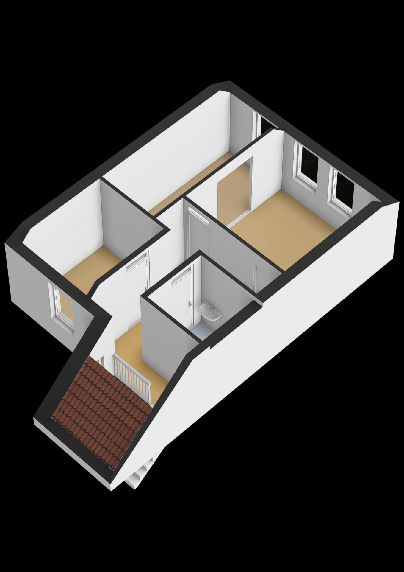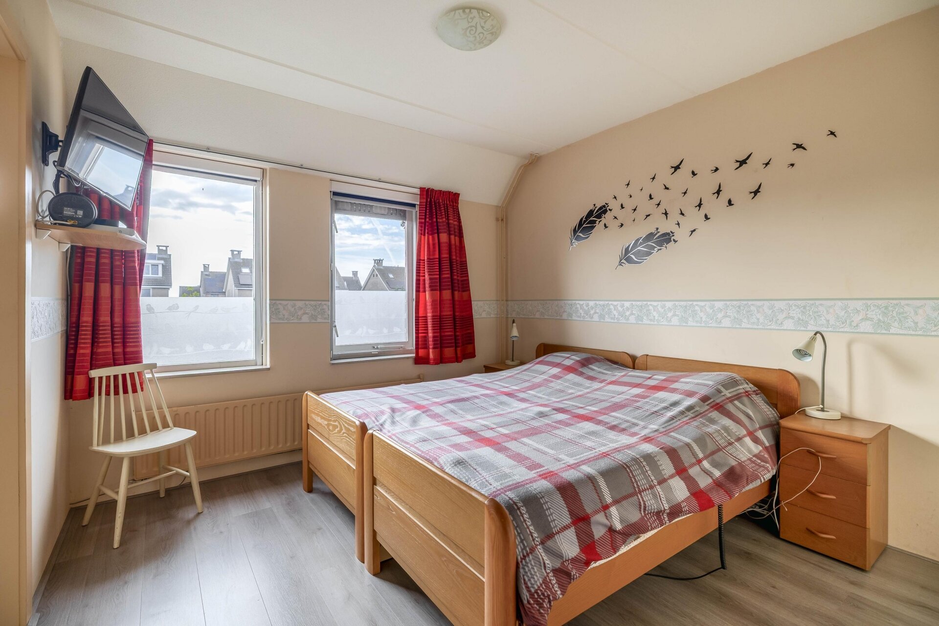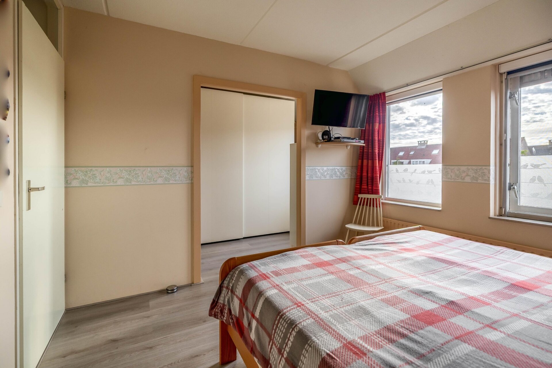Op de eerste verdieping vind je twee slaapkamers en de badkamer. De grootste slaapkamer ligt aan de achterzijde, is voorzien van royale inloopkast (voorheen slaapkamer) en kijkt uit over de diepe tuin. De tweede kamer, aan de voorzijde is ideaal als kinder- of werkkamer. De badkamer is functioneel ingericht met een douche, wastafel en toilet. De tweede verdieping biedt nog een derde slaapkamer met dakraam en bergruimte achter de knieschotten.