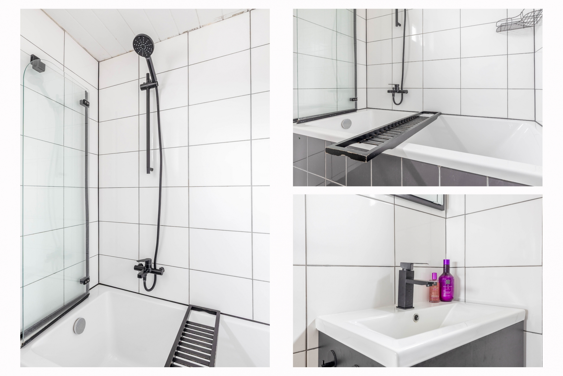 De badkamer ligt centraal op de verdieping en is voorzien van een douche en wastafel. De indeling is praktisch en alles wat je nodig hebt is aanwezig.