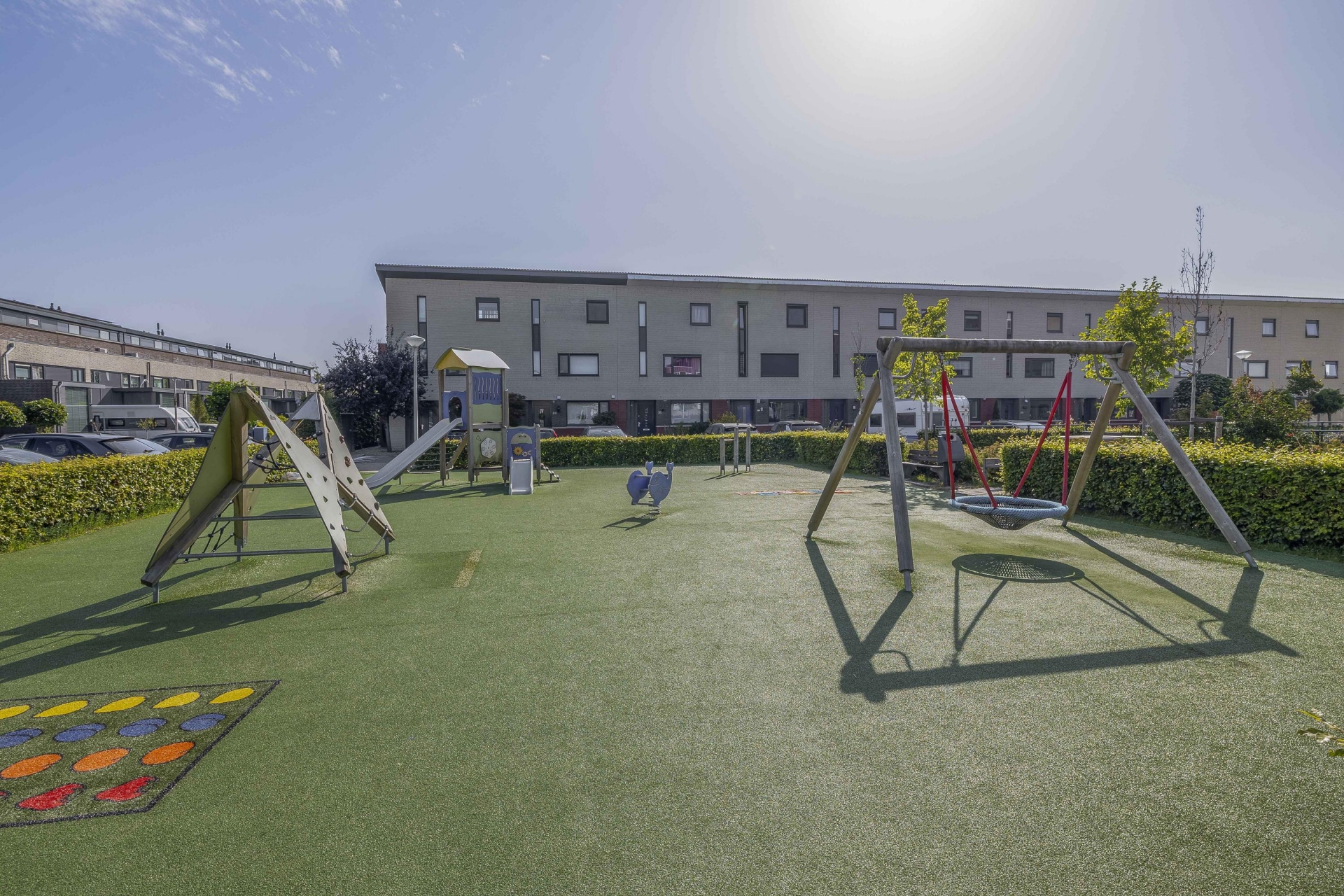 De woning ligt in een rustige en kindvriendelijke wijk, zonder directe overburen aan de voor- en achterzijde. Tegenover de woning zijn extra parkeerplaatsen beschikbaar en schuin tegenover ligt een groen plein met speeltuin. Voor gezinnen is de locatie ideaal: een schoolgebouw met drie verschillende onderwijsstromingen ligt op loopafstand.