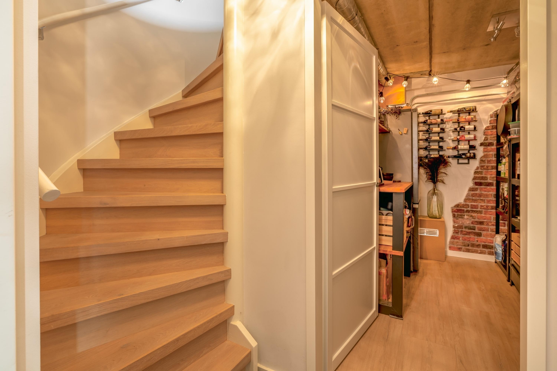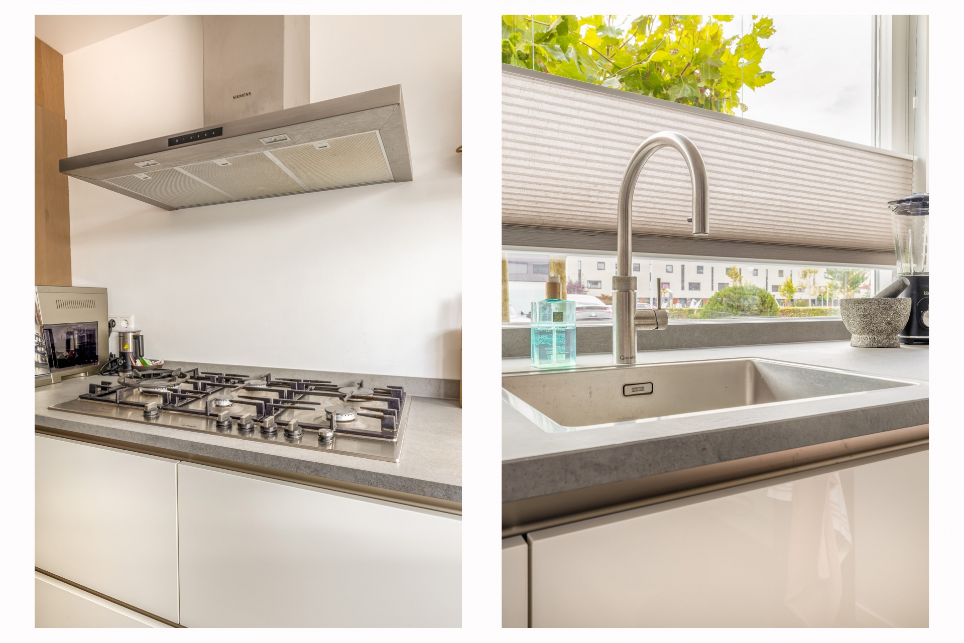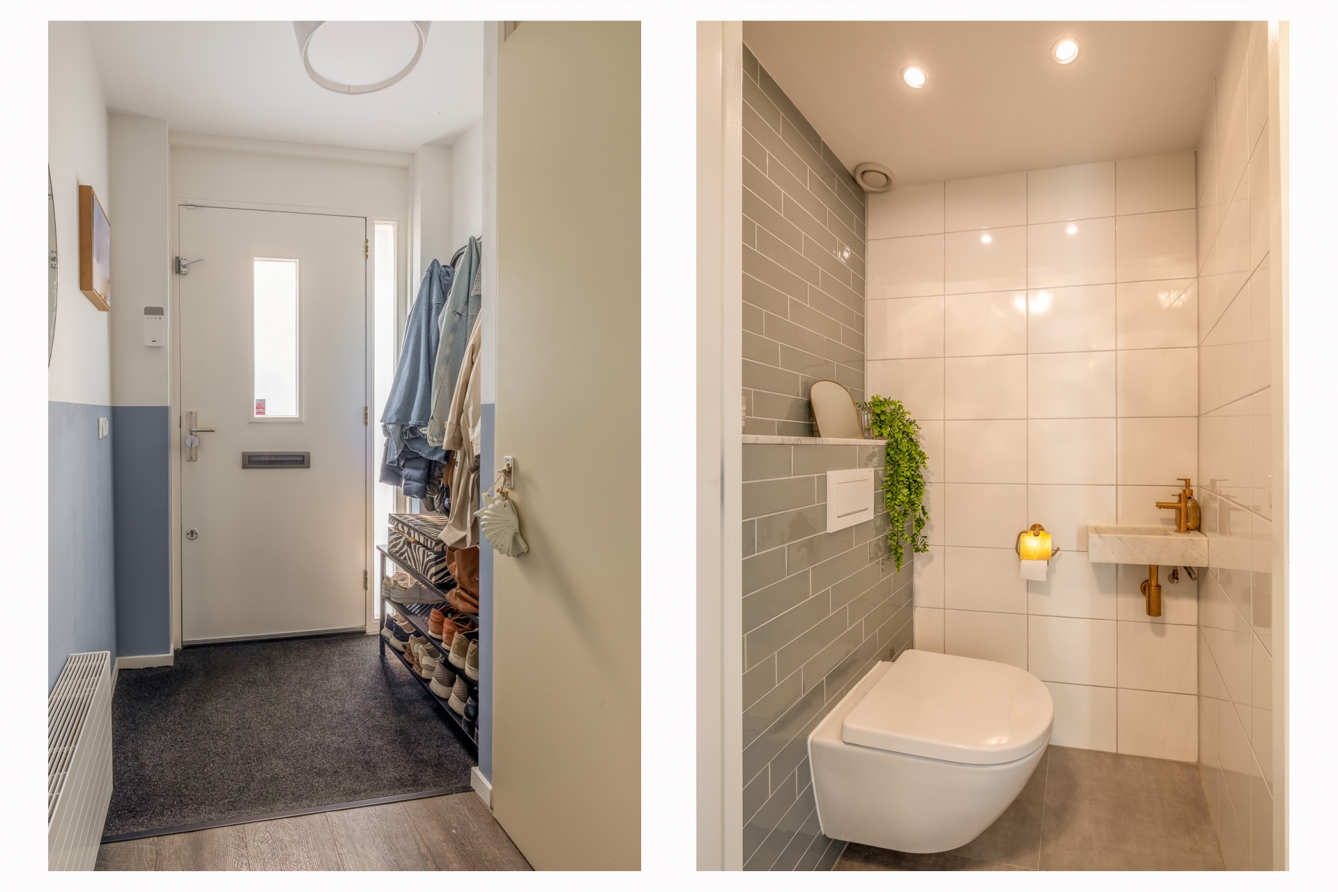 De keuken aan de voorzijde (2019) is een echte eyecatcher en van alle gemakken voorzien: hoogwaardige inbouwapparatuur, een Quooker en veel kastruimte. De hal geeft toegang tot de vernieuwde toiletruimte (2020) en de trap naar de eerste verdieping. Aansluitend vind je de praktische bijkeuken (2024) die ideaal is voor extra bergruimte, vanuit hier heb je direct toegang tot de berging die ook vanuit buiten te bereiken is.