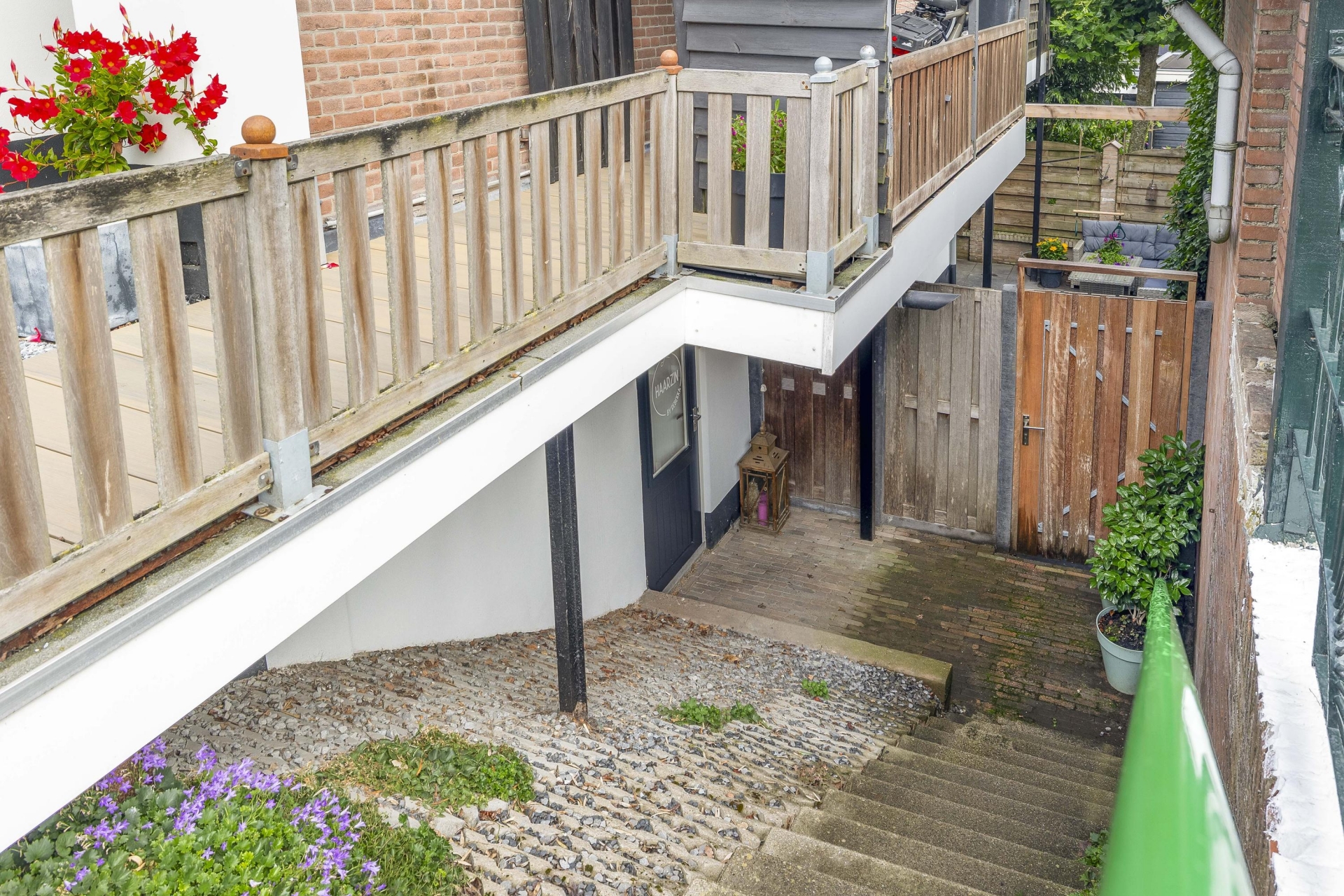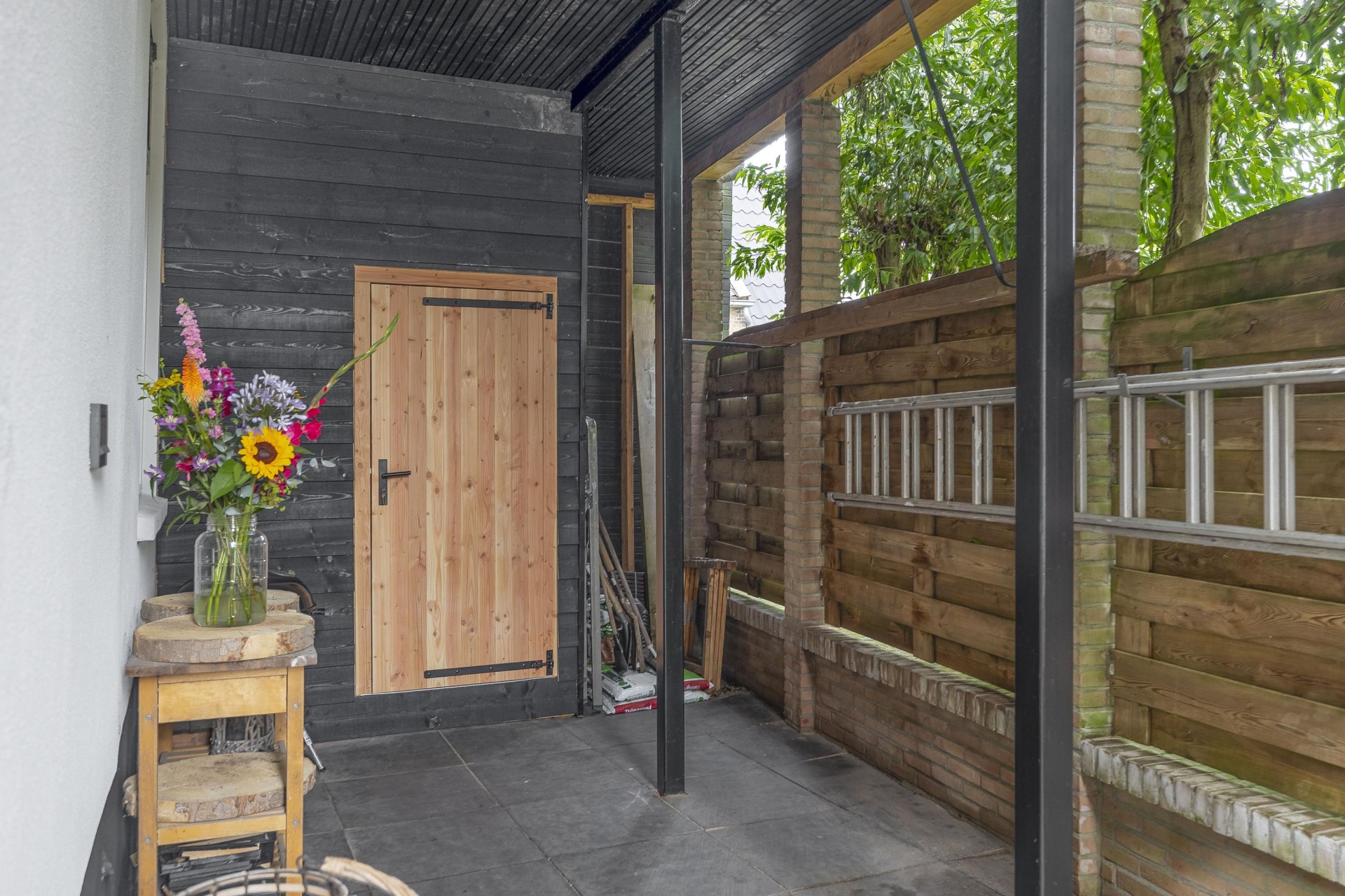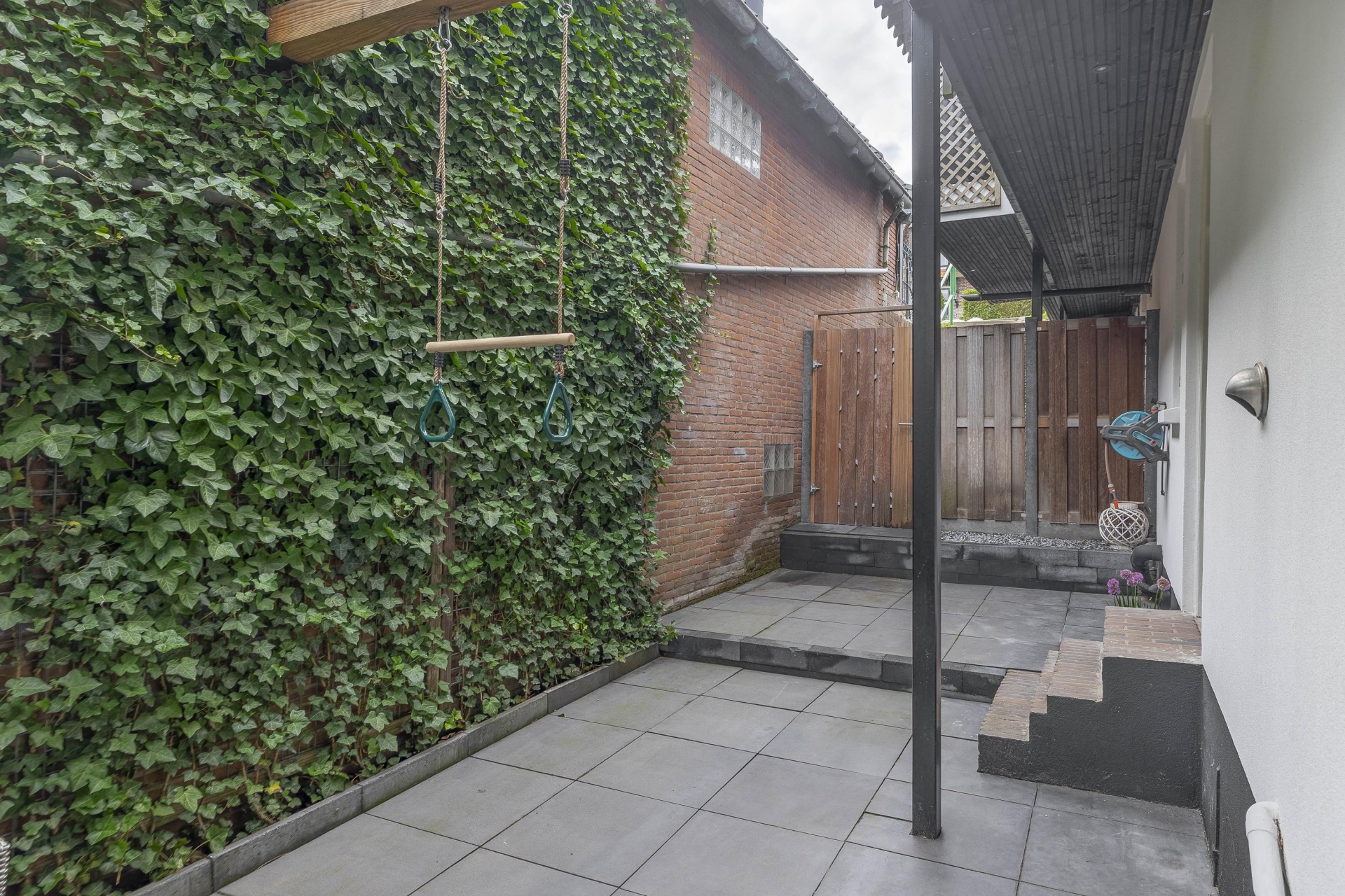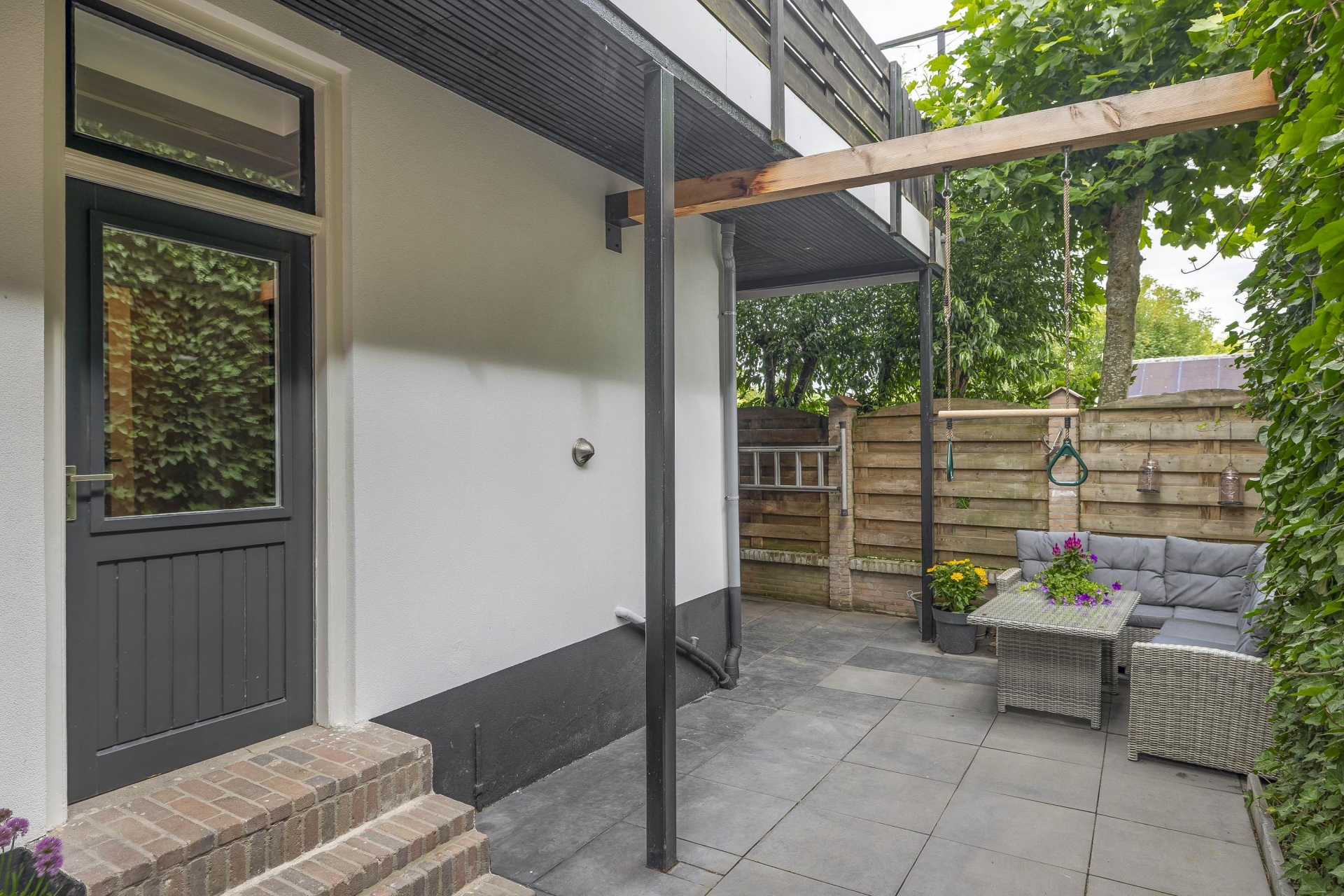 De tuin is onderhoudsvriendelijk aangelegd en biedt genoeg ruimte voor een eettafel of loungebank.