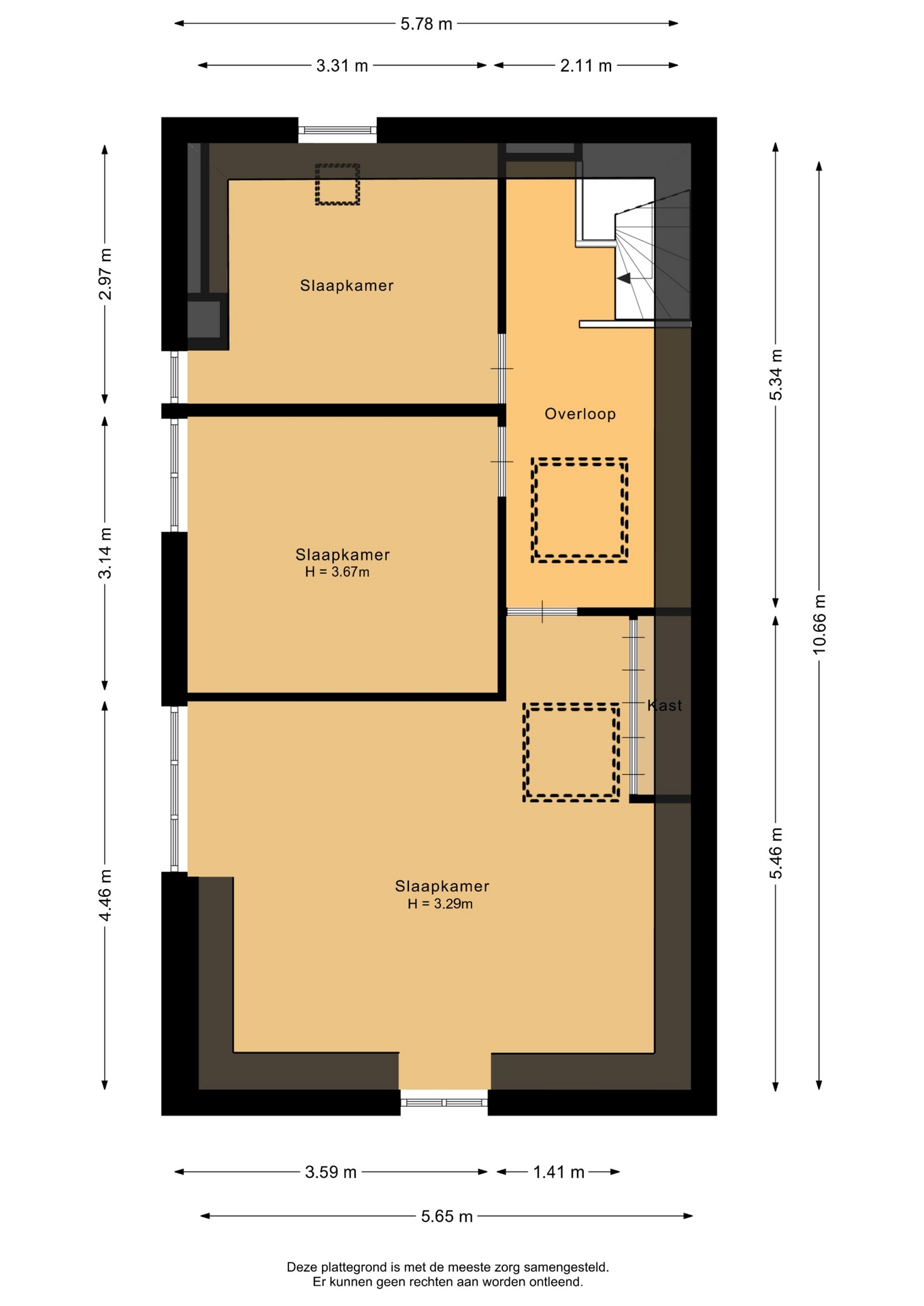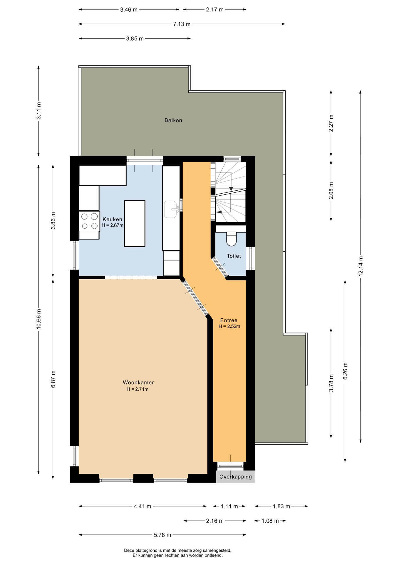 “Deze informatie is door ons met de nodige zorgvuldigheid samengesteld. Onzerzijds wordt echter geen enkele aansprakelijkheid aanvaard voor enige onvolledigheid, onjuistheid of anderszins, dan wel de gevolgen daarvan. Alle opgegeven maten en oppervlakten zijn indicatief.”