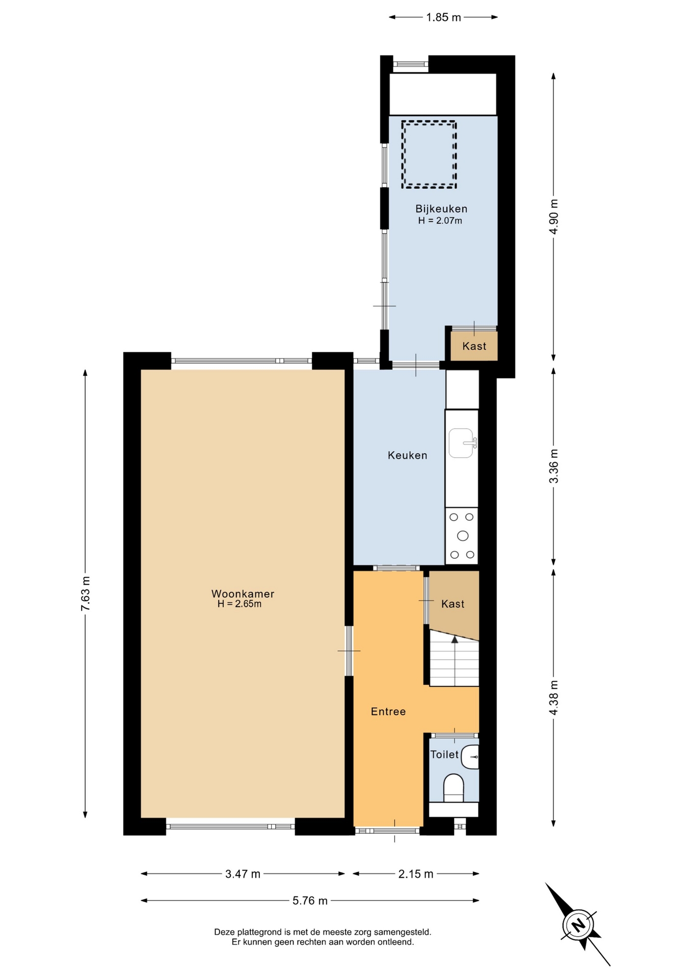 “Deze informatie is door ons met de nodige zorgvuldigheid samengesteld. Onzerzijds wordt echter geen enkele aansprakelijkheid aanvaard voor enige onvolledigheid, onjuistheid of anderszins, dan wel de gevolgen daarvan. Alle opgegeven maten en oppervlakten zijn indicatief.”