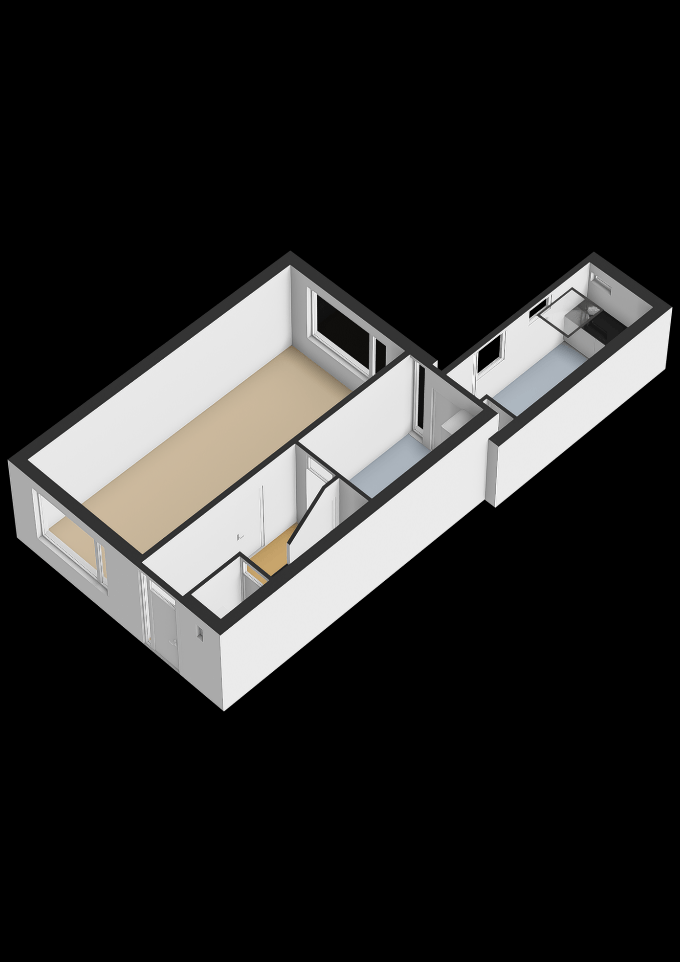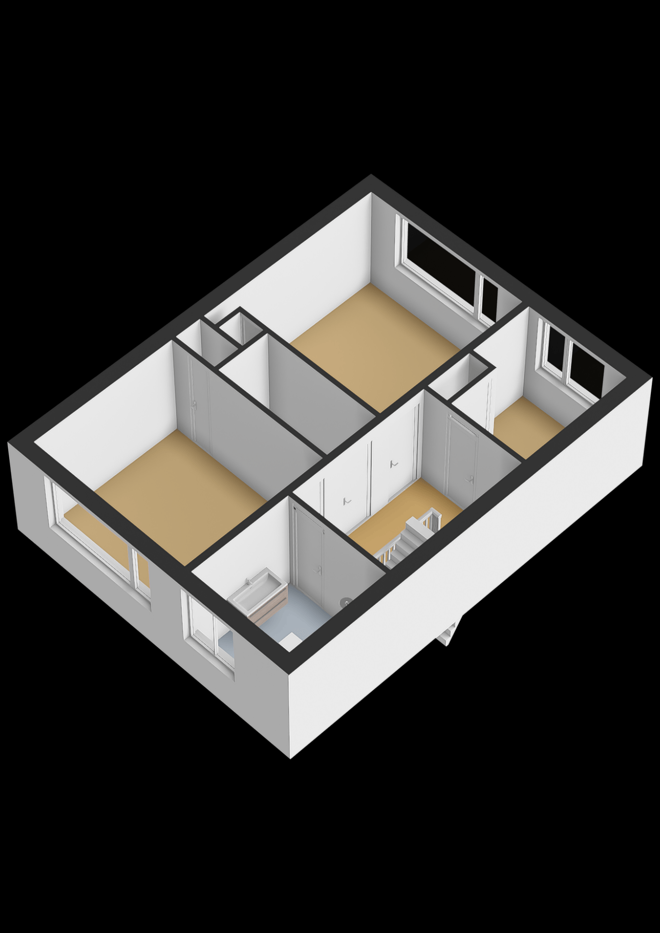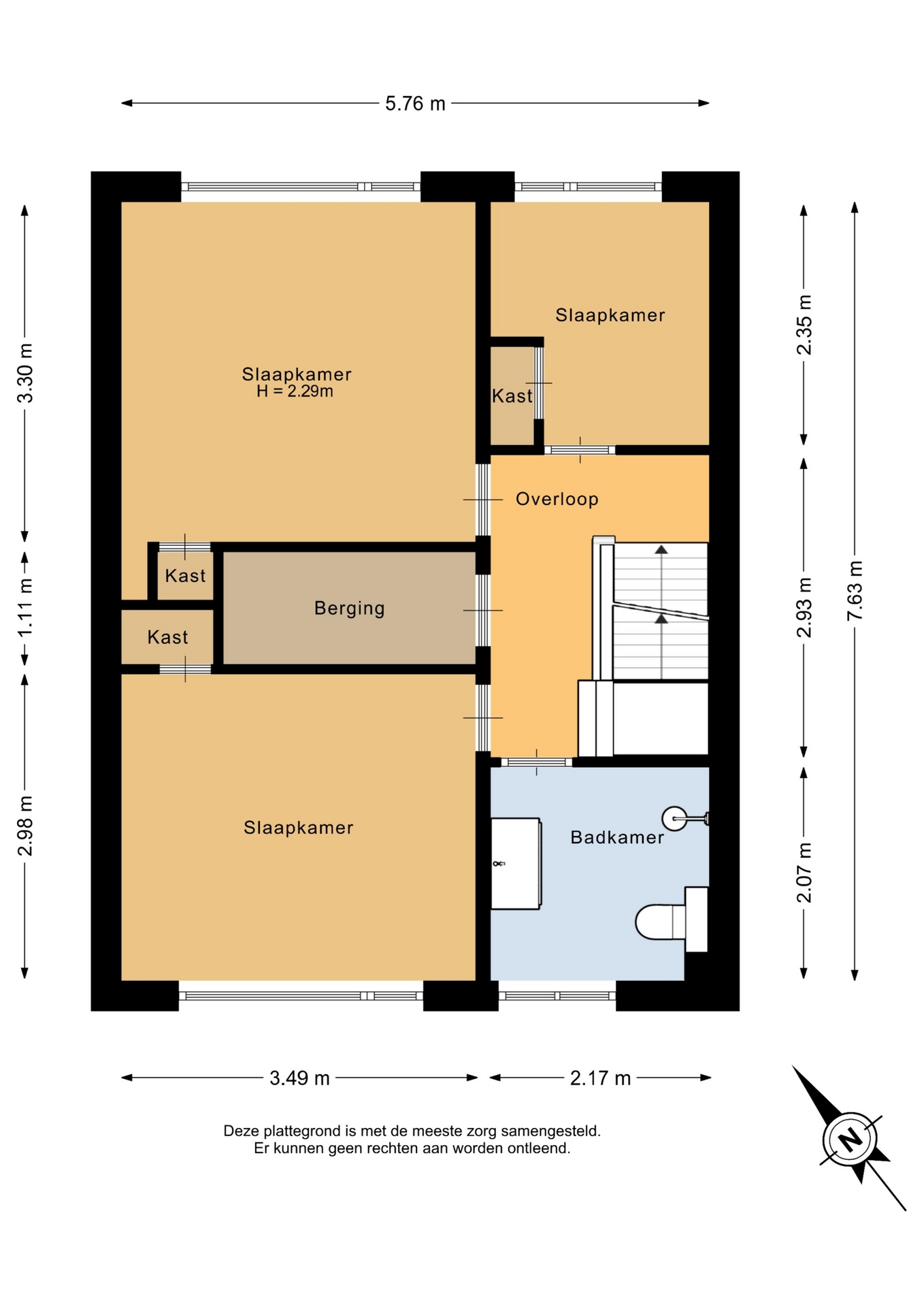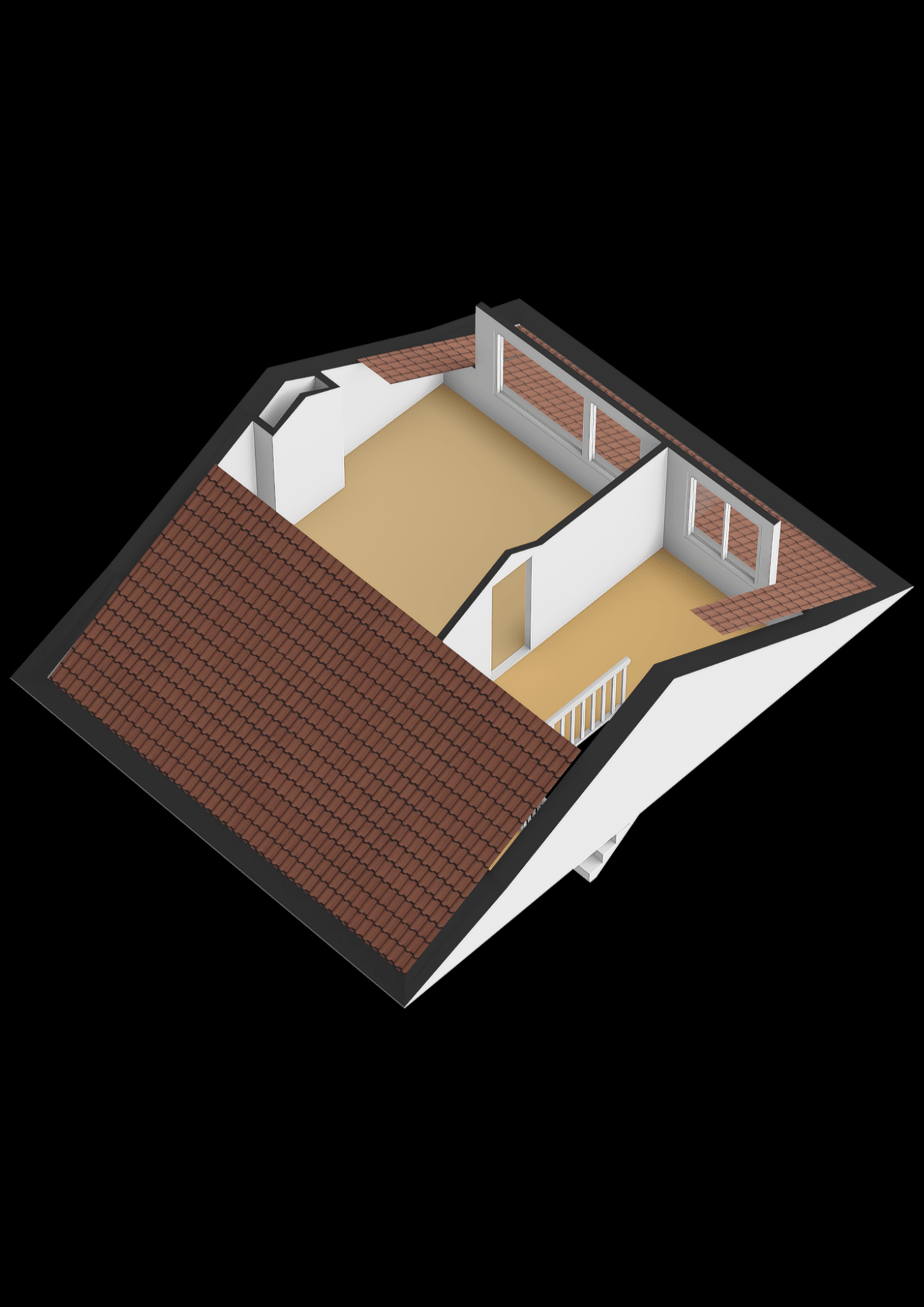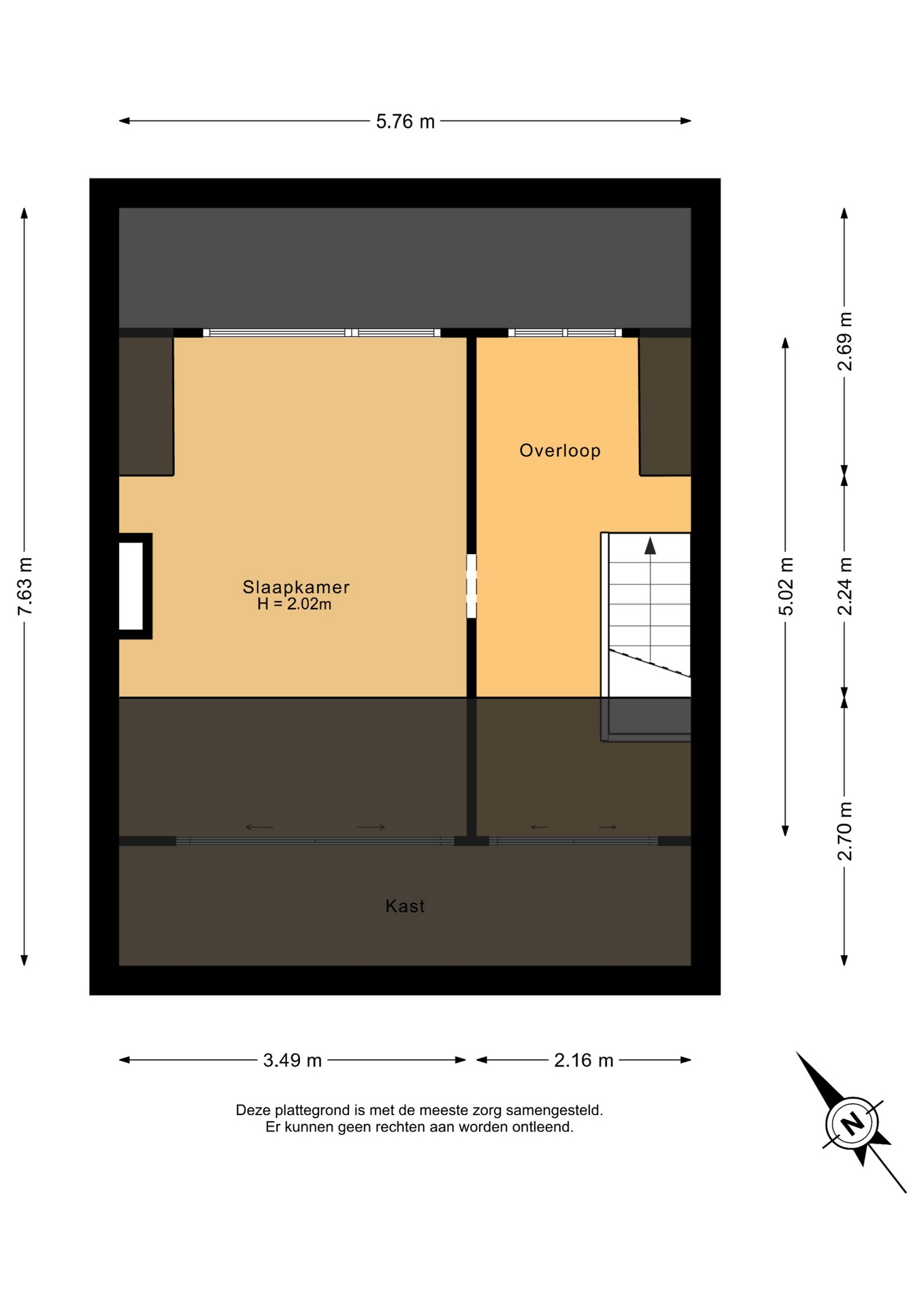 - De hoogte van de tweede verdieping is ca. 2 meter in de nok. Omdat deze ruimte van ca. 19m2 uitermate geschikt is als woonruimte is het opgenomen in het genoemde woonoppervlak, ondanks dat het niet volledig voldoet aan de kenmerken van woonruimte volgens de meetinstructie;