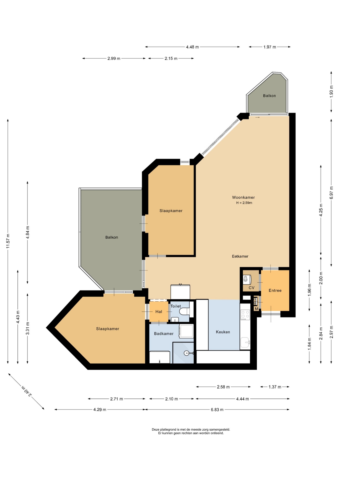 “Deze informatie is door ons met de nodige zorgvuldigheid samengesteld. Onzerzijds wordt echter geen enkele aansprakelijkheid aanvaard voor enige onvolledigheid, onjuistheid of anderszins, dan wel de gevolgen daarvan. Alle opgegeven maten en oppervlakten zijn indicatief.”