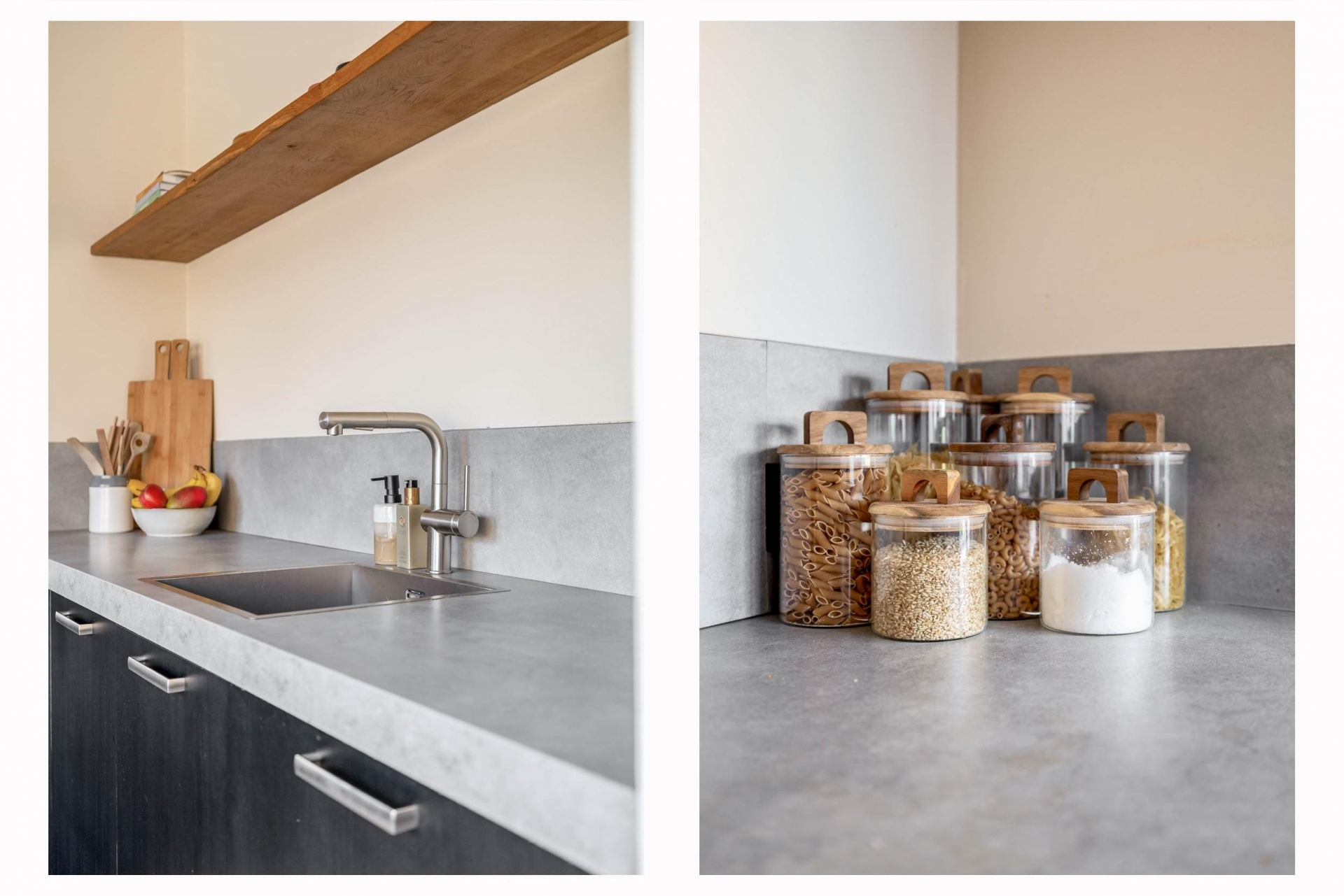 De keuken is in 2020 geplaatst en uitgevoerd in een moderne, tijdloze stijl. De opstelling biedt veel werkruimte en is uitgerust met diverse inbouwapparatuur, waaronder een inductiekookplaat, combi-oven, vaatwasser en een koelkast met vriesvak. Dankzij de open verbinding met de woonkamer blijft het een fijne plek waar koken en samenzijn samenkomen.