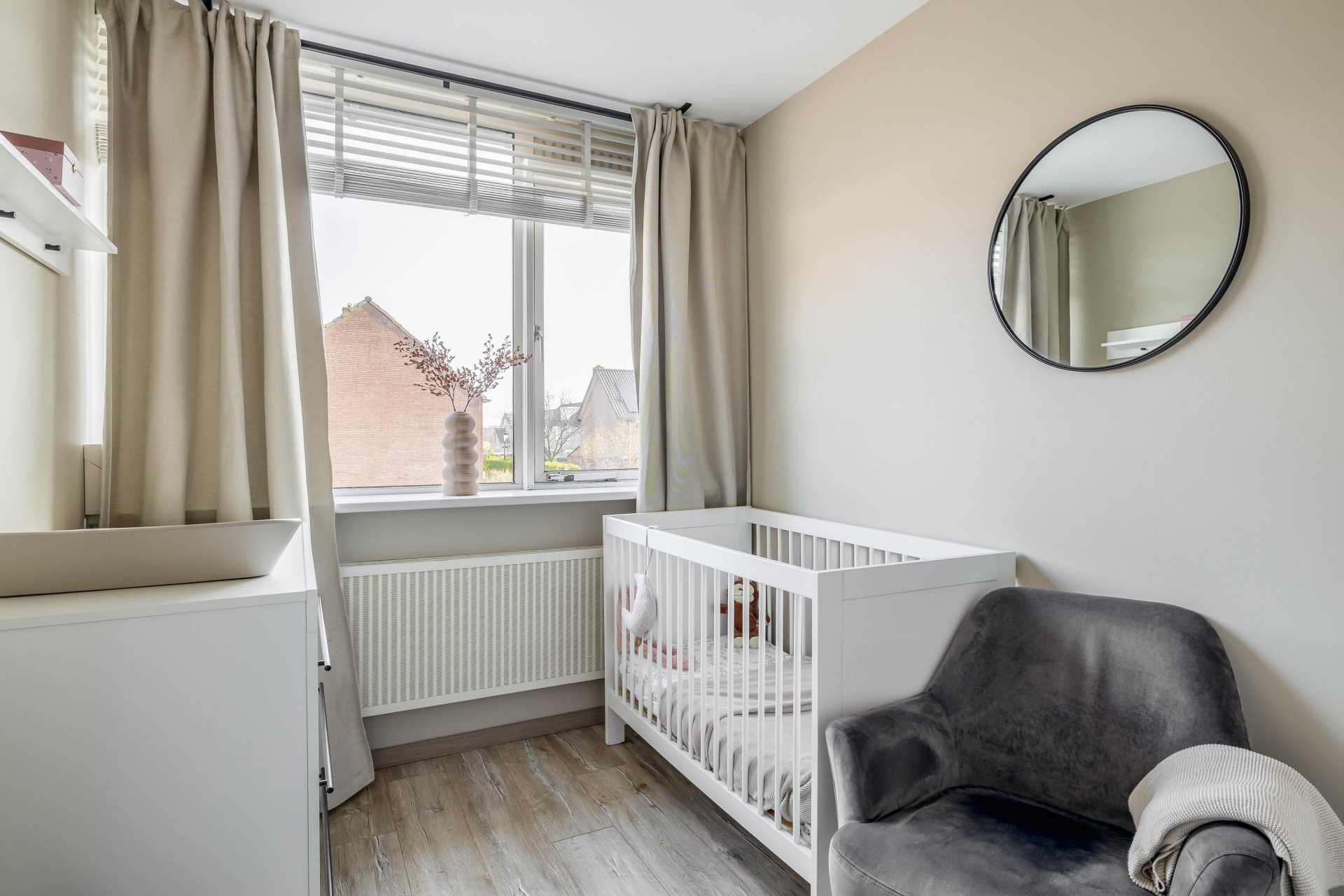 Op de eerste verdieping bevinden zich drie slaapkamers en de badkamer. De grootste slaapkamer ligt aan de achterzijde en biedt voldoende ruimte voor een tweepersoonsbed en een kastenwand. Aan de voorzijde liggen nog twee slaapkamers die ideaal zijn als kinderkamer, werkkamer of logeerkamer. De badkamer is praktisch ingericht en beschikt over een douche, wastafel en een elektrische vloerverwarming.