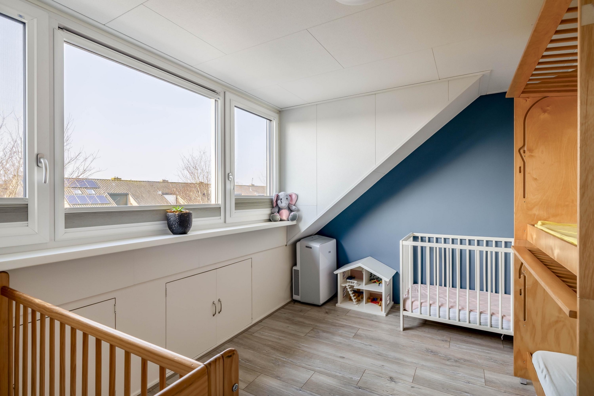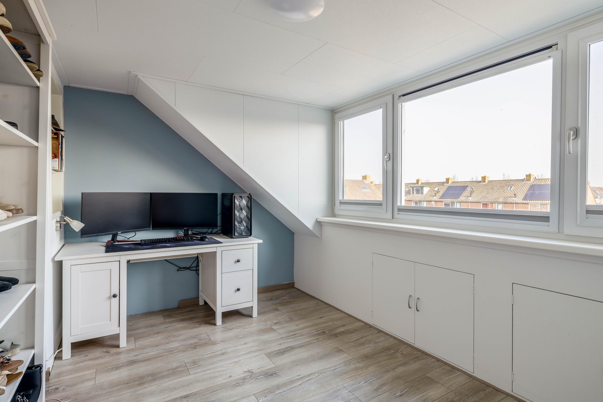 De tweede verdieping biedt nog eens twee slaapkamers dankzij de aanwezige dakkapellen. Deze zijn uitgevoerd met kunststof kozijnen, wat zorgt voor weinig onderhoud en een nette afwerking. Hierdoor is ook deze verdieping goed bruikbaar als volwaardige woonruimte. Denk aan extra slaapkamers, een hobbyruimte of een werkplek voor thuiswerken.