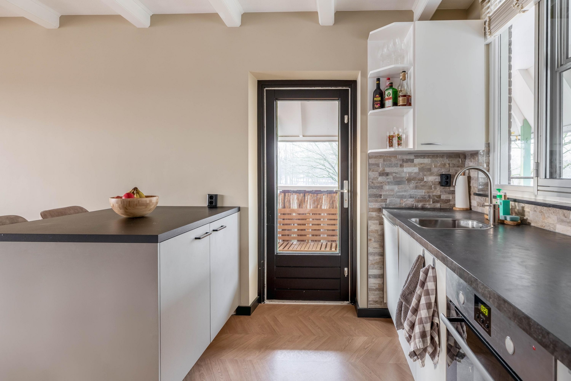 De keuken biedt toegang tot het eerste balkon van de woning op het zuid/westen.