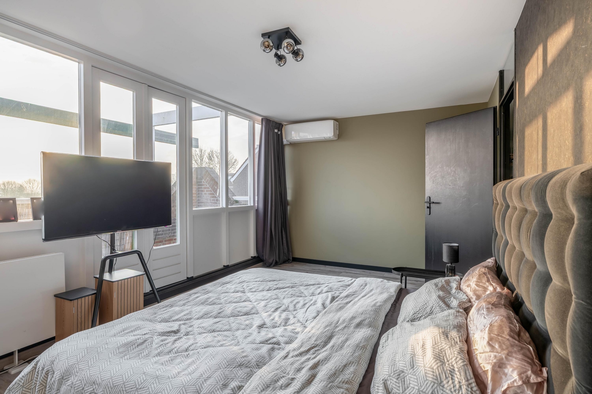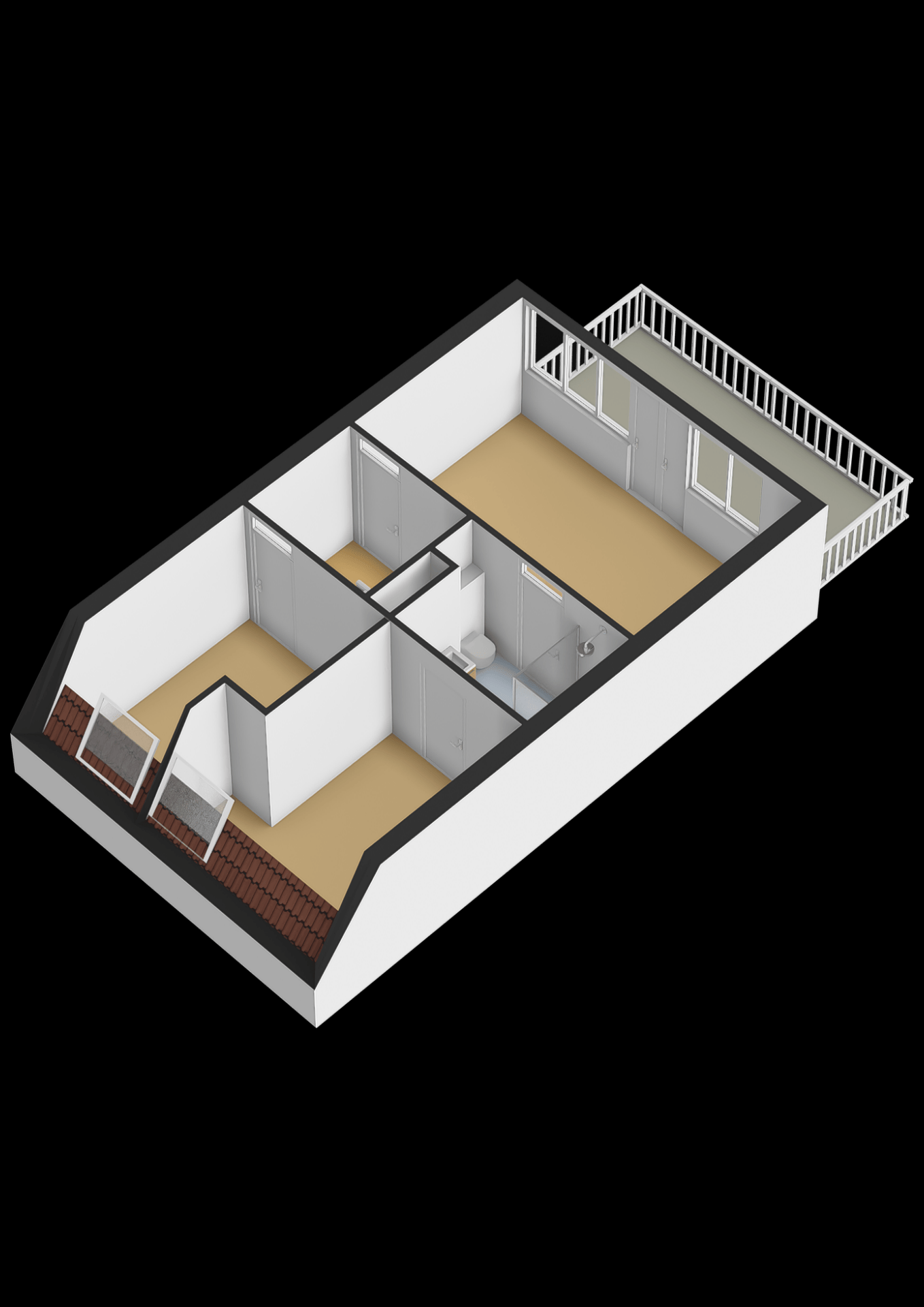 De grote slaapkamer geeft toegang middels openslaande deuren tot het dakterras op het oosten en de badkamer voorzien van douche, wastafel en toilet. Tevens is de badkamer bereikbaar vanuit een van de kleinere slaapkamers.
