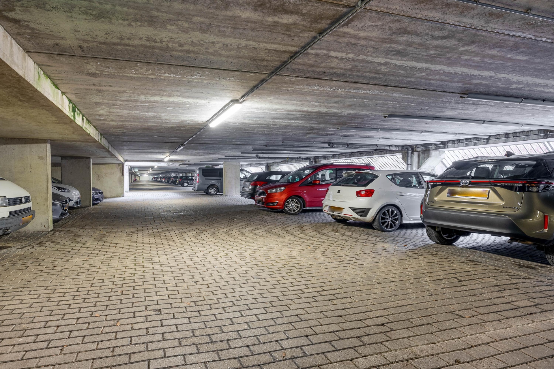 Een fijne extra: bij het appartement hoort een eigen plek in de afgesloten parkeergarage. Nooit meer zoeken naar een plekje, én je auto staat droog. Daarnaast is er een privéberging op de begane grond – ideaal voor je fiets, gereedschap of koffers.