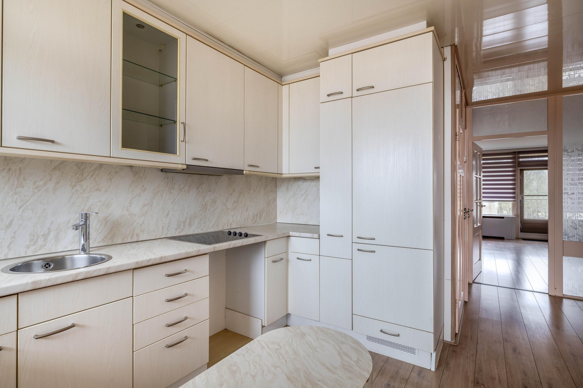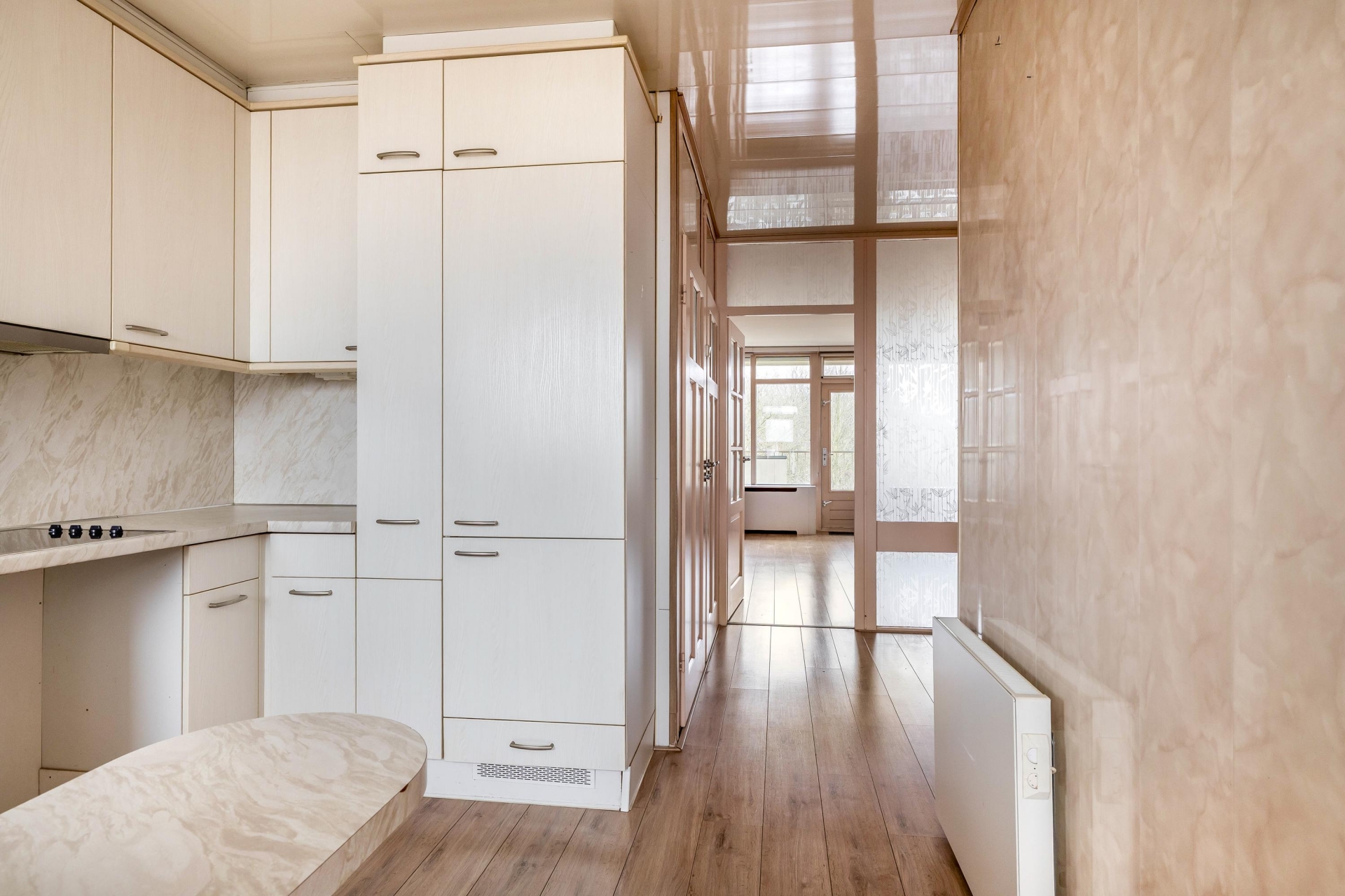 Bij het betreden van de woonkamer valt direct de ruimte en de prettige lichtinval op! Vanuit de woonkamer is er toegang tot het balkon, dat aan de achterzijde is gelegen. Het balkon ligt op het zuidwesten, waardoor je hier de hele middag en avond van de zon kunt genieten. Bovendien kijk je vanuit de woonkamer uit op het omliggende groen, wat zorgt voor een rustige en fijne woonbeleving.