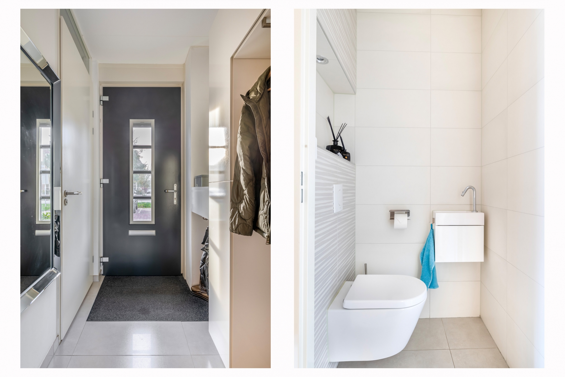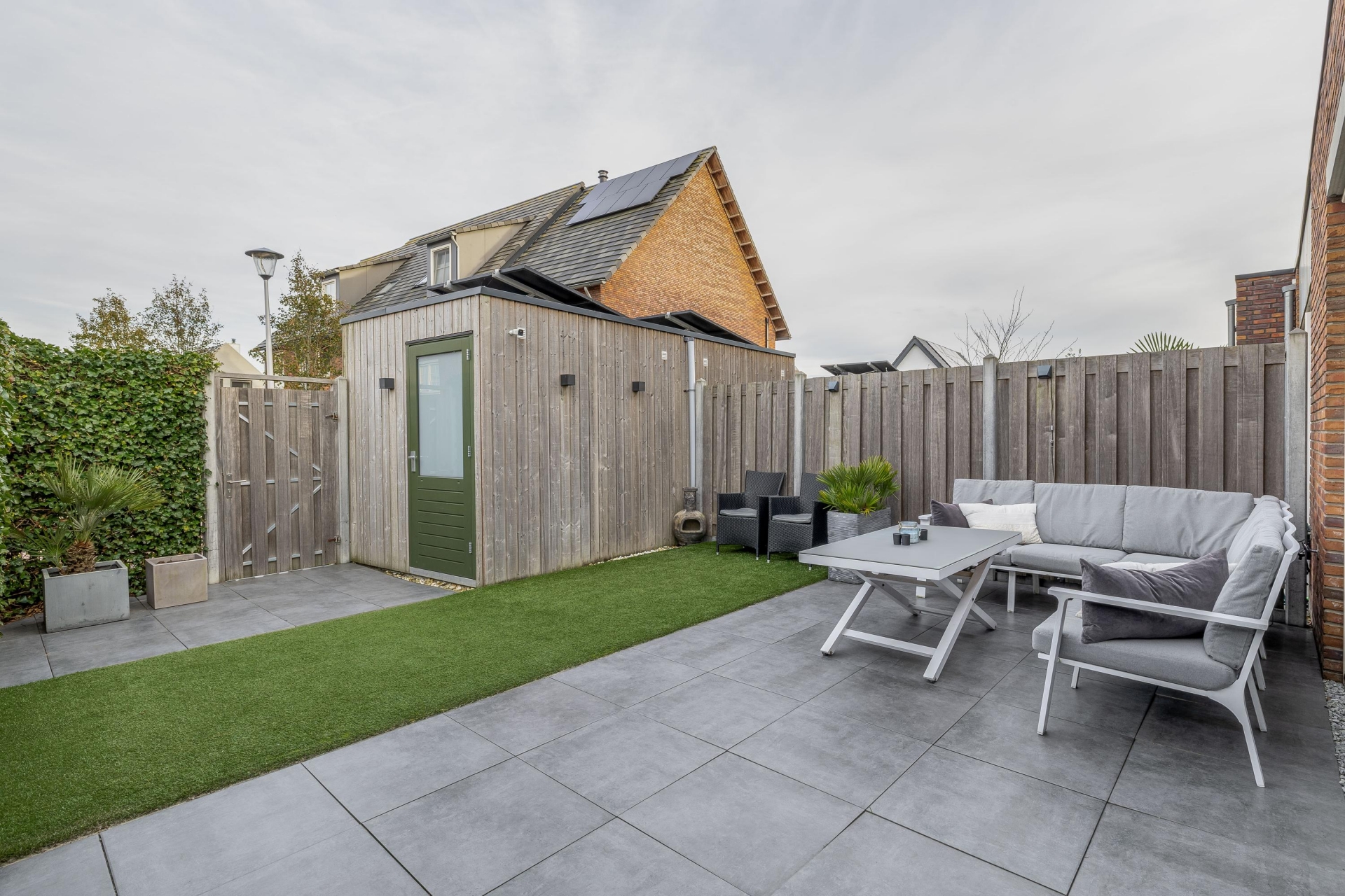 Buiten is het net zo verzorgd als binnen. De tuin ligt op het noordoosten en is volledig bestraat met moderne tegels en kunstgras, dus onderhoudsarm én strak. Door de hoekligging is de tuin extra breed en geniet je van veel privacy. Er is ruimte genoeg voor een grote loungehoek of eettafel, perfect voor zomerse avonden met familie of vrienden. De voorzijde van het huis is eveneens fraai aangelegd en grenst aan een rustige straat met voldoende parkeergelegenheid.