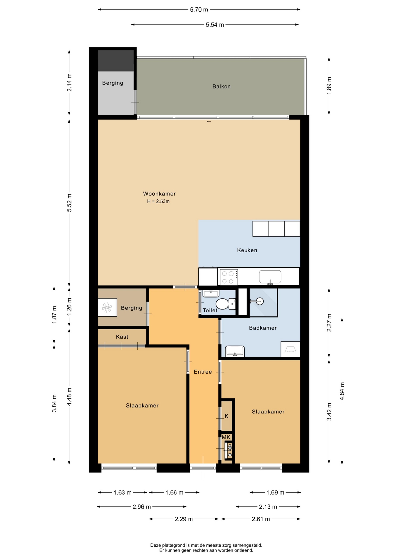 “Deze informatie is door ons met de nodige zorgvuldigheid samengesteld. Onzerzijds wordt echter geen enkele aansprakelijkheid aanvaard voor enige onvolledigheid, onjuistheid of anderszins, dan wel de gevolgen daarvan. Alle opgegeven maten en oppervlakten zijn indicatief.”