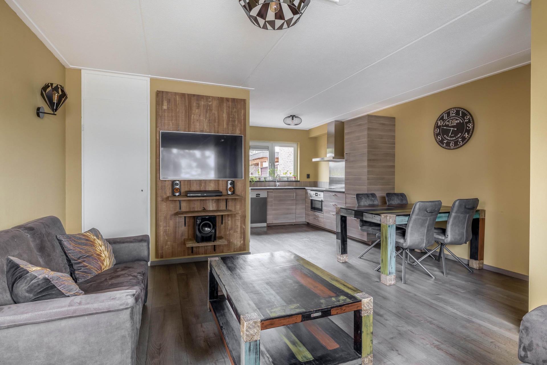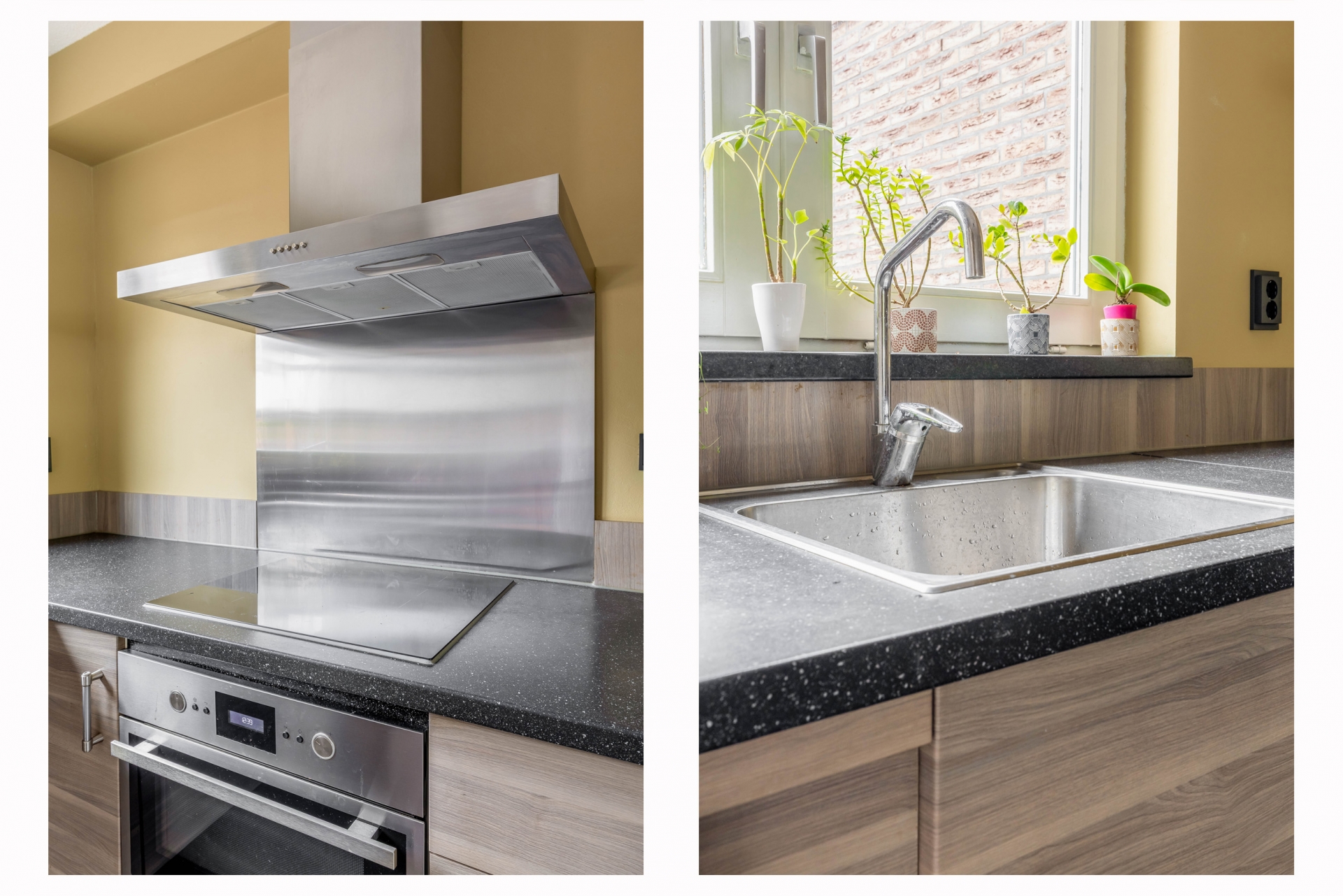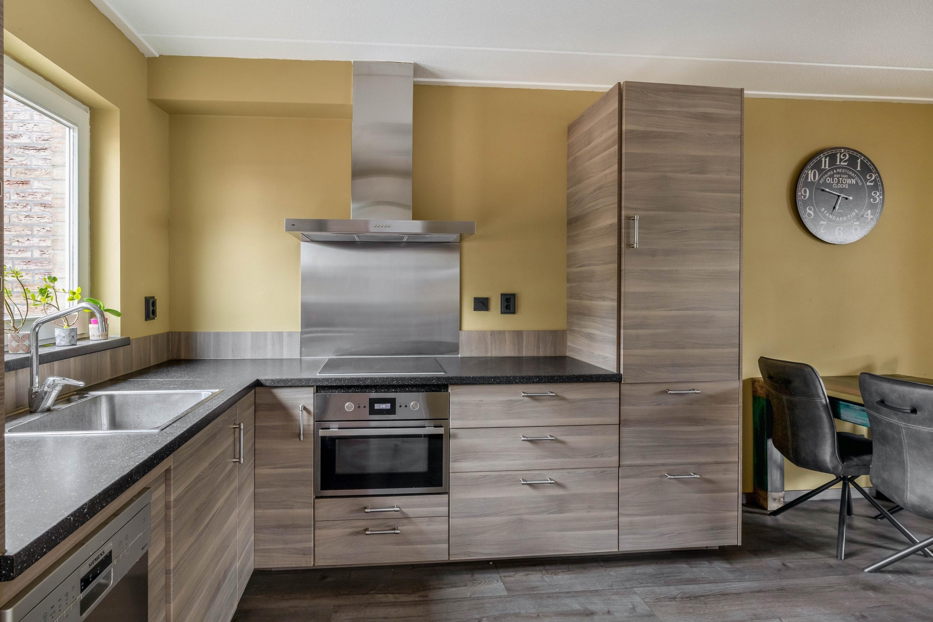 De woonkamer is licht en praktisch ingericht, met een open verbinding naar de keuken en eethoek. Dankzij de hoekligging profiteer je van extra lichtinval, wat de ruimte nog ruimer doet aanvoelen. De keuken is strak en modern uitgevoerd, voorzien van inbouwapparatuur en voldoende werk- en kastruimte.