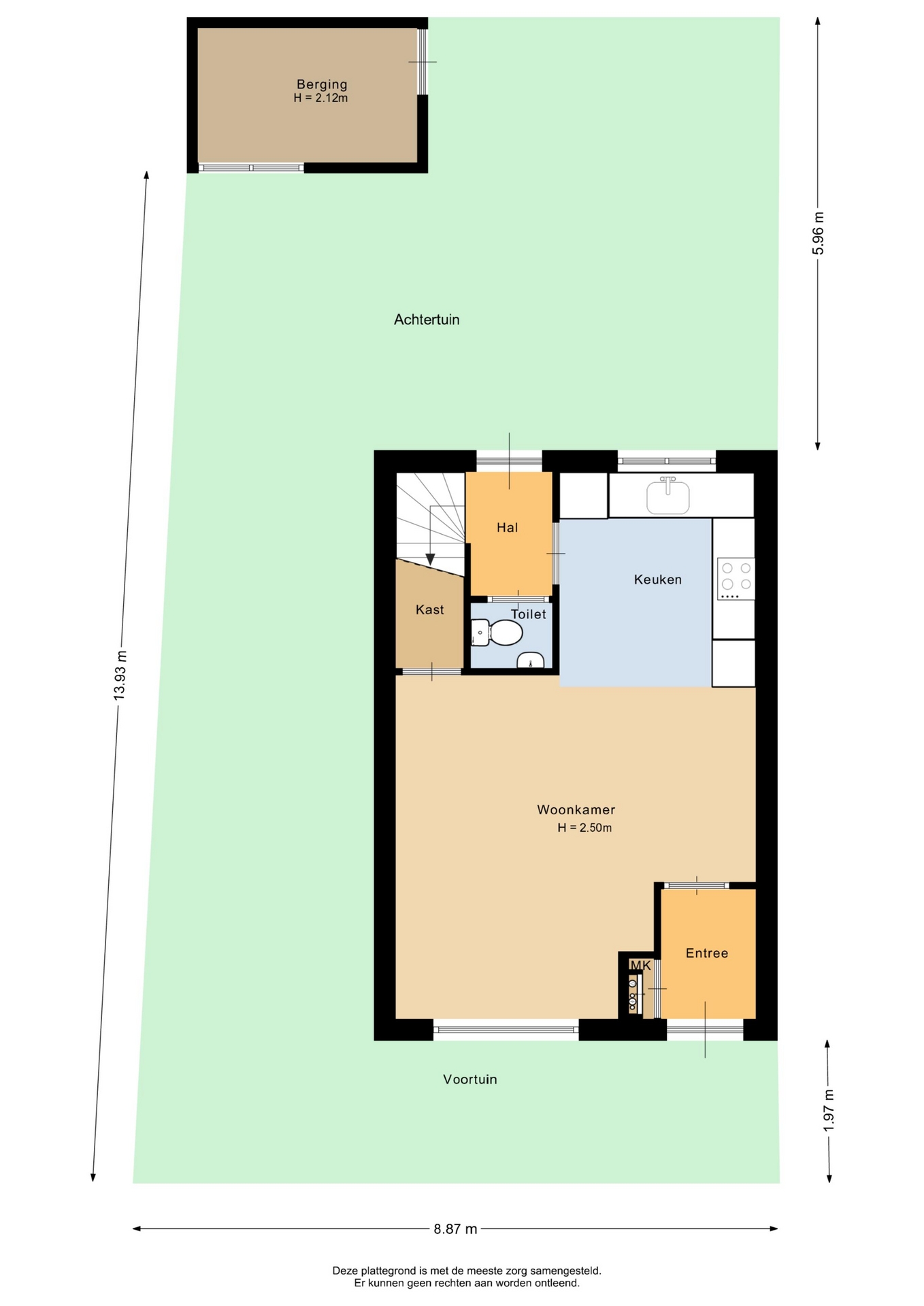 “Deze informatie is door ons met de nodige zorgvuldigheid samengesteld. Onzerzijds wordt echter geen enkele aansprakelijkheid aanvaard voor enige onvolledigheid, onjuistheid of anderszins, dan wel de gevolgen daarvan. Alle opgegeven maten en oppervlakten zijn indicatief.”